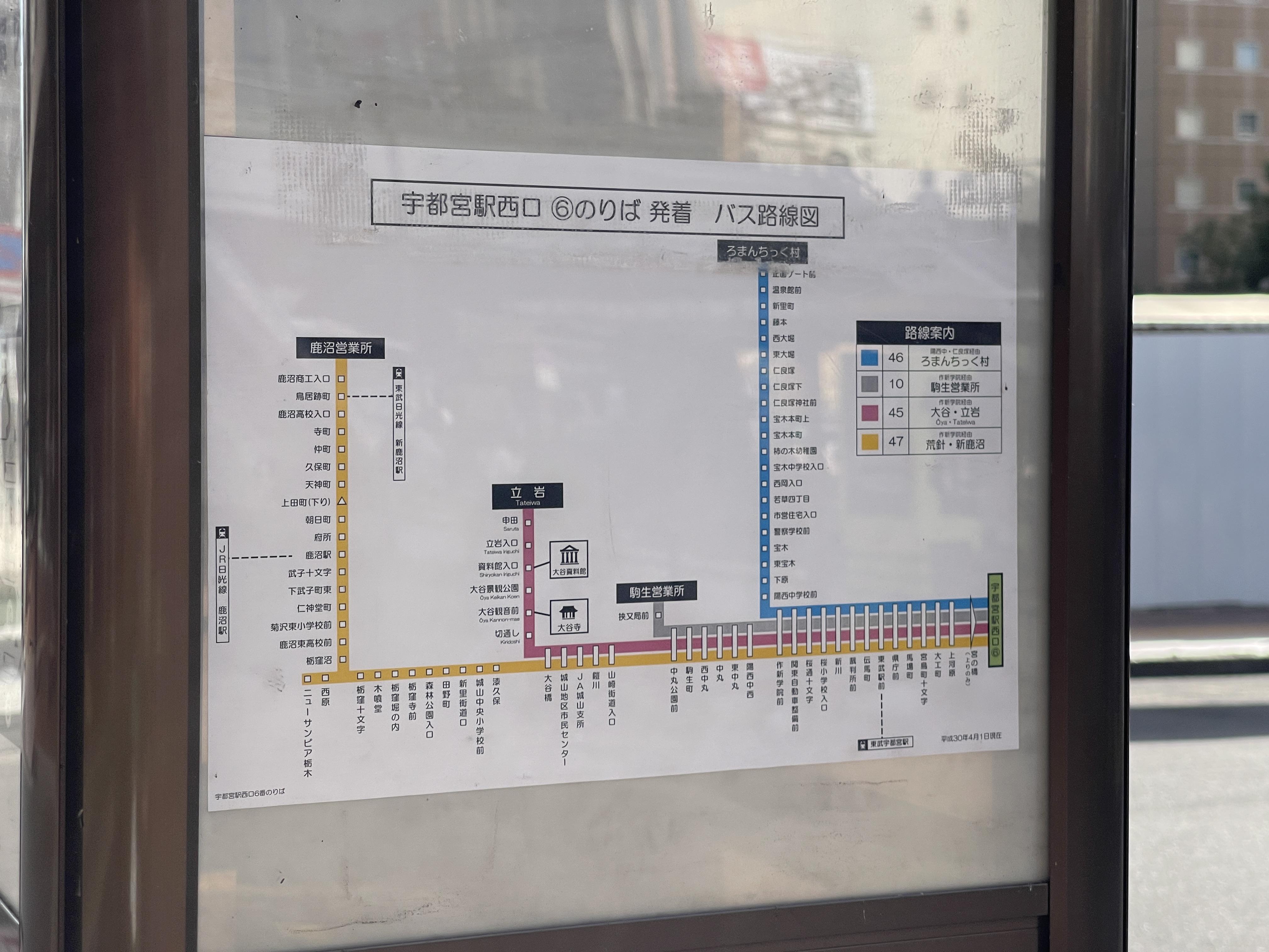 우츠노미야역 서쪽 출구에 있는 6번 버스 정류장으로 이동해