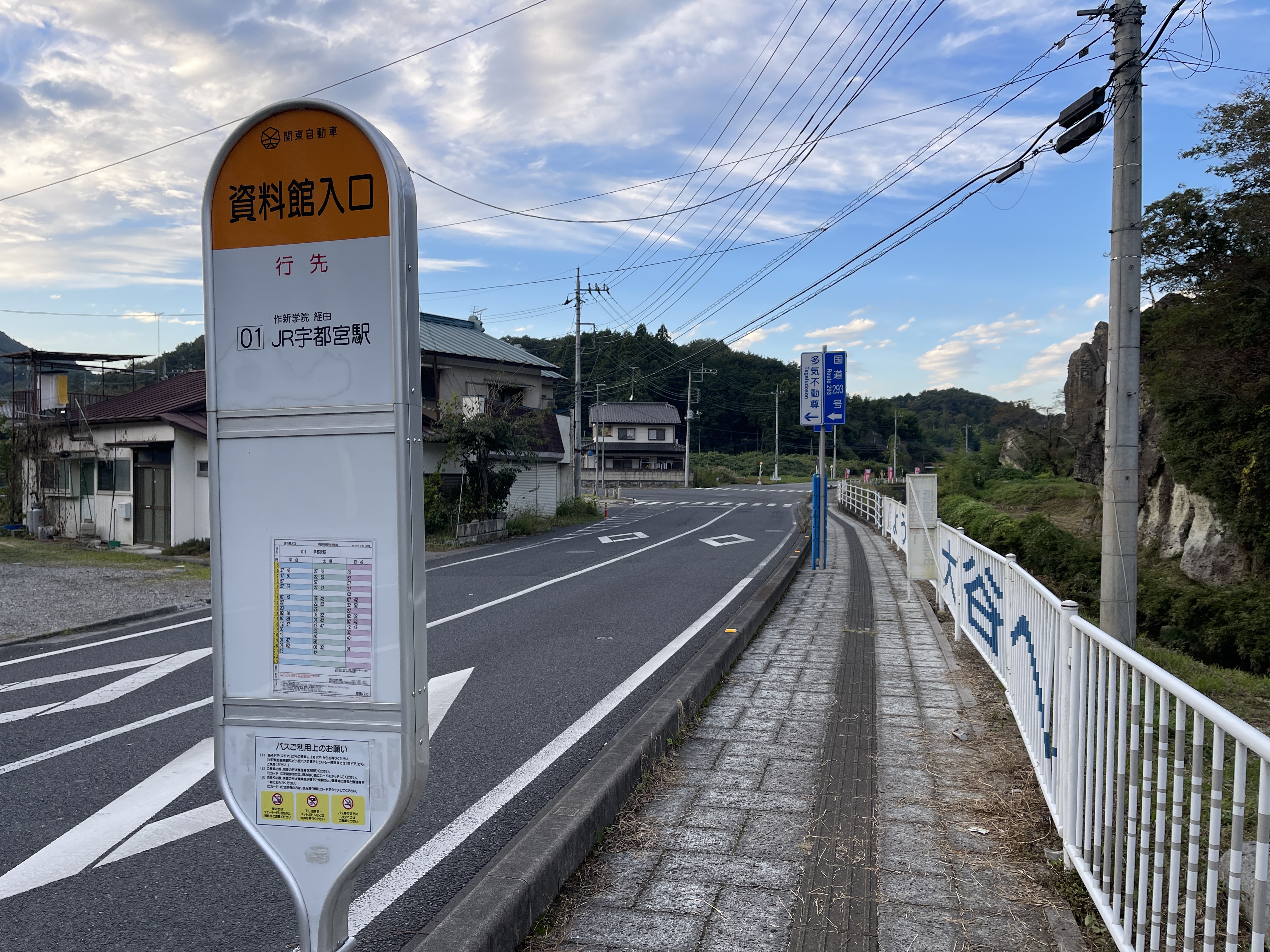 자료관에서 나와 버스 정류장으로 왔는데