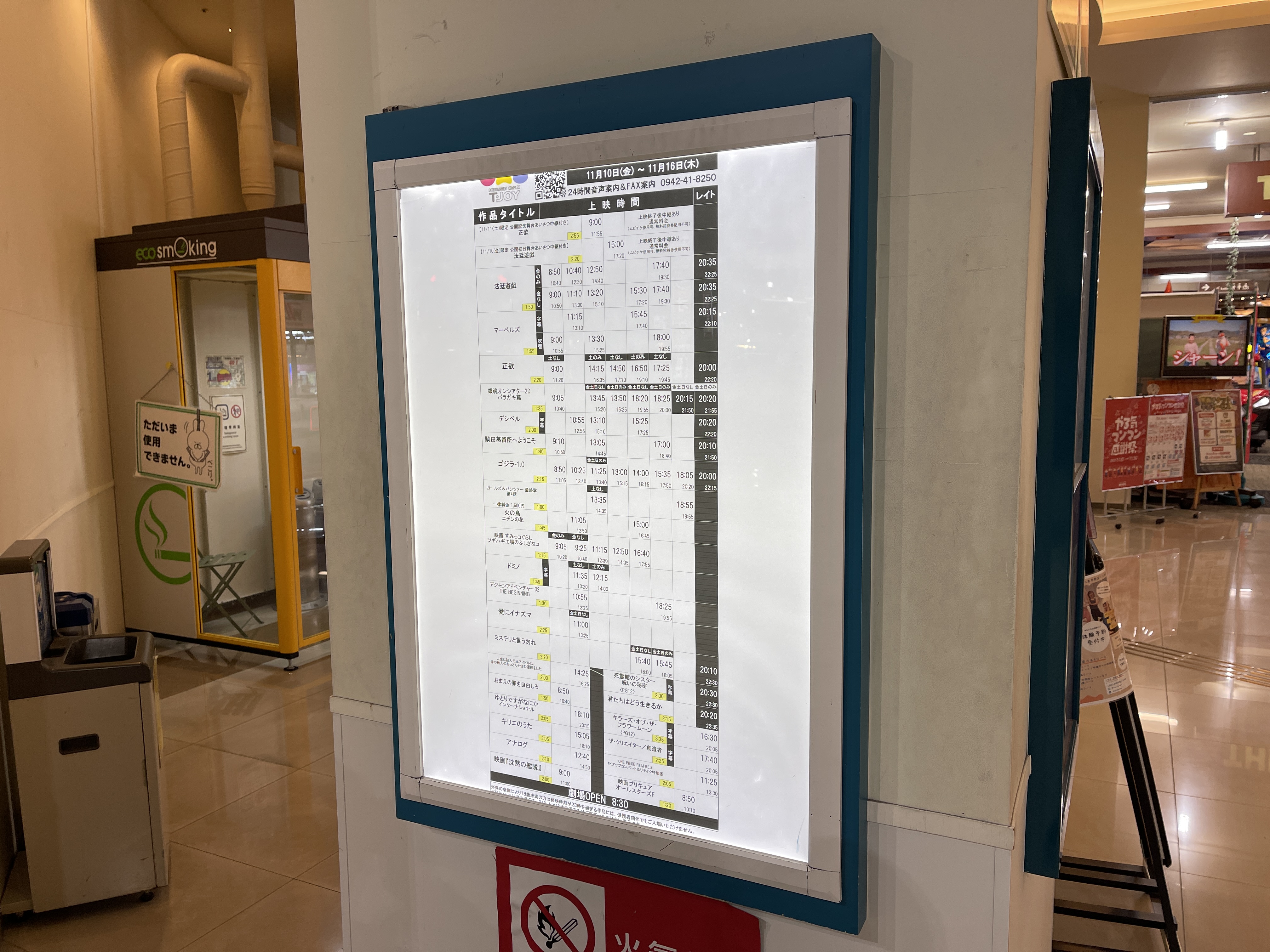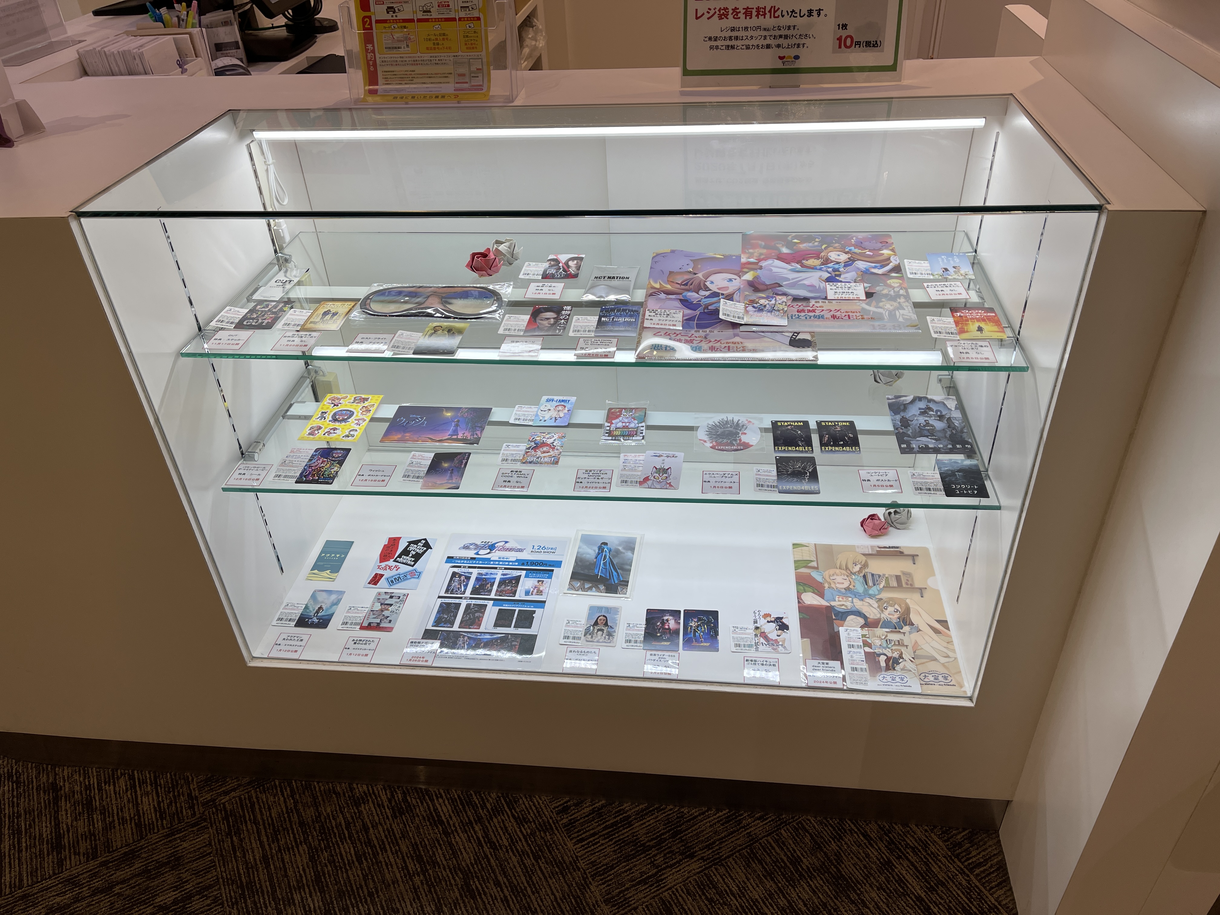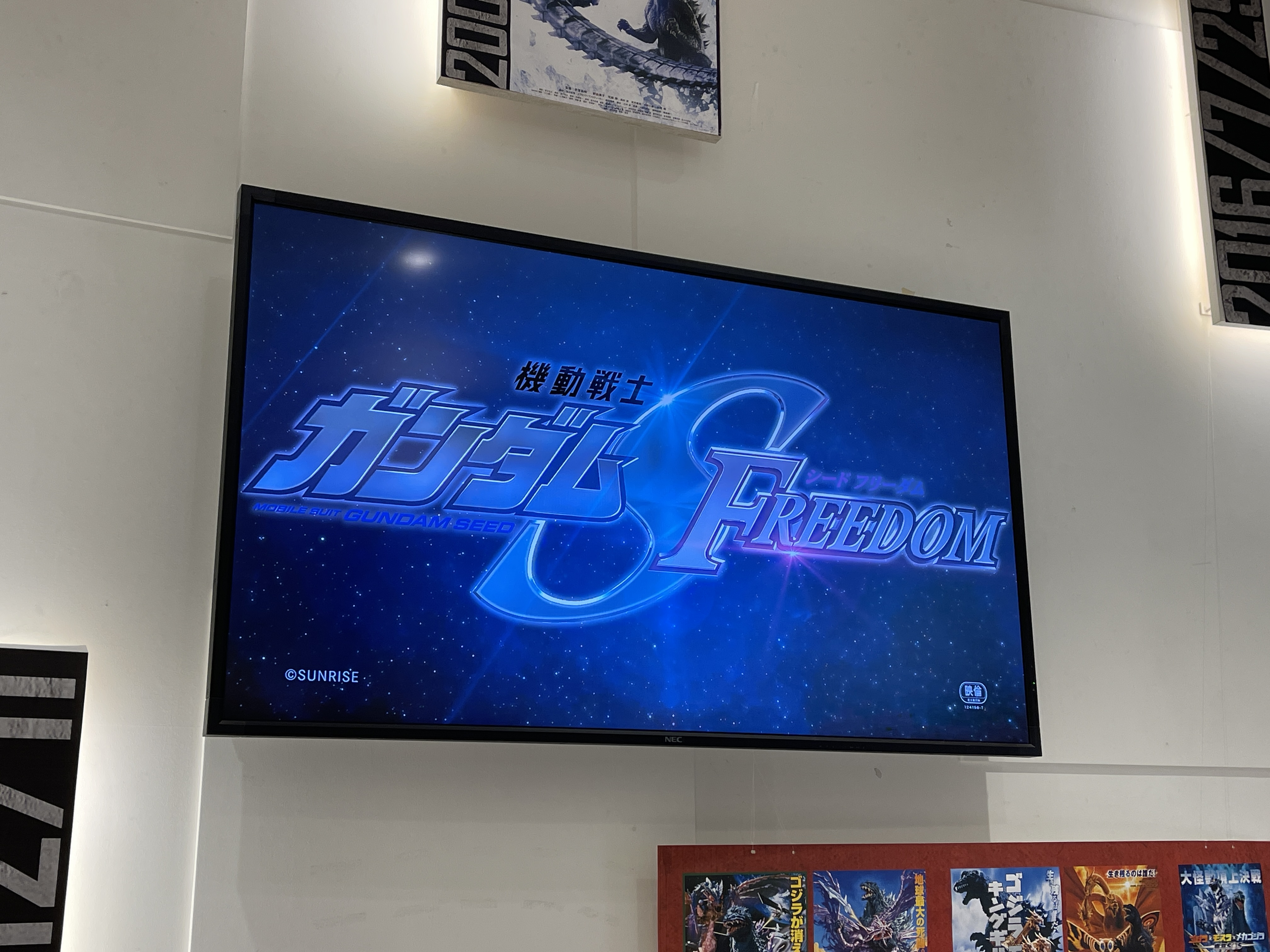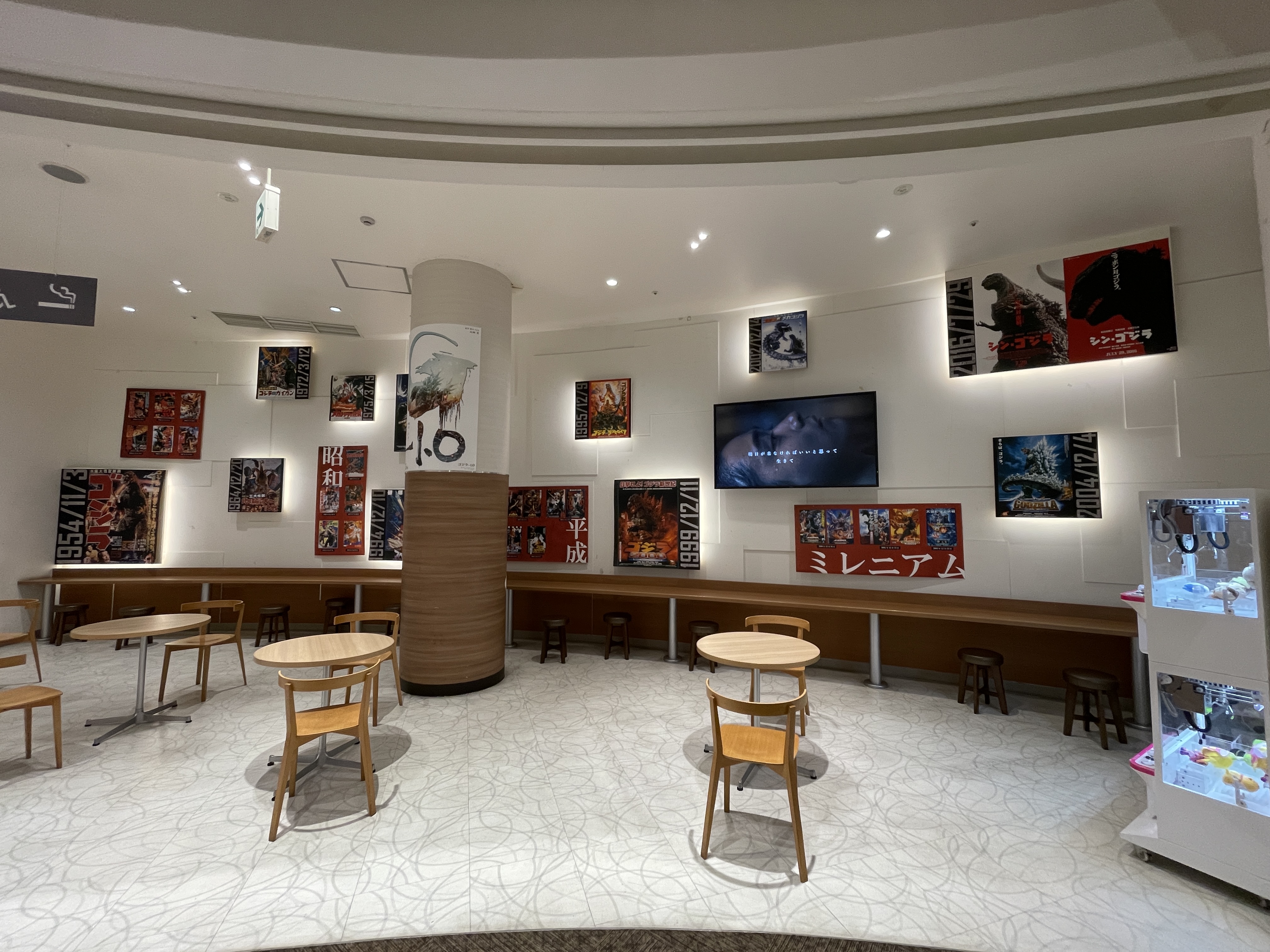 나중에 아카데미 시상식에서 시각효과상을 수상한 '고지라-1.0'과 관련된 전시물이 걸려 있고