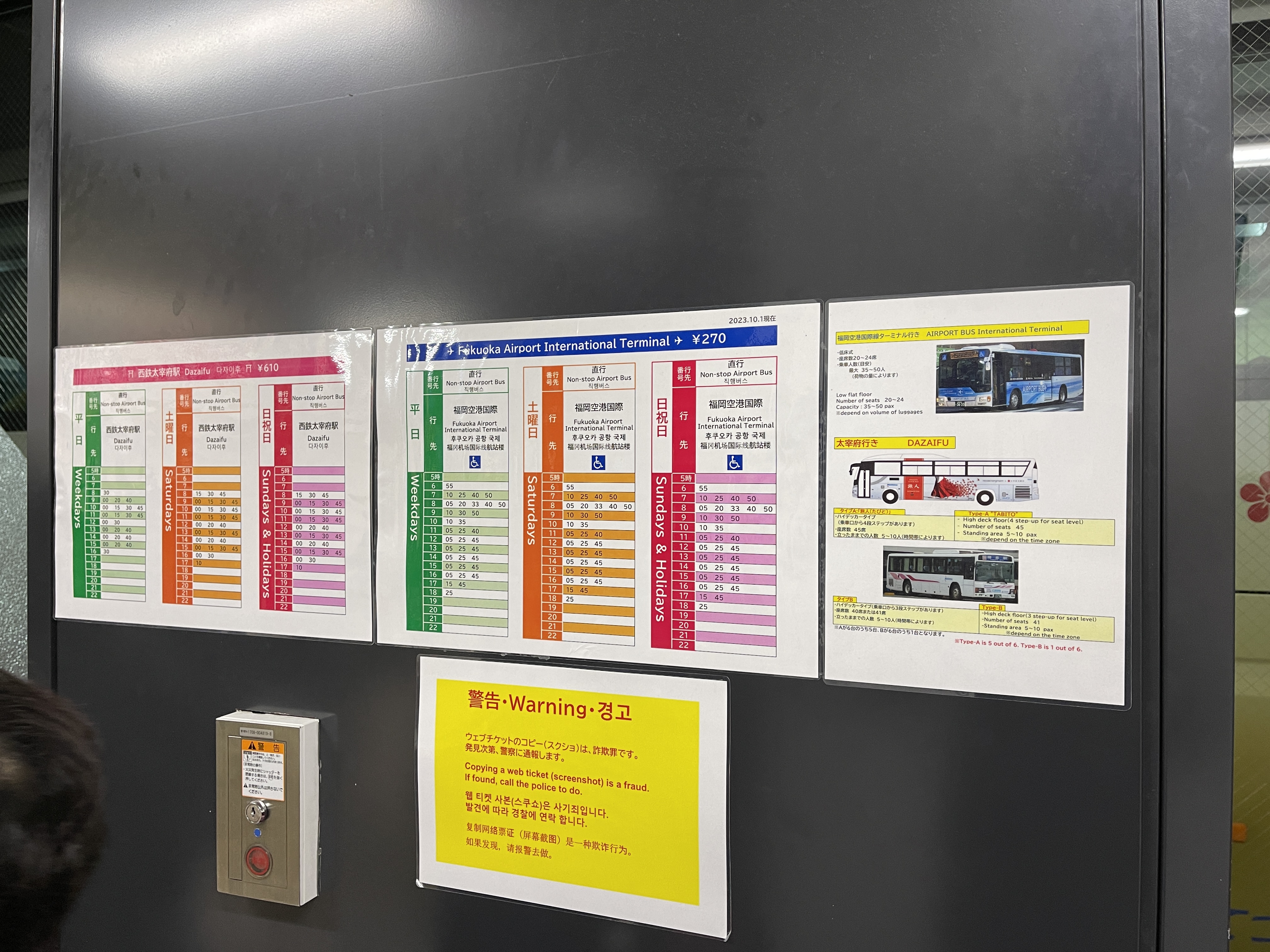 코로나가 종식되고 나서 제법 회복한 후쿠오카 공항 국제선 터미널행 버스 시간표를 확인하고