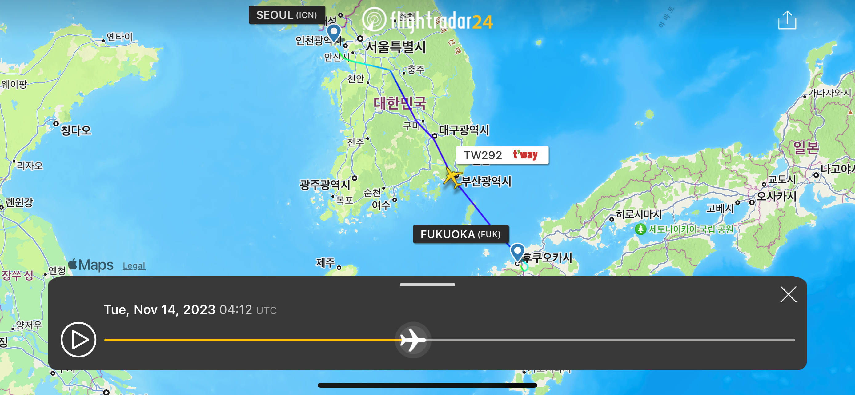 티웨이 TW292편에 올라탑니다.