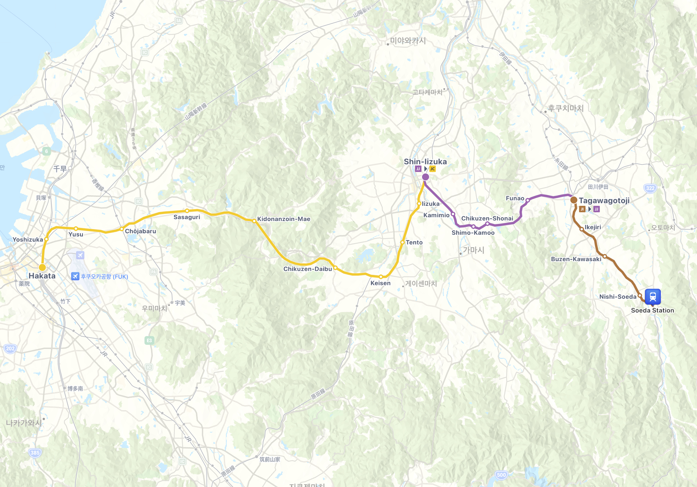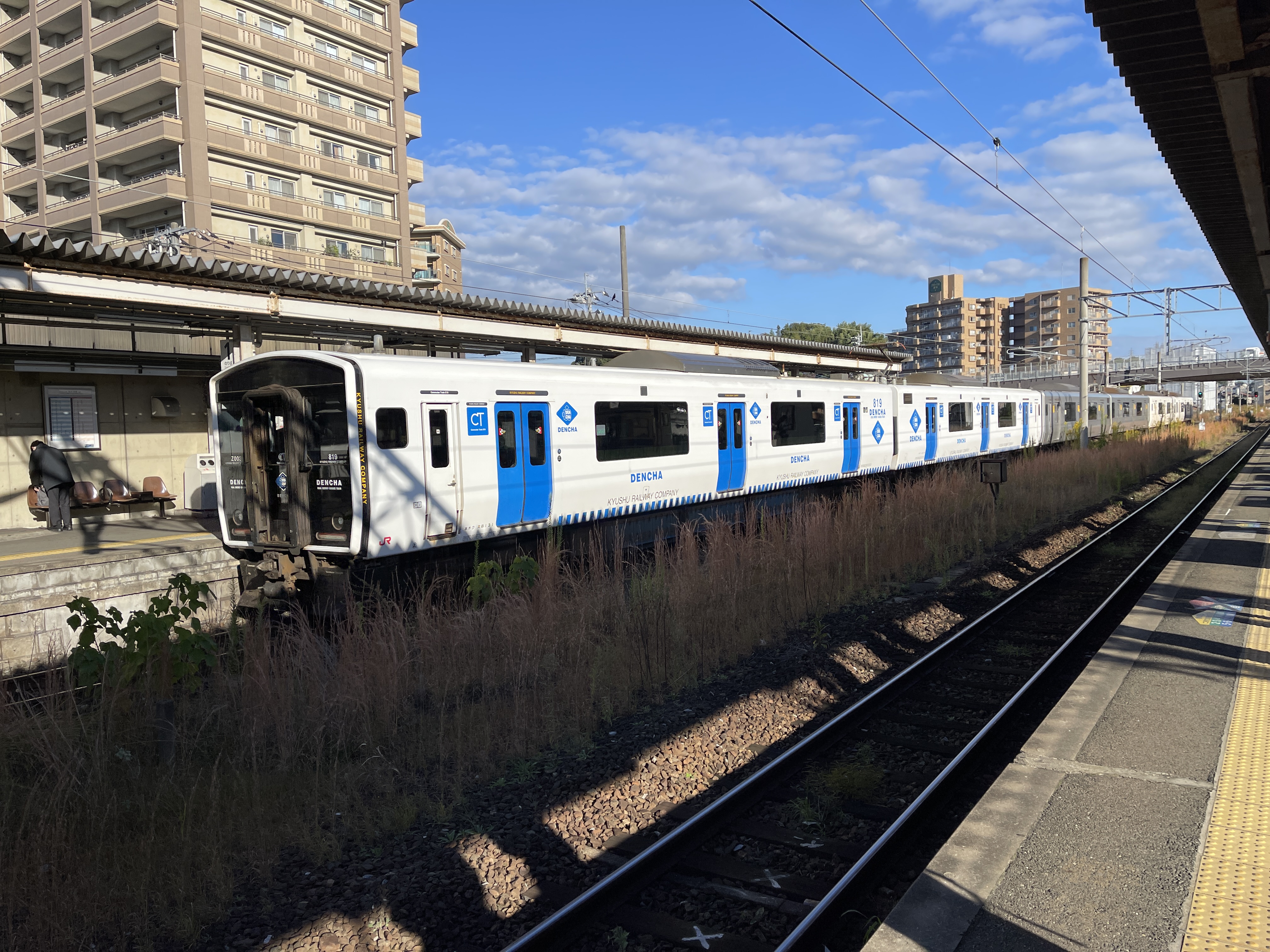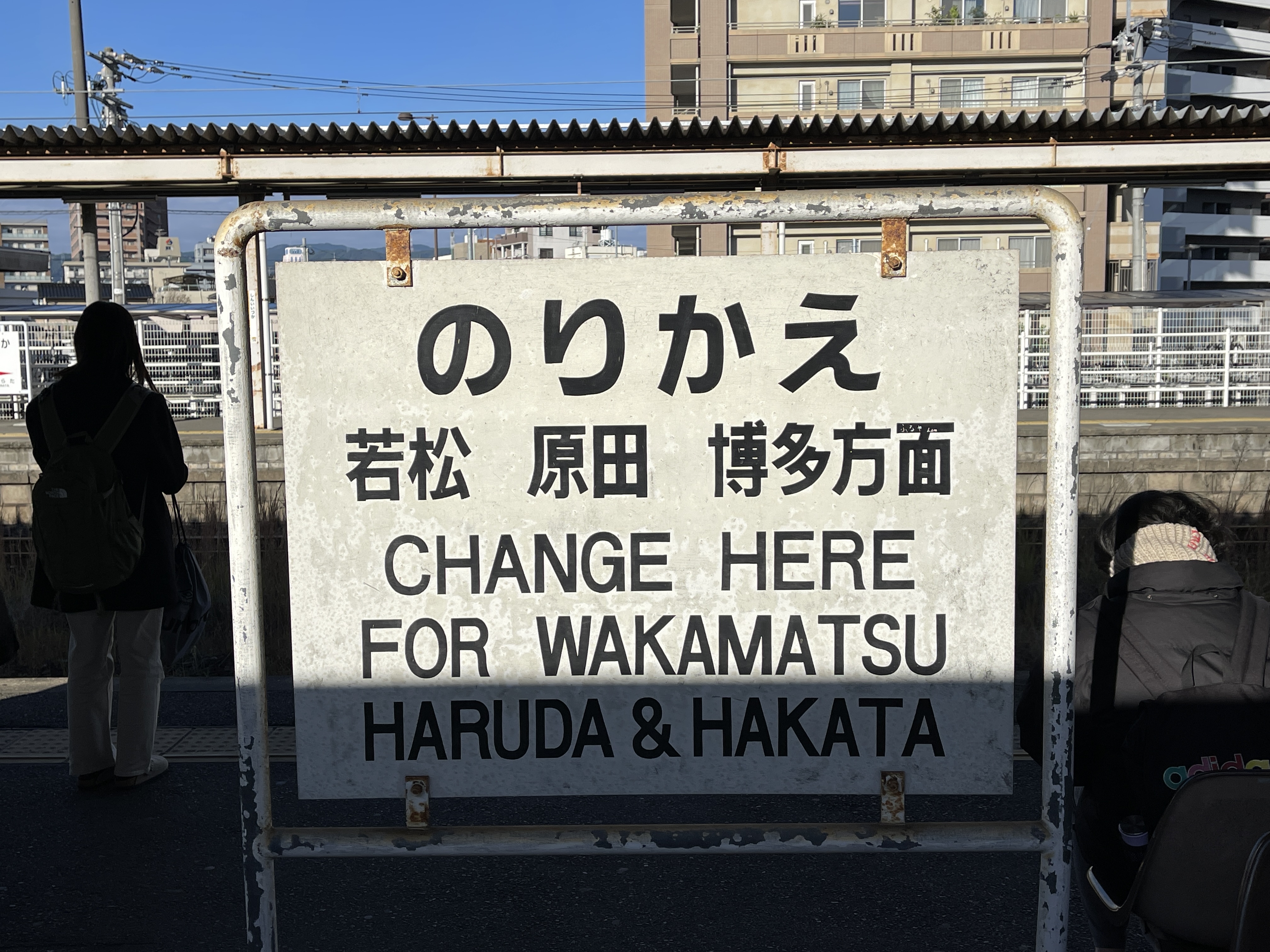 하카타역으로 갈 승객은 여기서 열차를 갈아타라는 안내에 따라