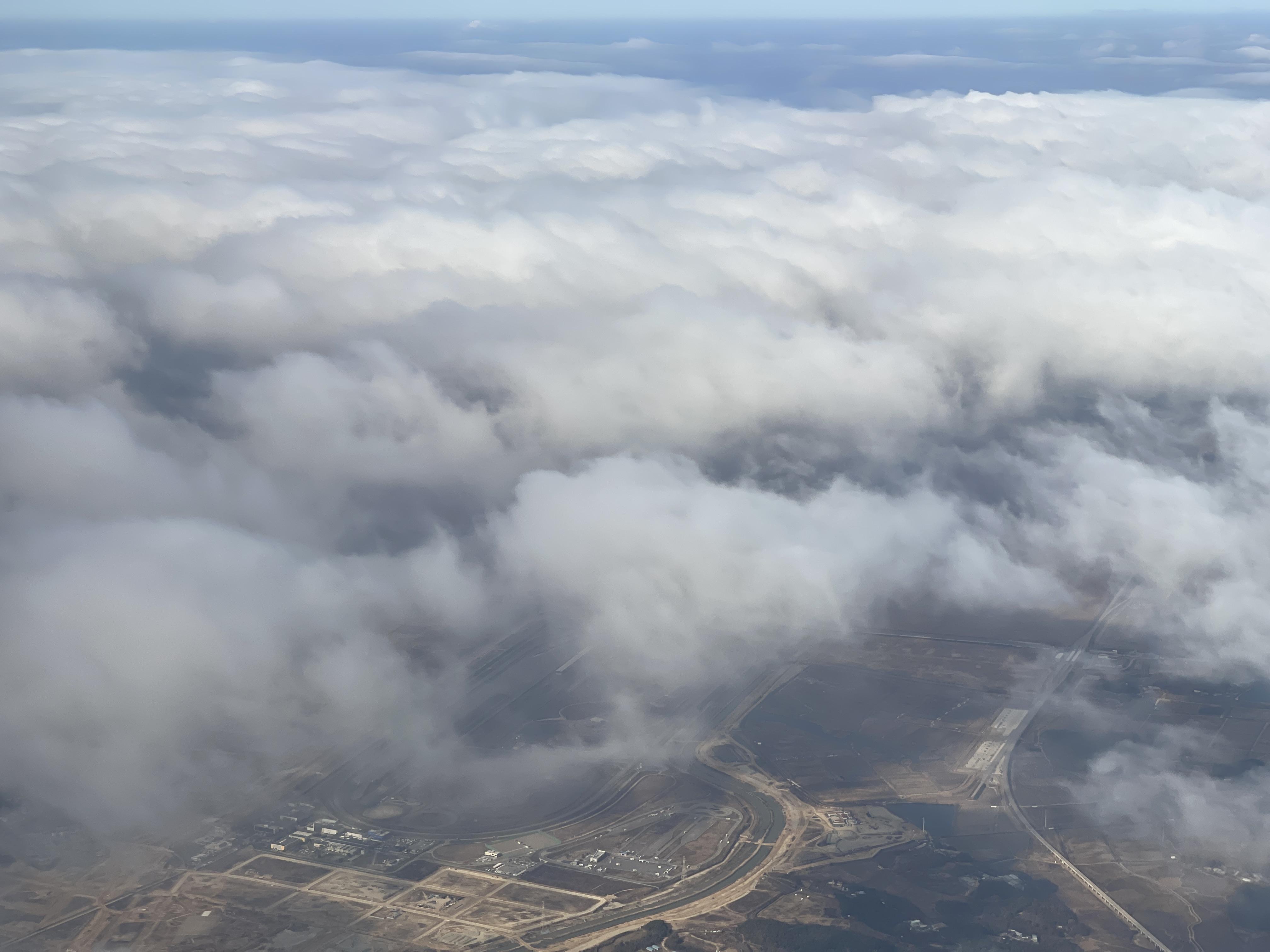 갑자기 하늘을 덮은 구름 아래로 내려가
