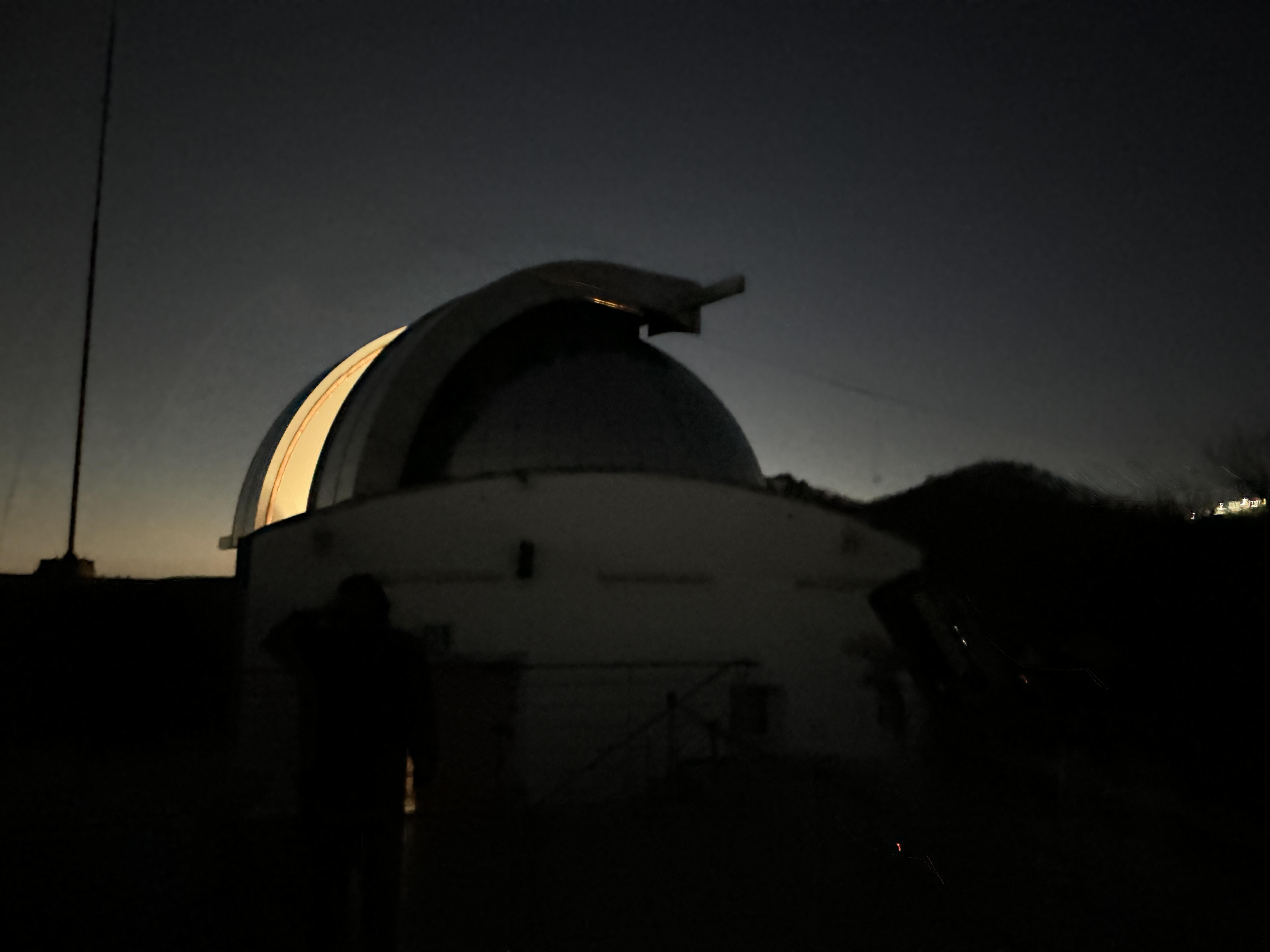 건물 옥상에 희미하게 보이는 천문대 돔을 보며