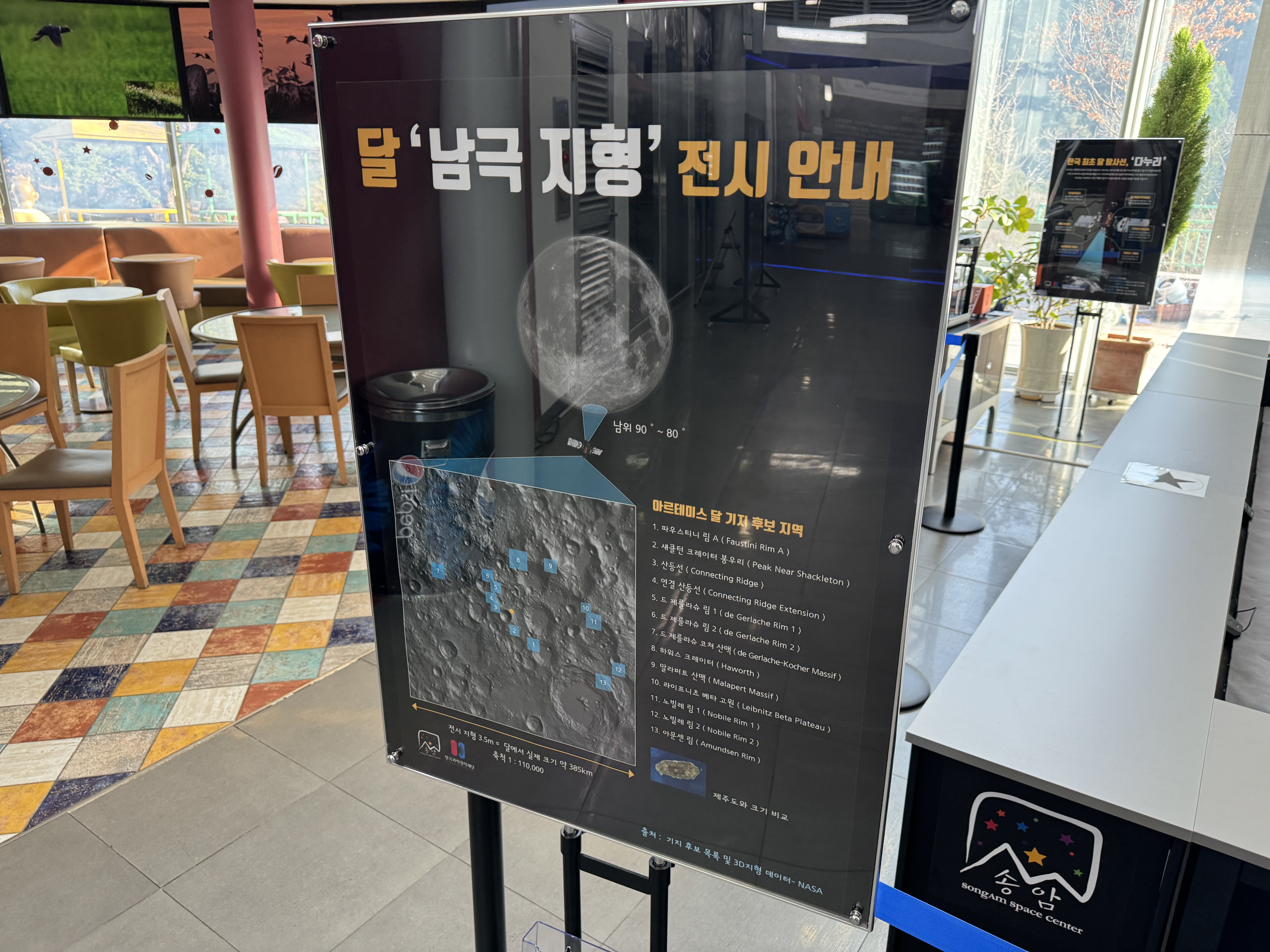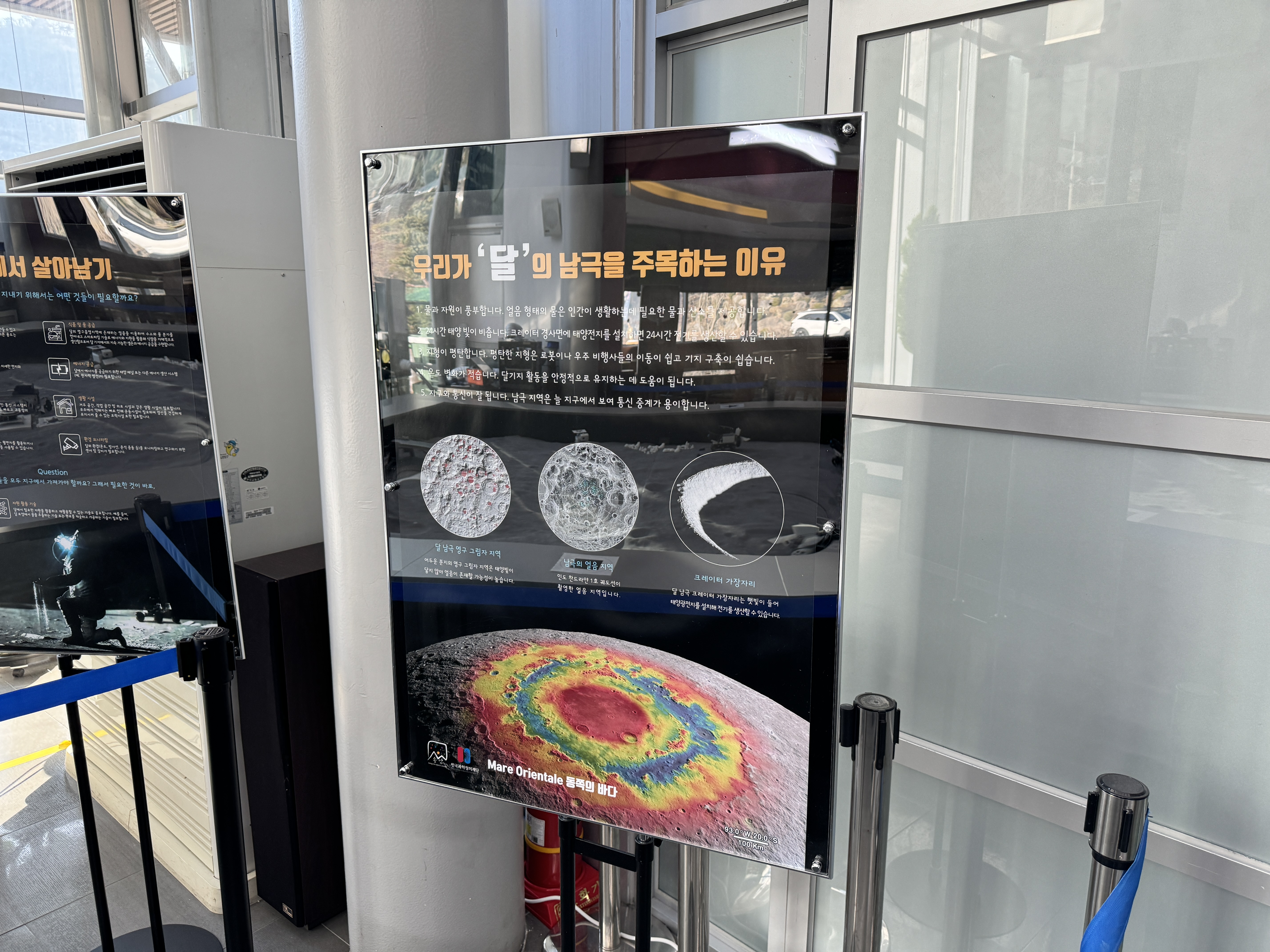 그중에서도 얼음이 있는 것으로 추정하고 있는 달의 남극에 대한 전시를 만든 것 같네요.