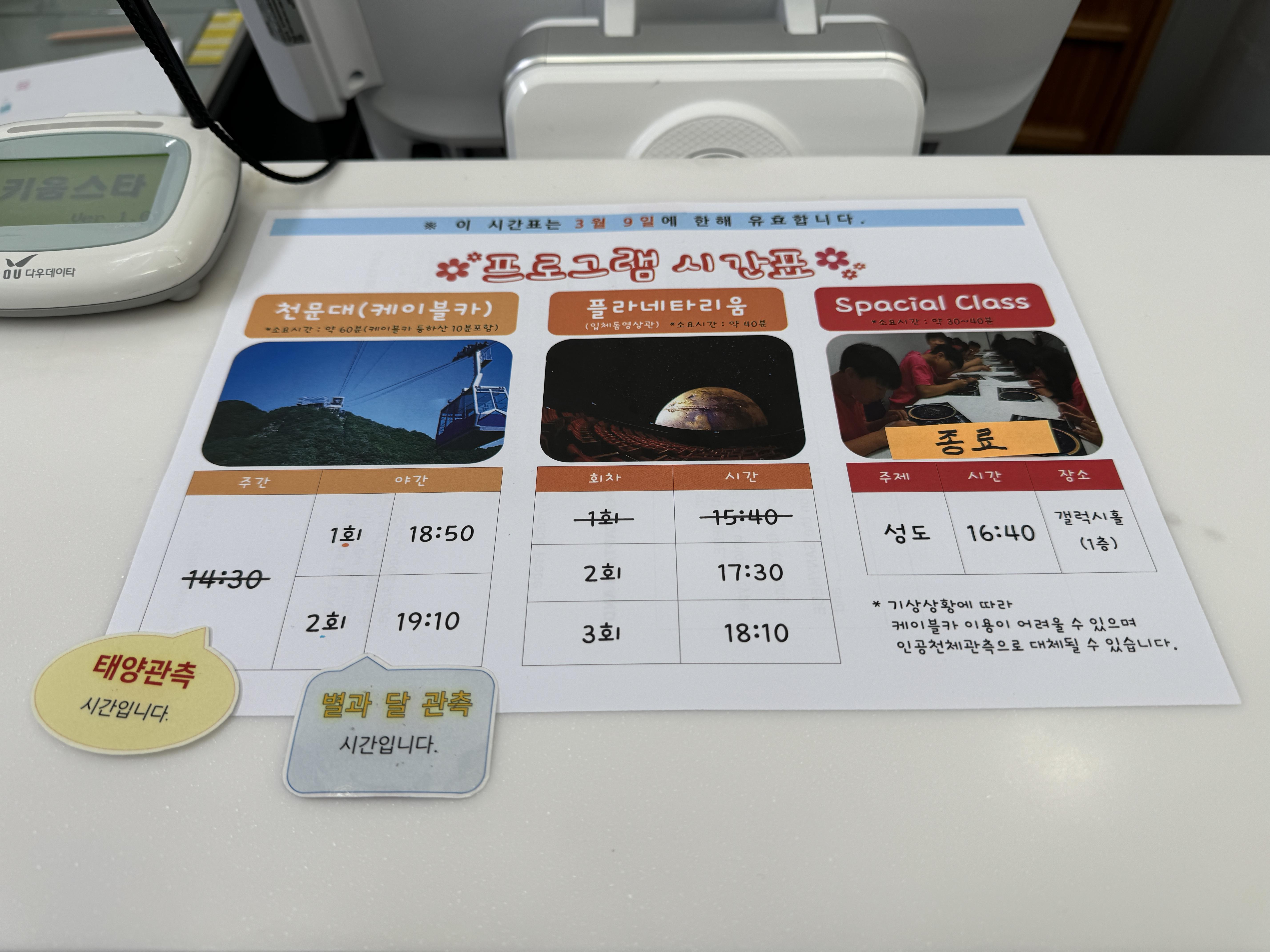 플라네타리움 상영과 천문대로 올라가는 케이블카 승차권이 포함된 35,000원짜리 패키지를 사서