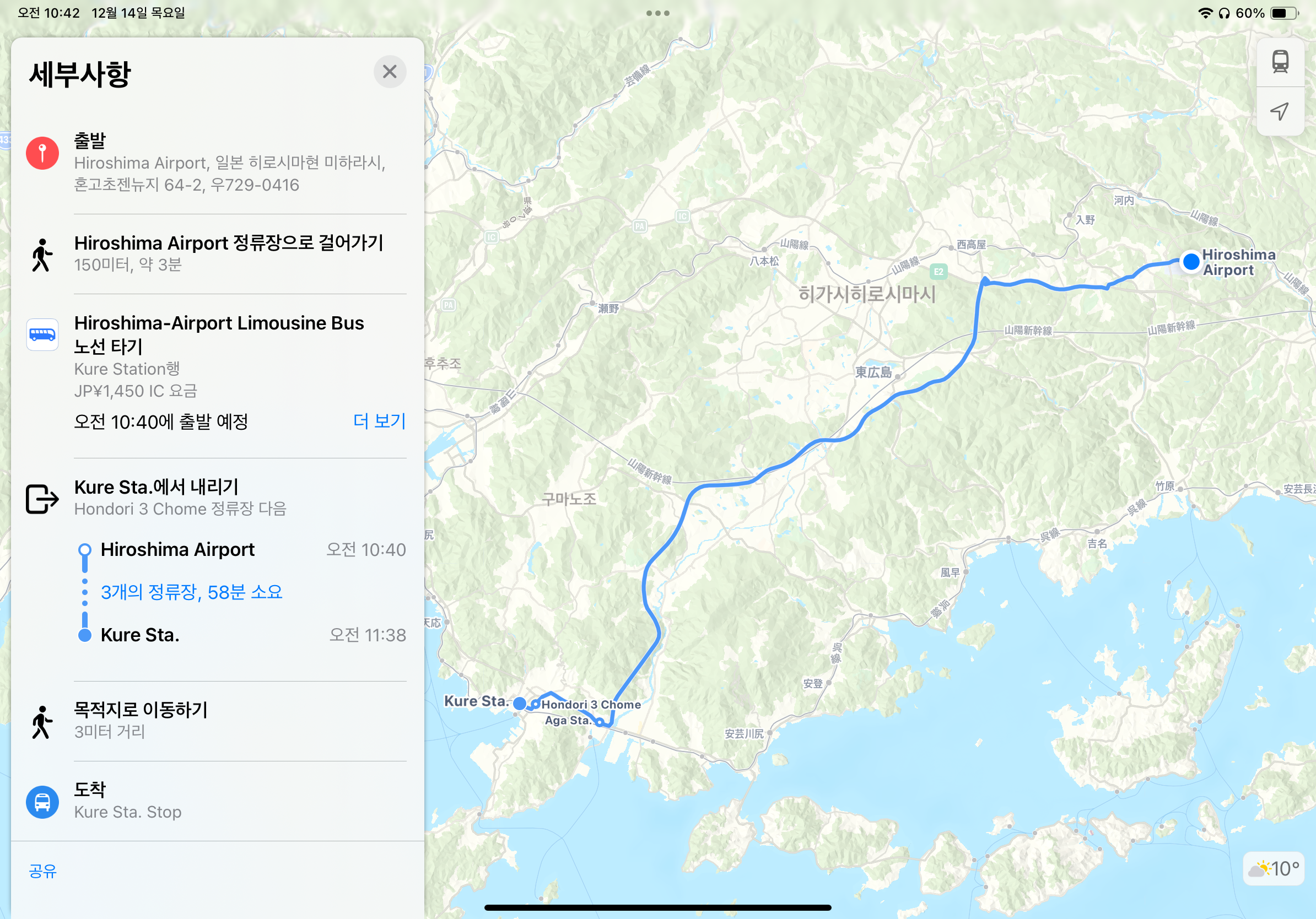 공항에서 못 잔 잠을 비행기에서 자고 히로시마 공항에 도착.