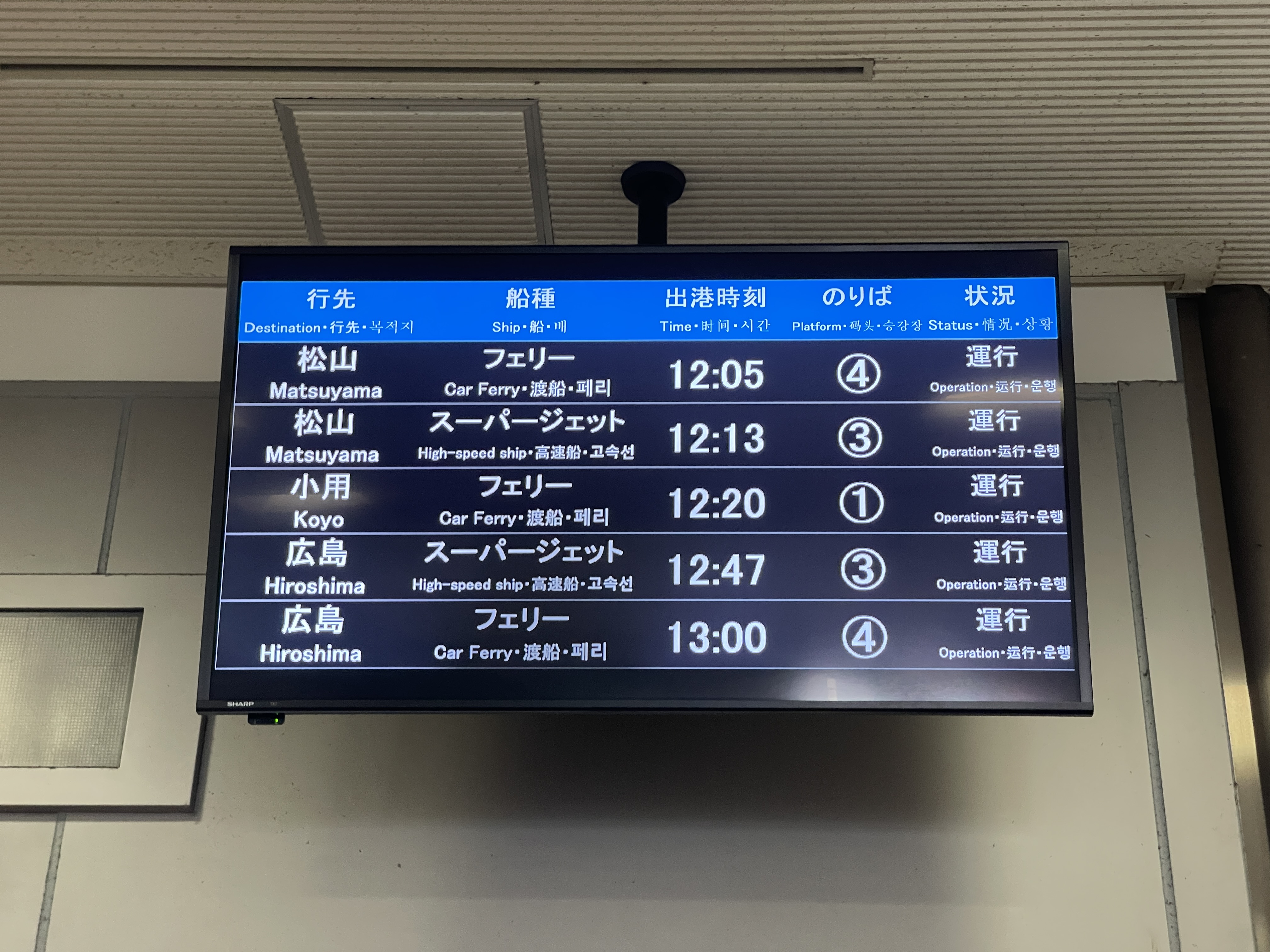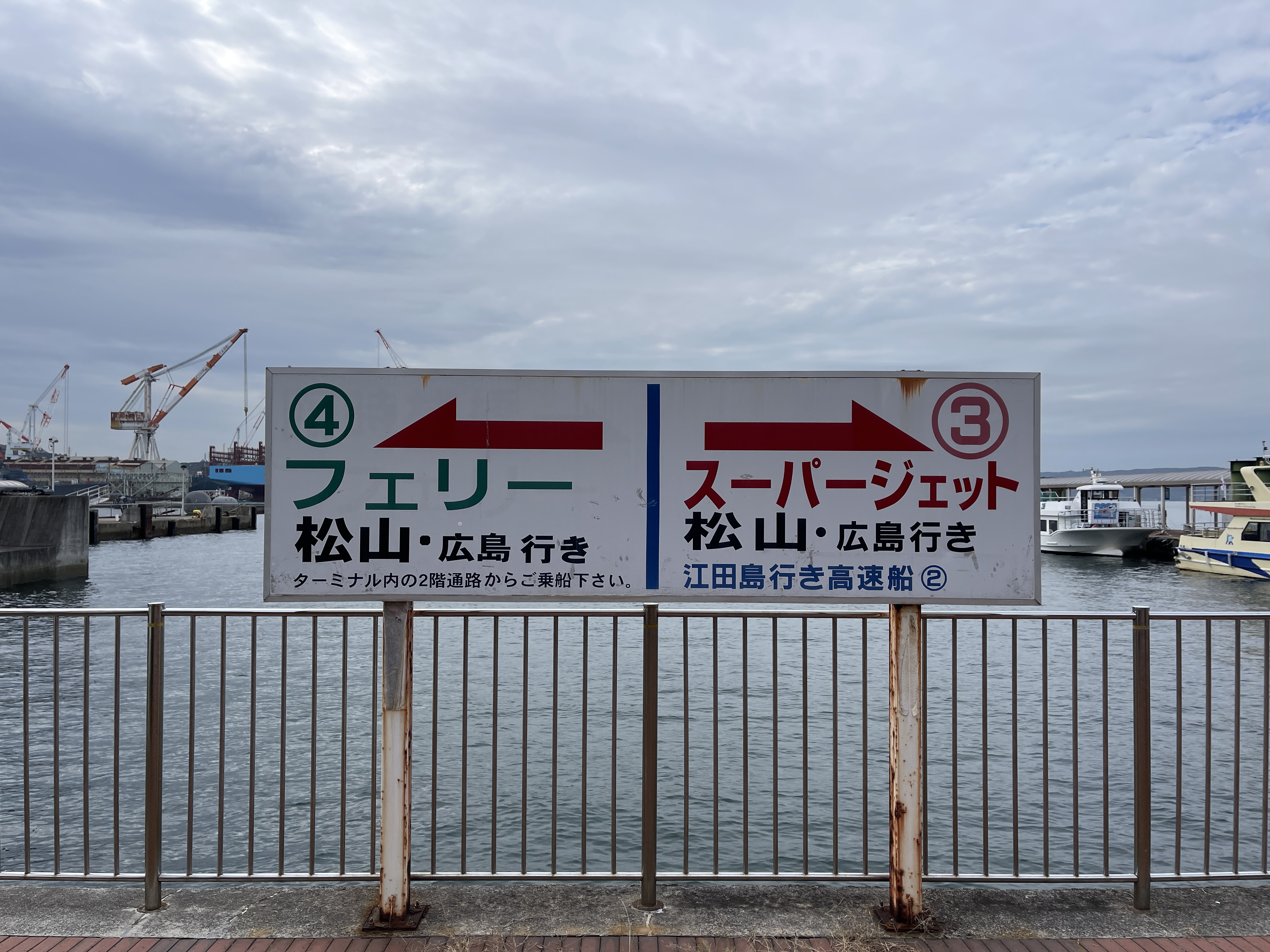 여기서 마츠야마까지 페리는 4,000엔, 슈퍼젯은 6,300엔을 내야 하지만