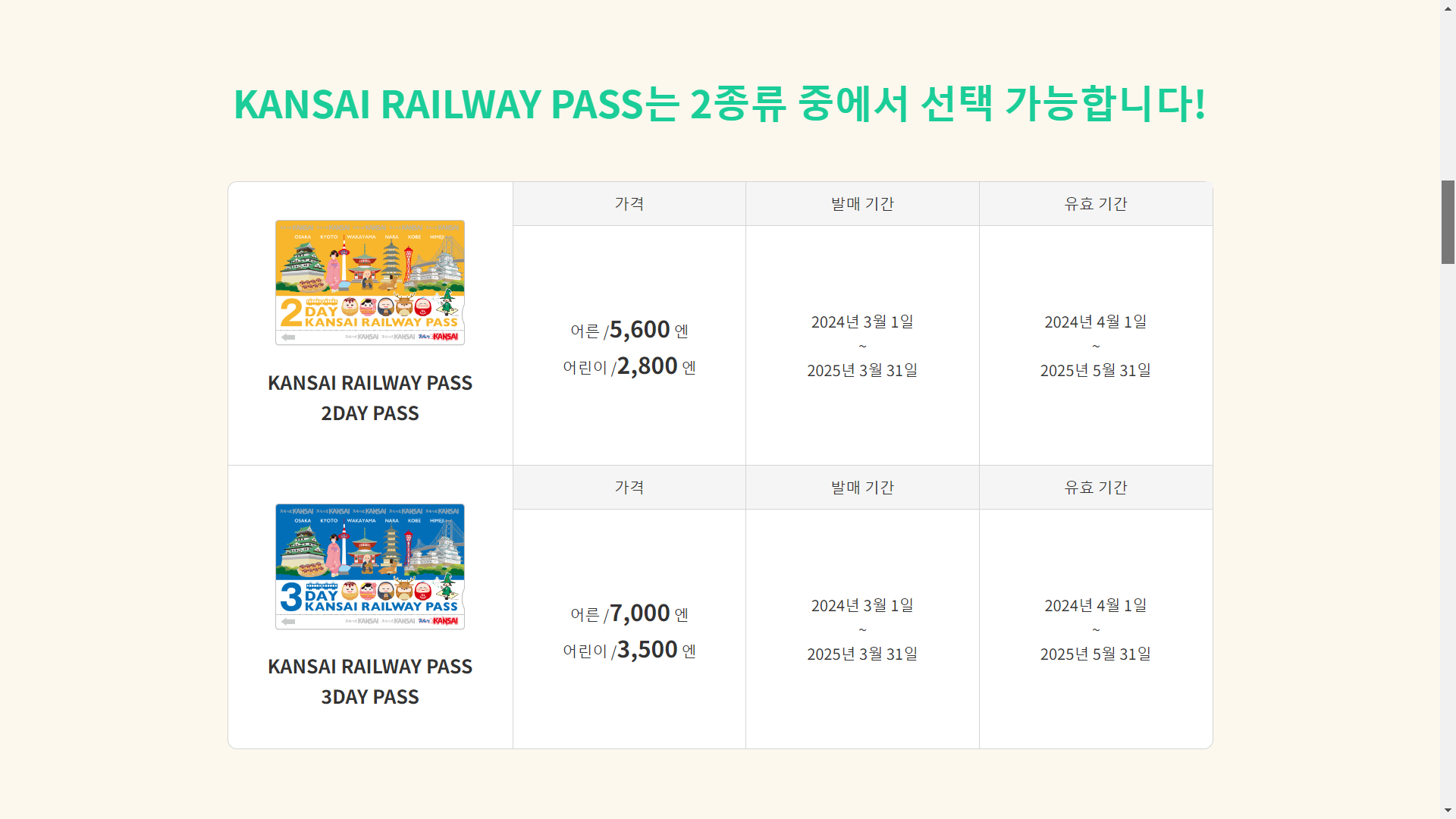 간사이 레일웨이 패스 2/3일권을 새로 출시했습니다.