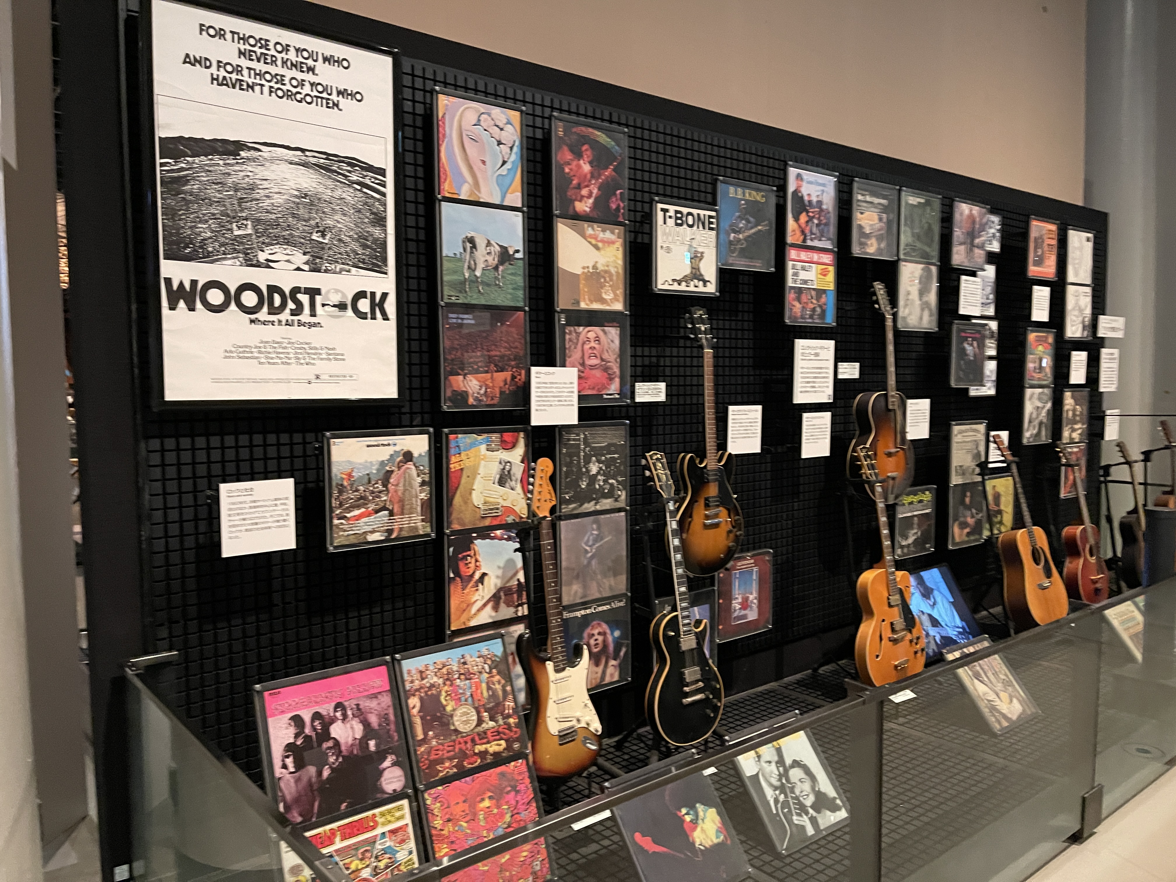 우드스탁 페스티벌 포스터를 비롯해서 락과 관련된 여러 전시물과