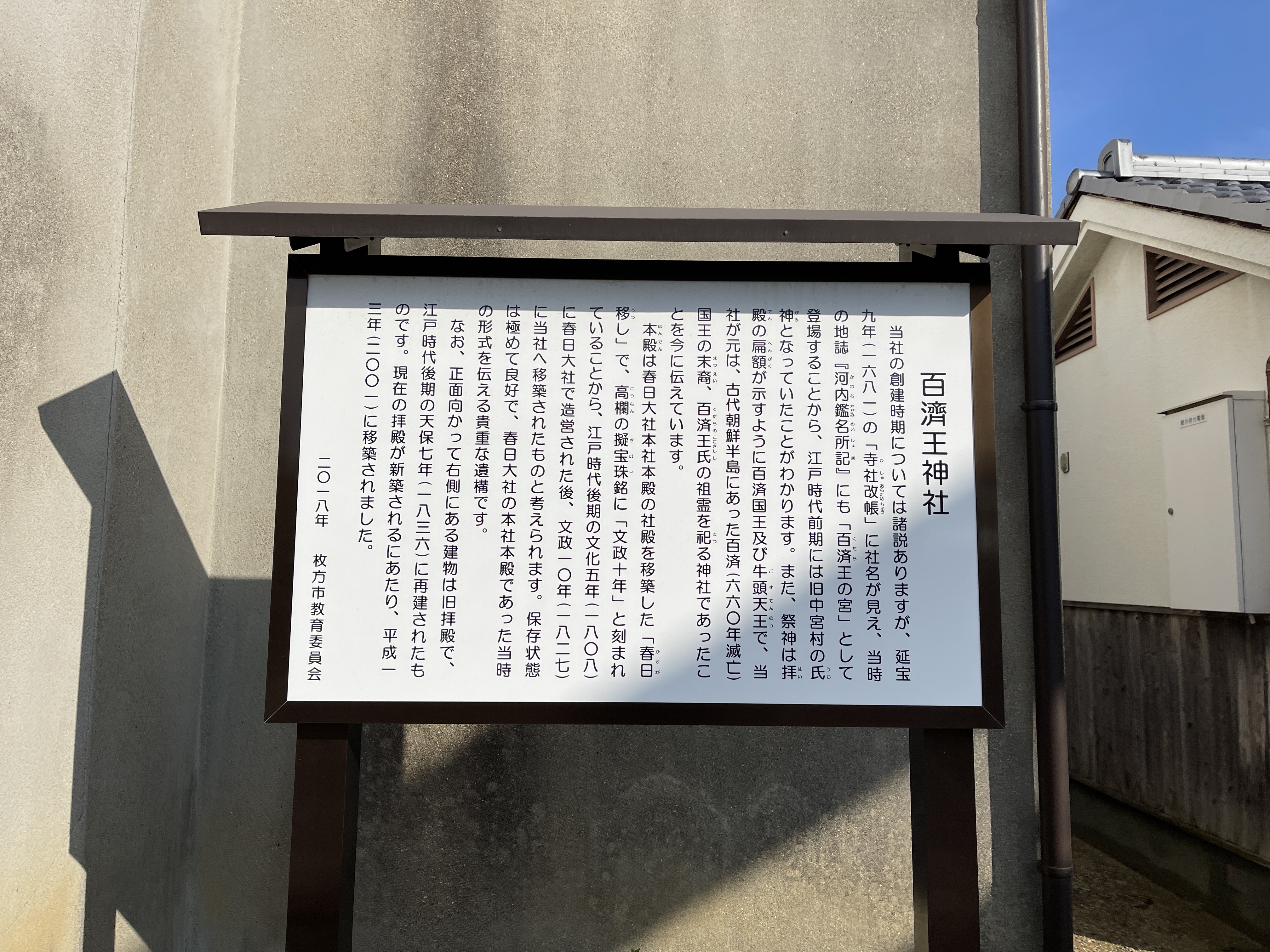 나중에 사당이 쿠다라오신사(百済王神社)로 바뀌었다고 합니다.