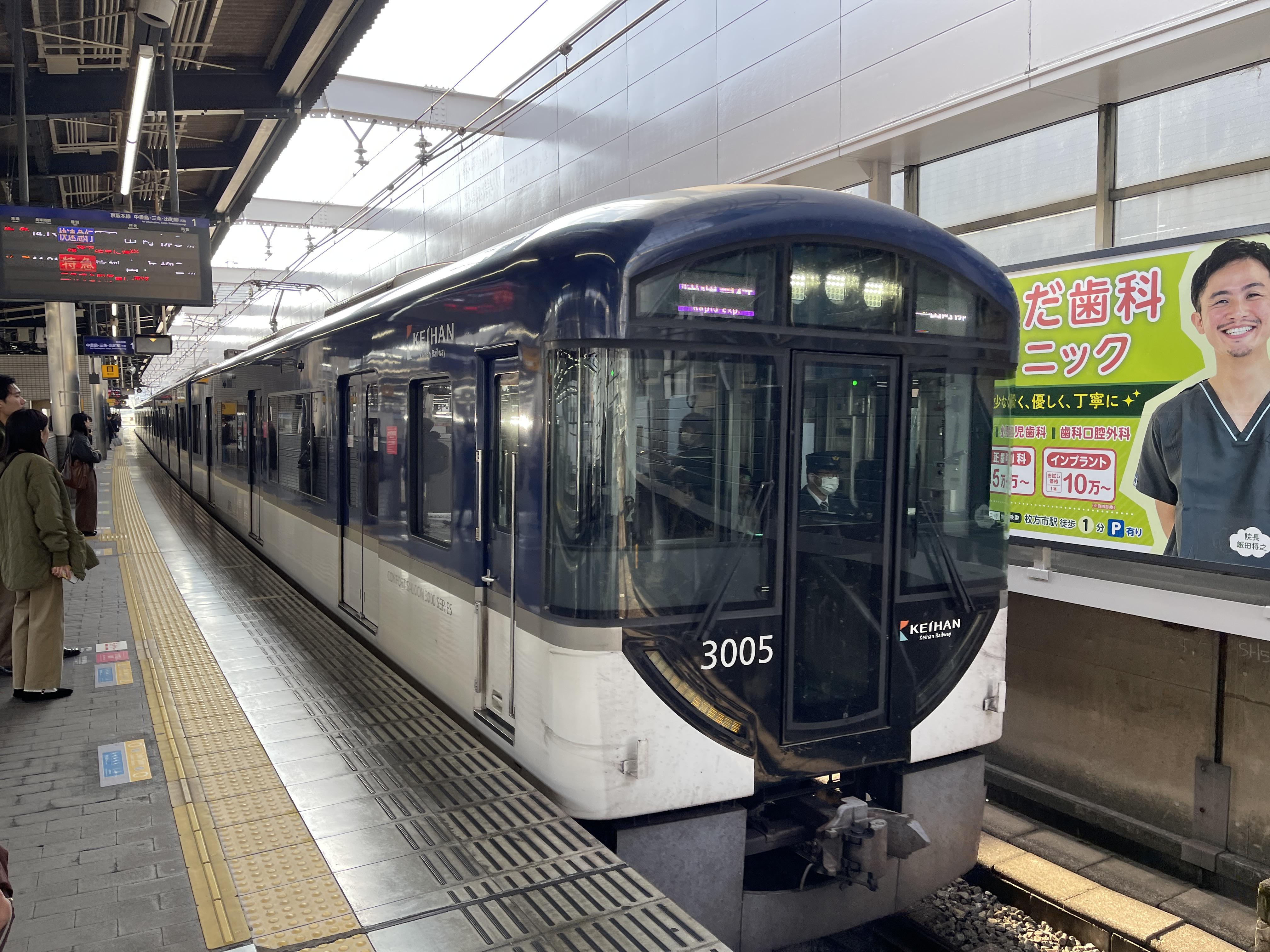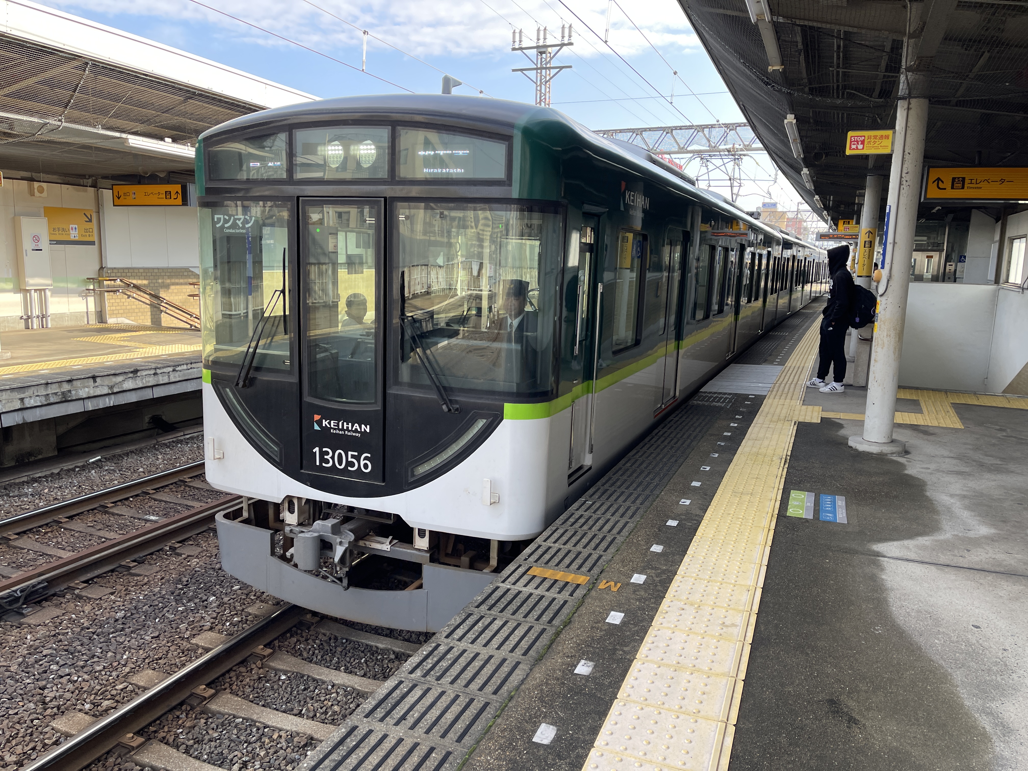 미야노사카역에서 다시 케이한 전철 열차를 타고