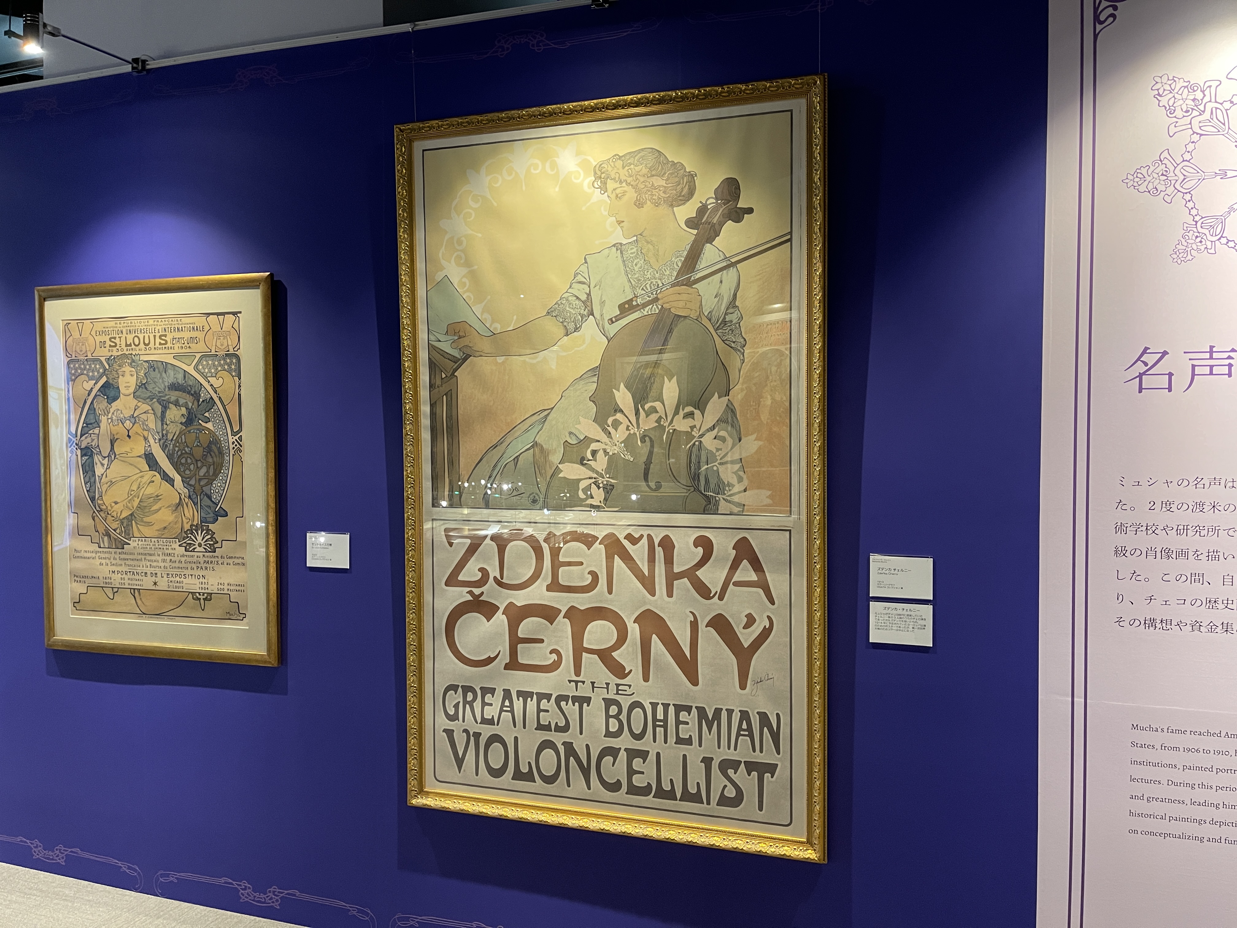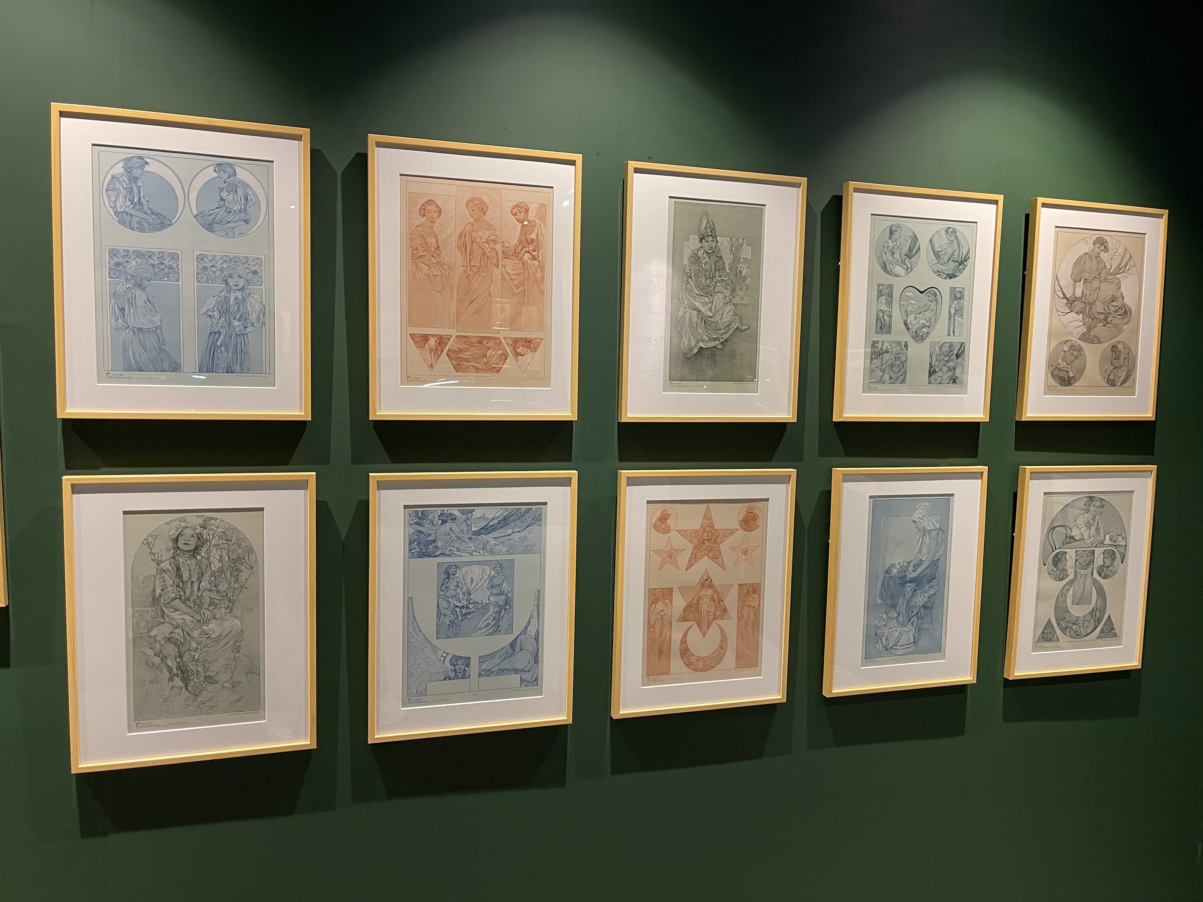 벽에 걸린 알폰스 무하의 작품들은