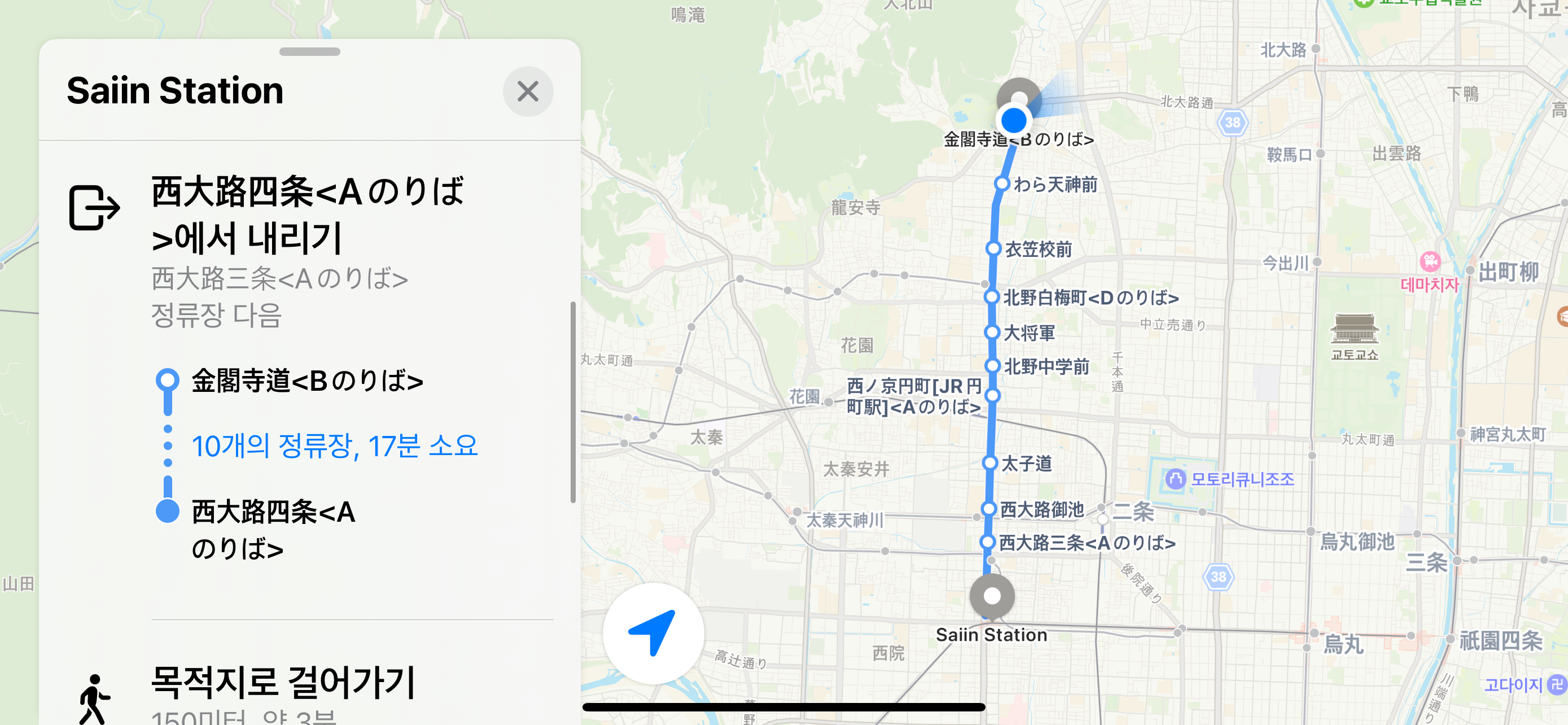 버스 노선도를 보니 사이인역에서 내려 한큐로 갈아타는 것이
