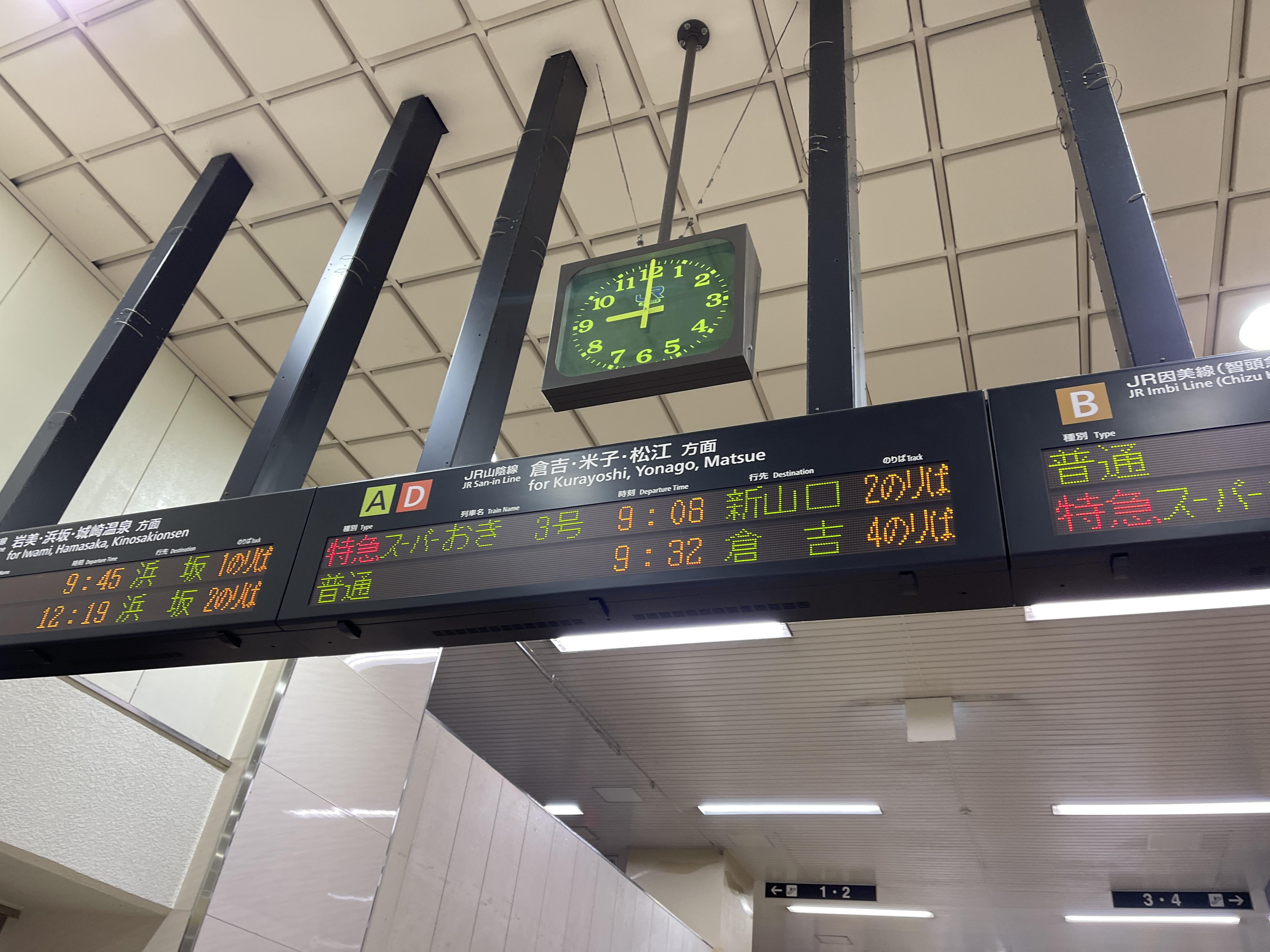 산인 지방에는 보통열차가 자주 다니지 않으니