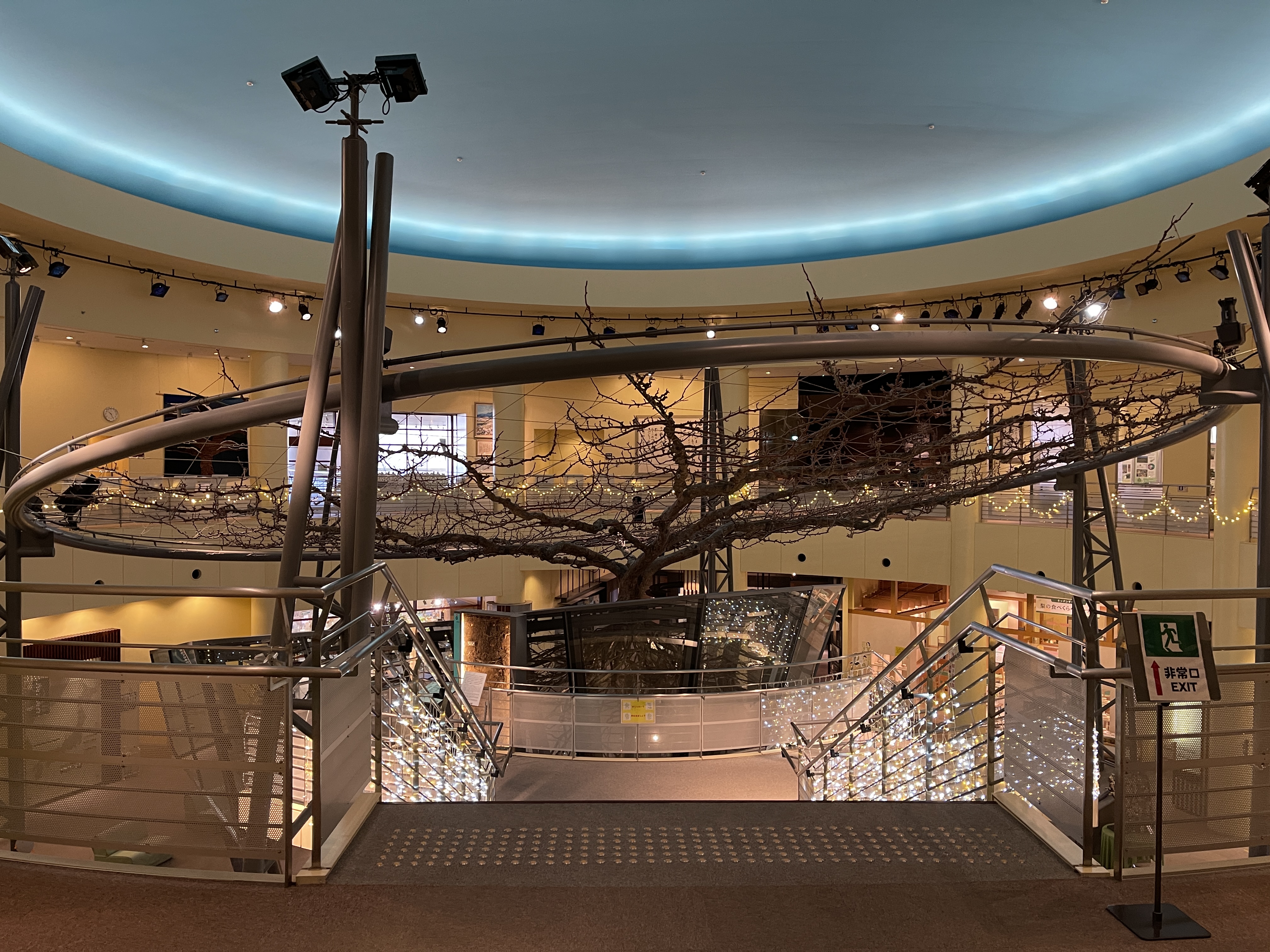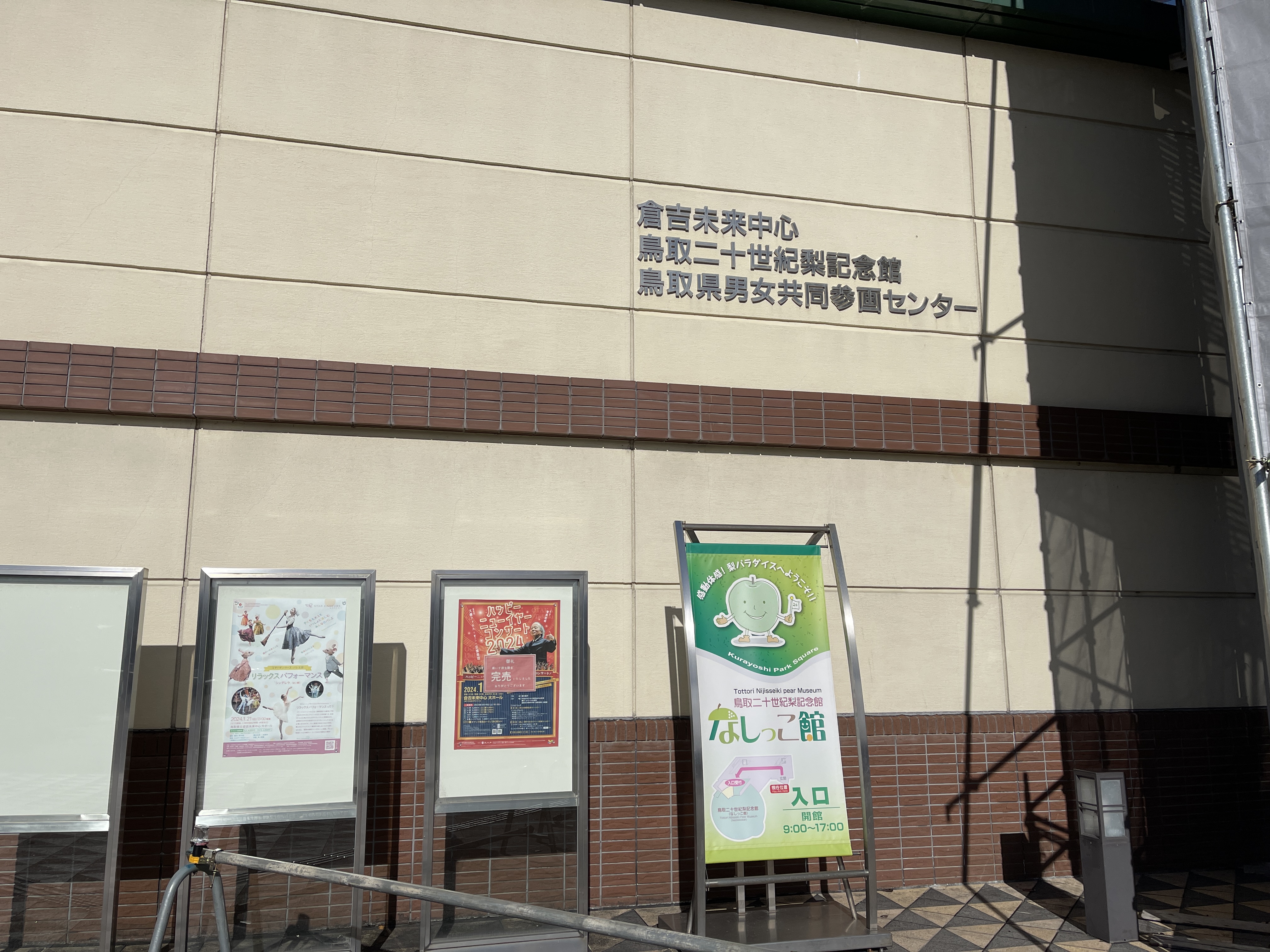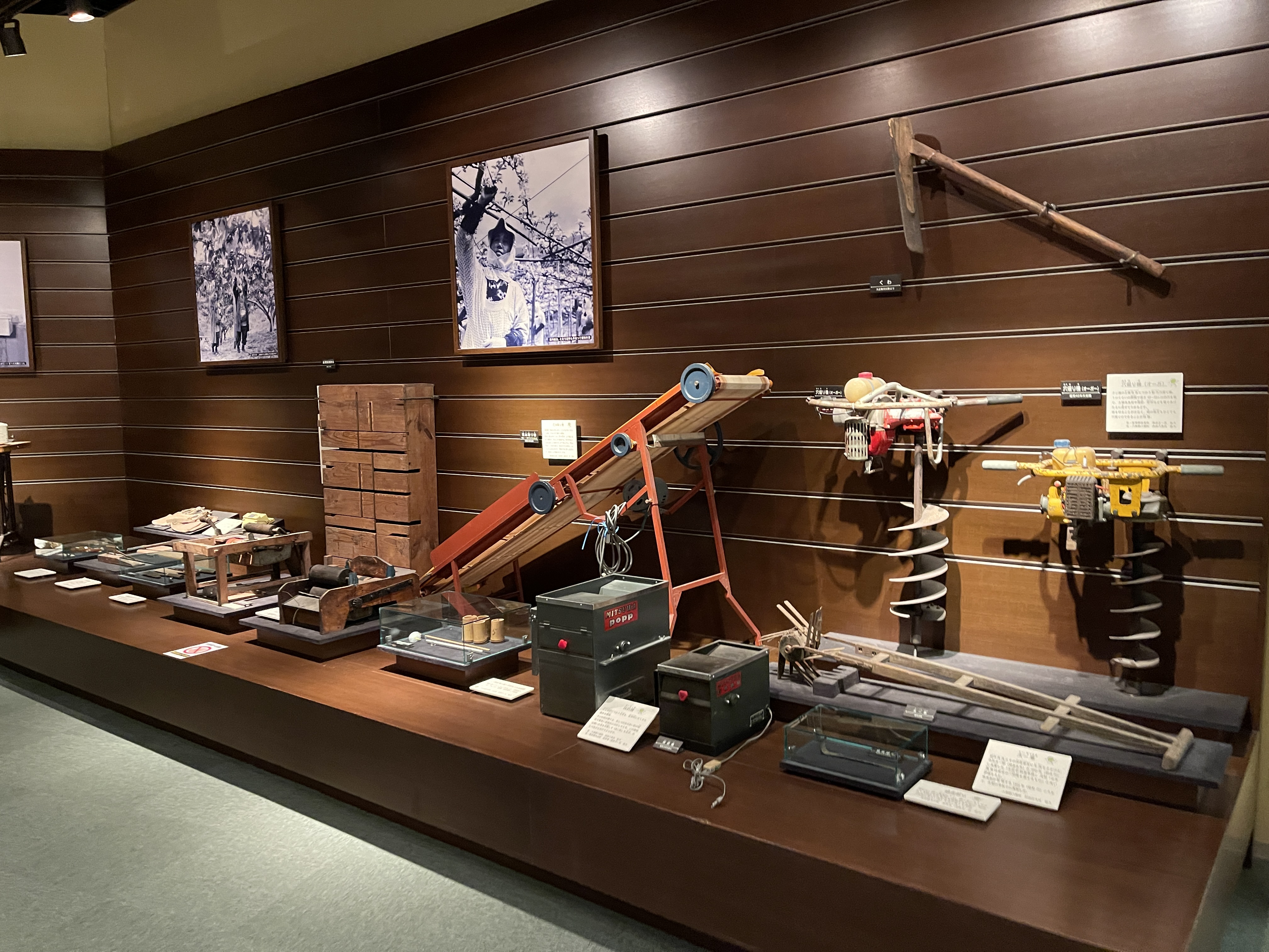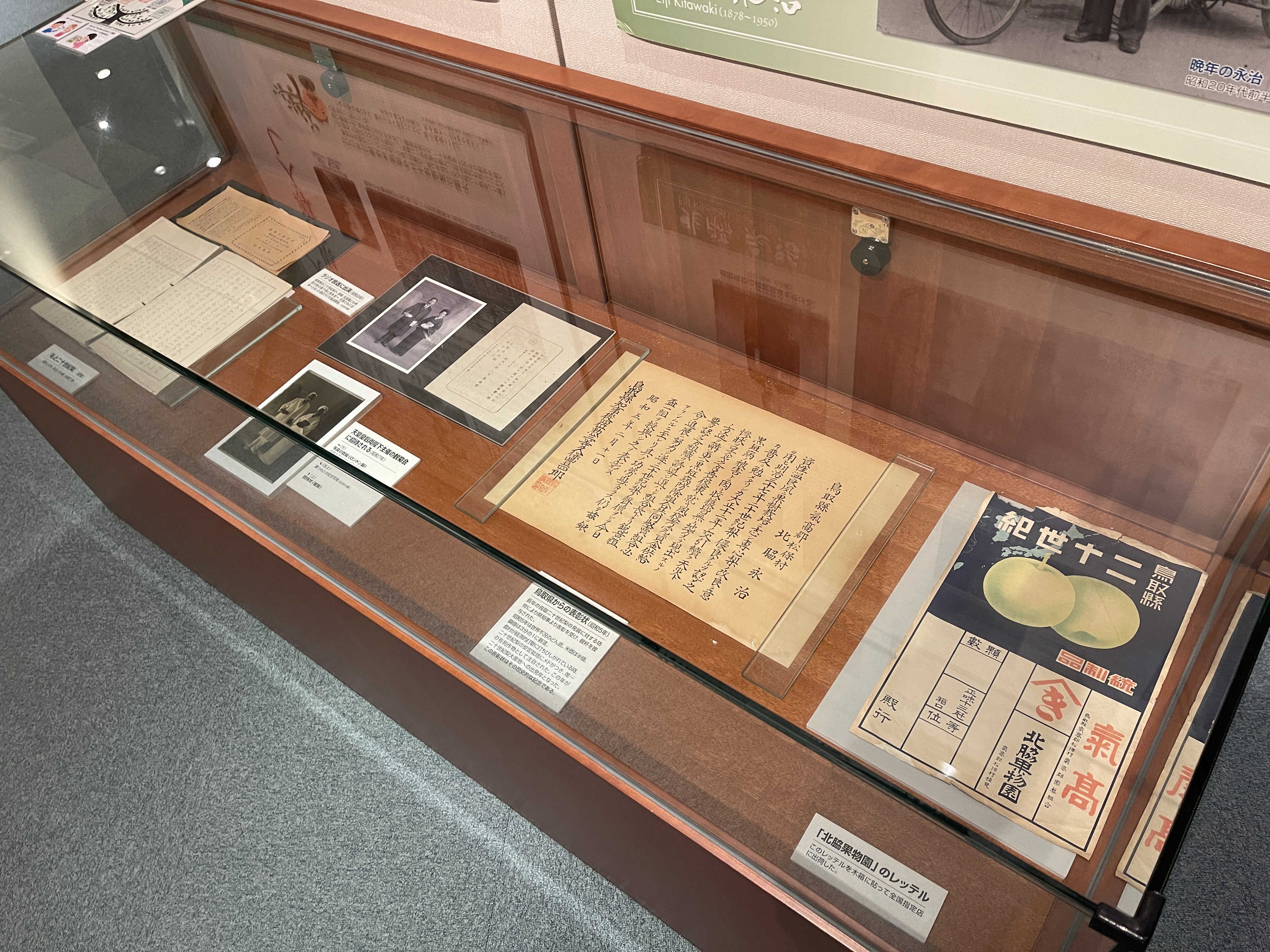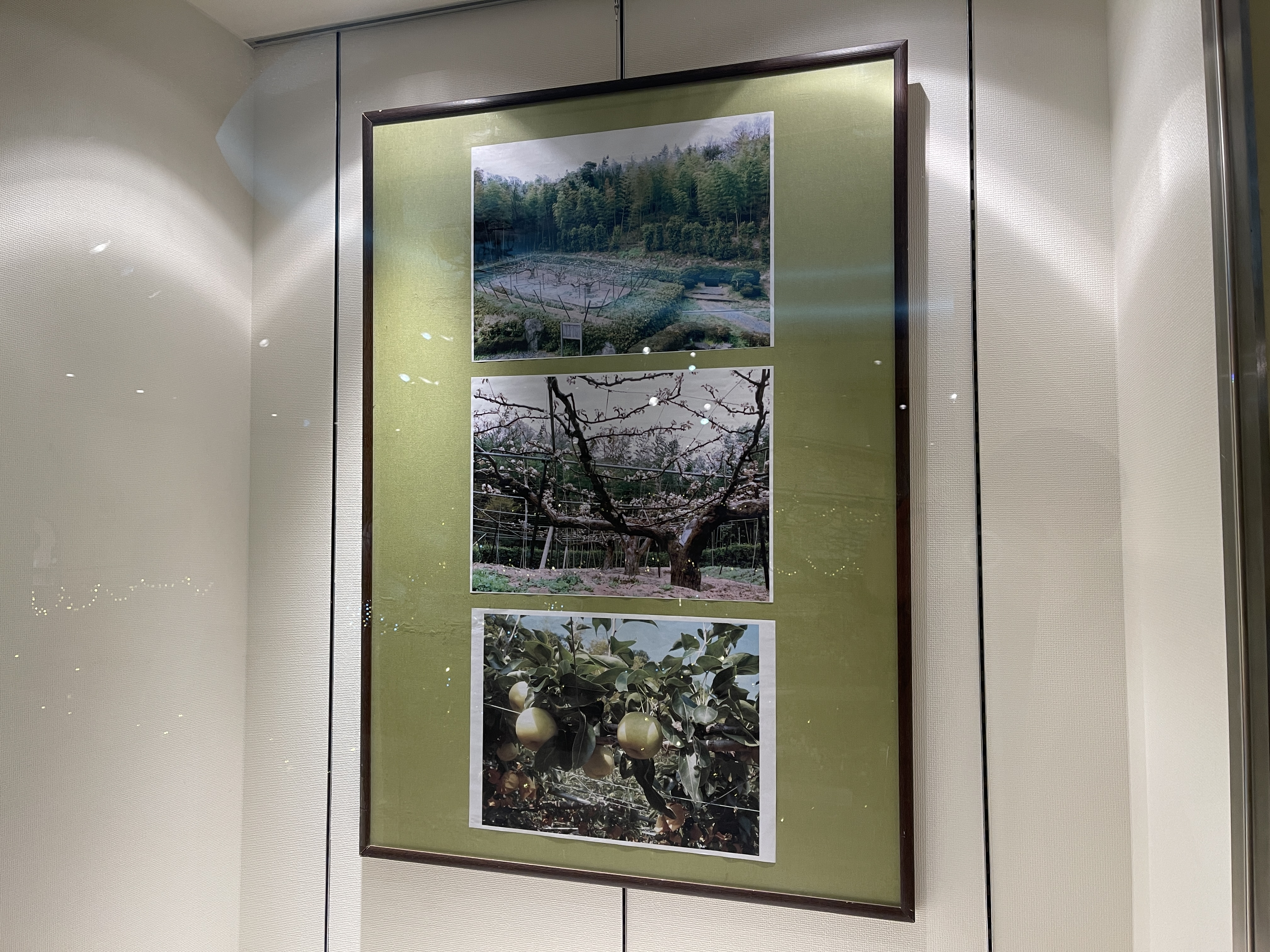 톳토리현에 처음 심었던 20세기 배 중 지금까지 현존하는 나무 사진이 걸려 있습니다.