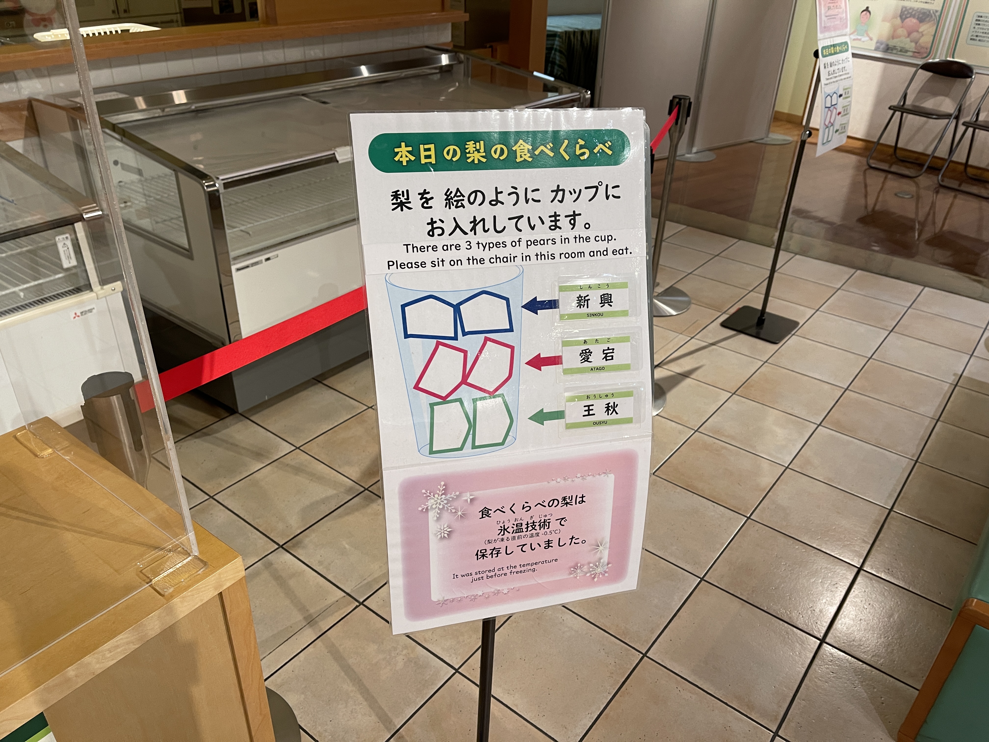 한국 전시실에서 나오니 배 시식 코너가 나옵니다.