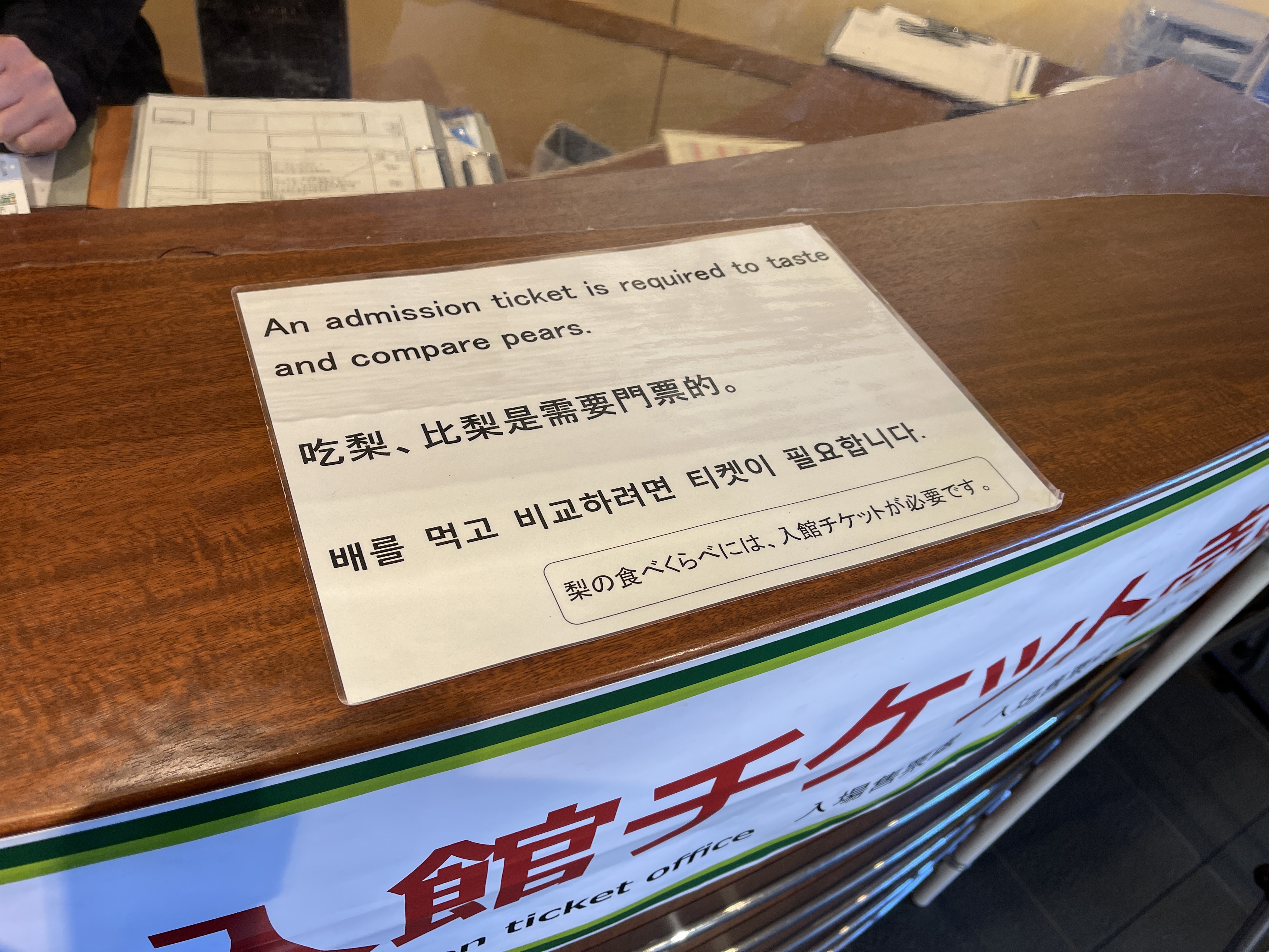 안에서 배를 시식하려면 표를 보여줘야 한다고 하니