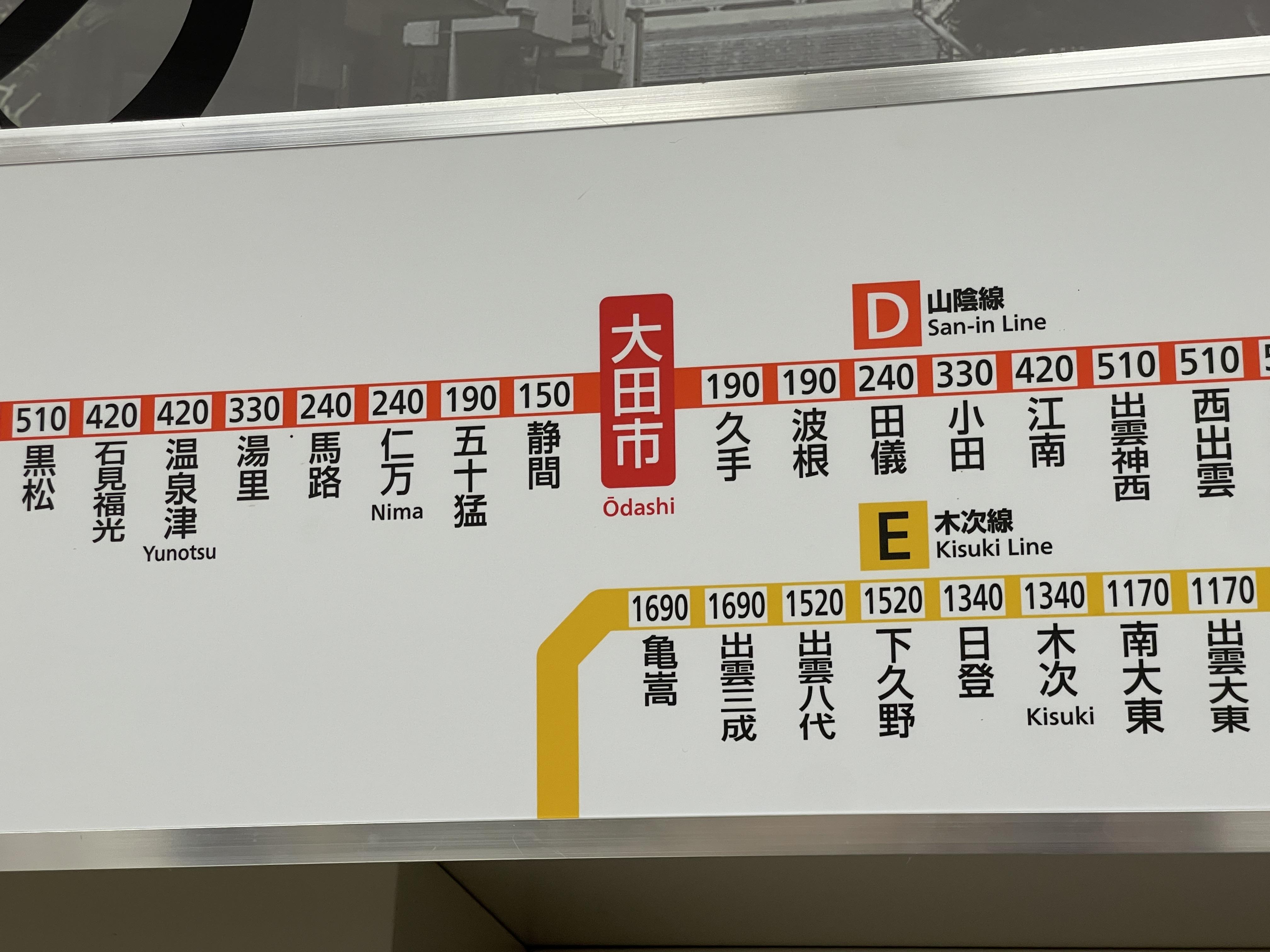 직선거리로 따지면 이와미긴잔에서 가장 가까운 역이 니마역이라서