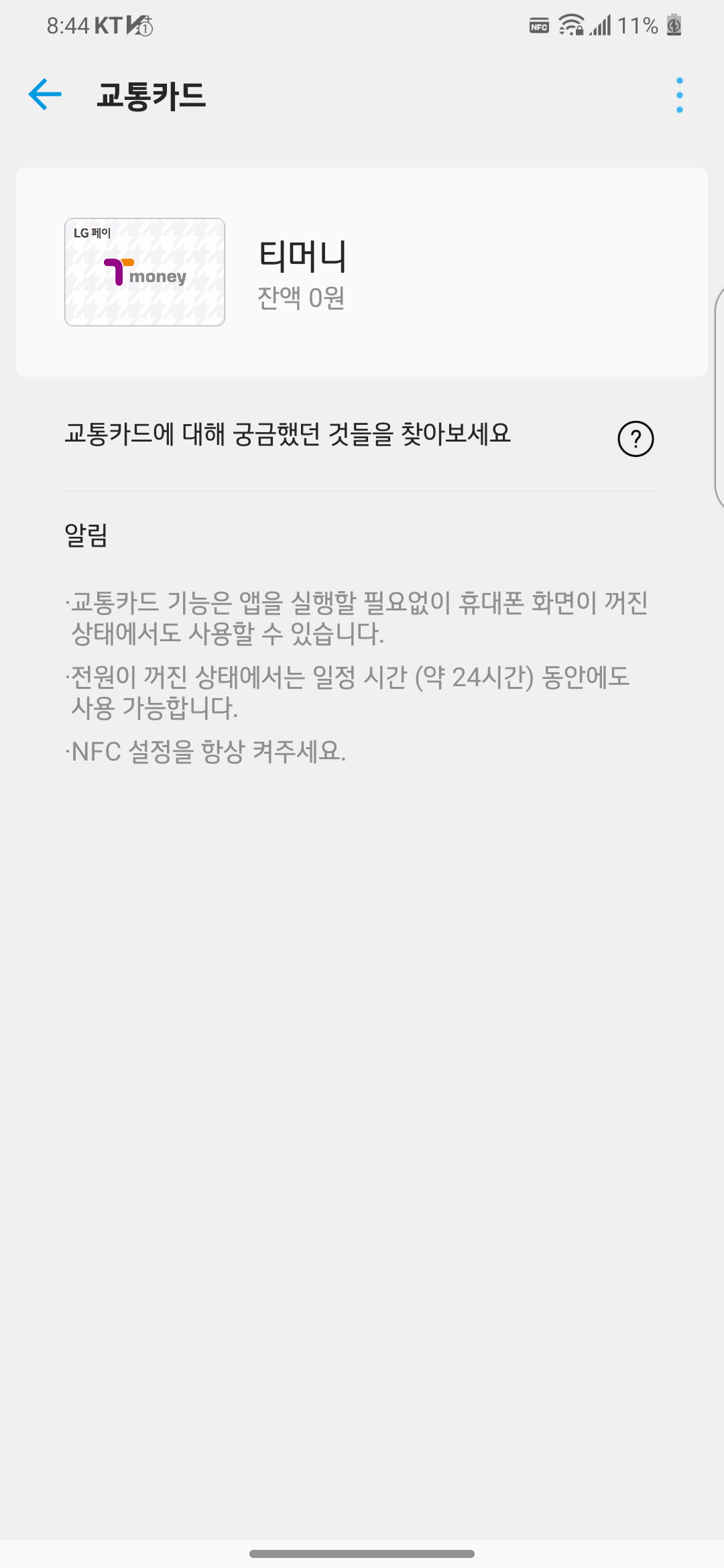 교통카드 수집가답게 모바일 교통카드 스크린샷을 남겨놓자 해서 오랜만에 LG V50S 전원을 켰습니다.
