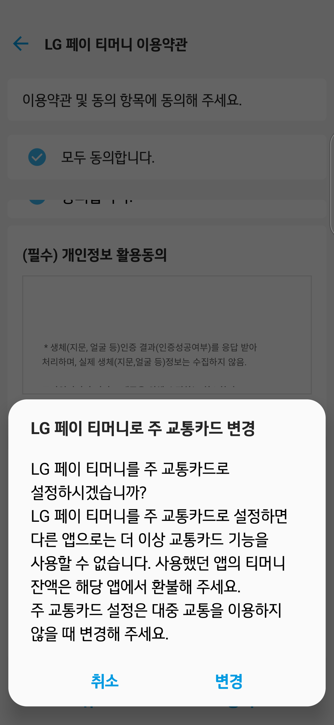 LG페이 모바일 교통카드 발급 과정을 열심히 캡처했습니다.
