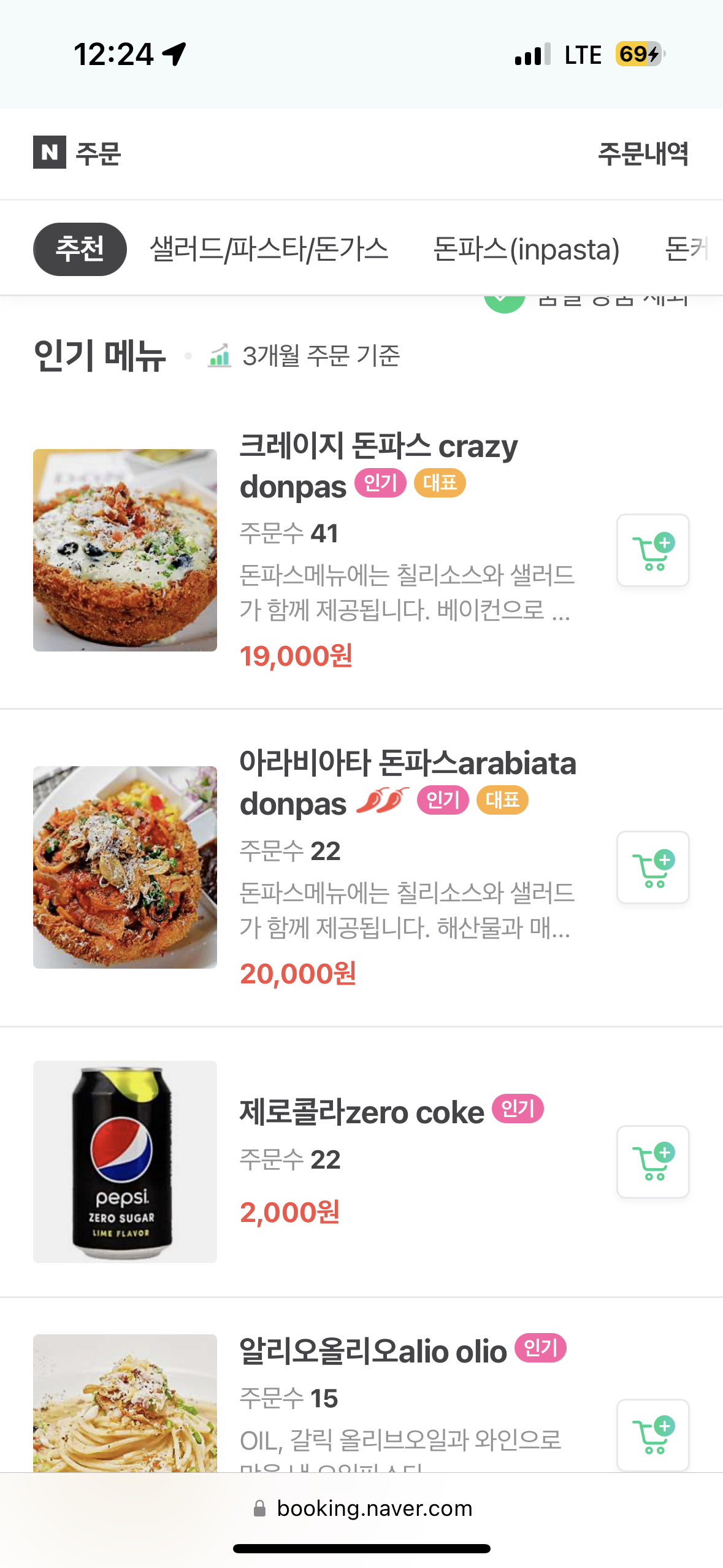 네이버에서 아라비아타 돈파스를 주문.