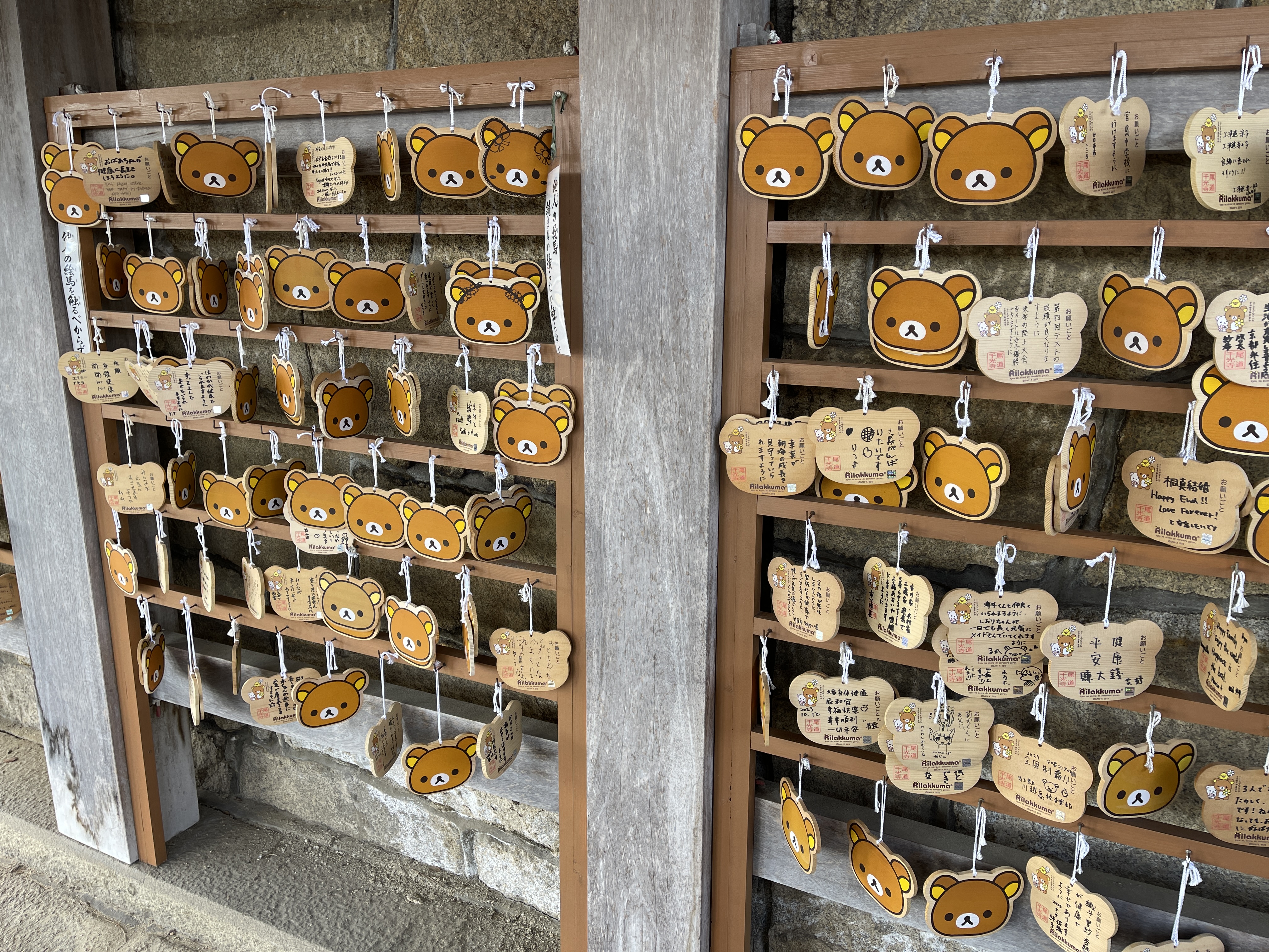 리락쿠마 에마와 함께 있는 동자상 뒤로