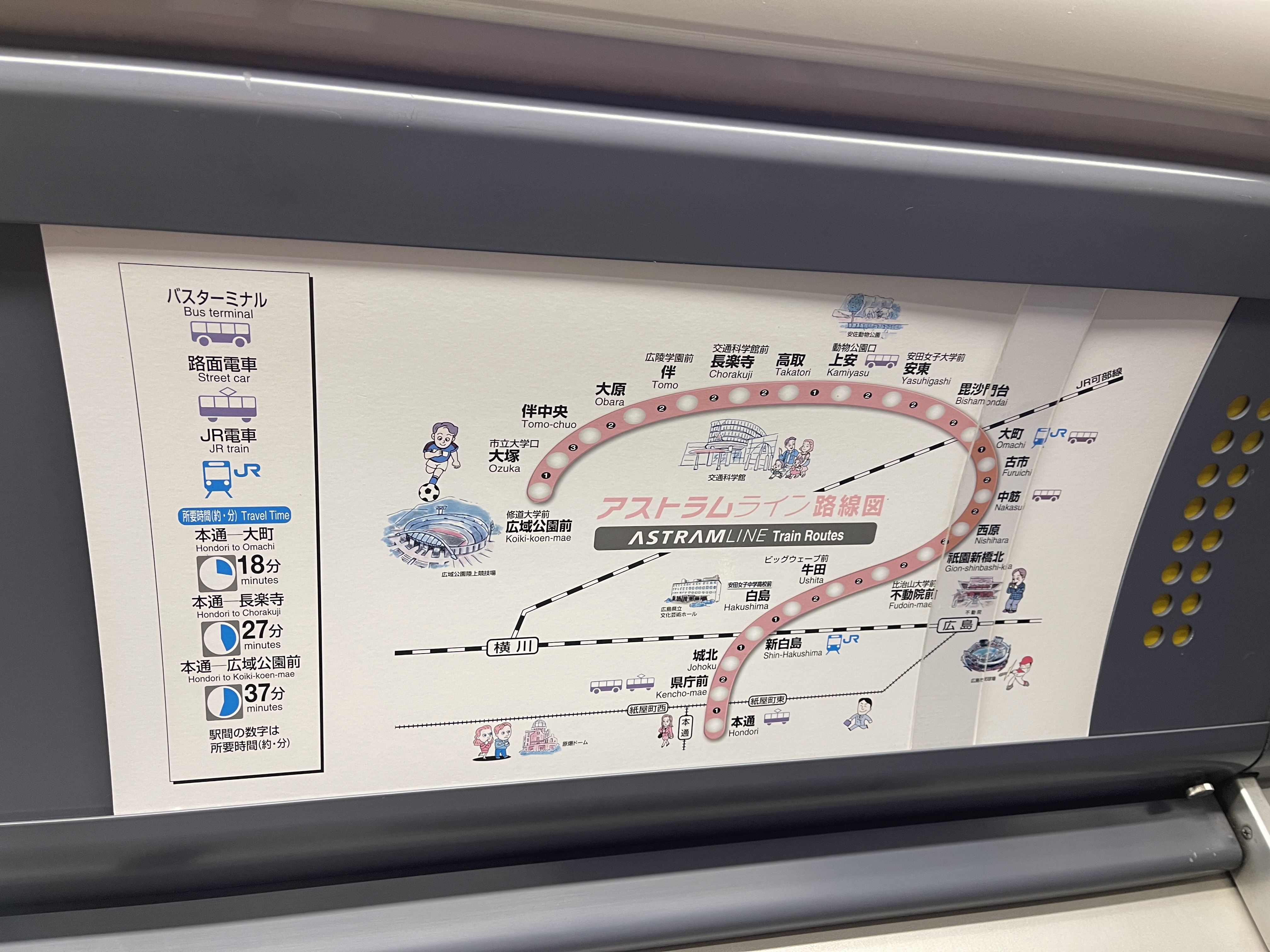 전철을 타고 히로시마역까지 가자니