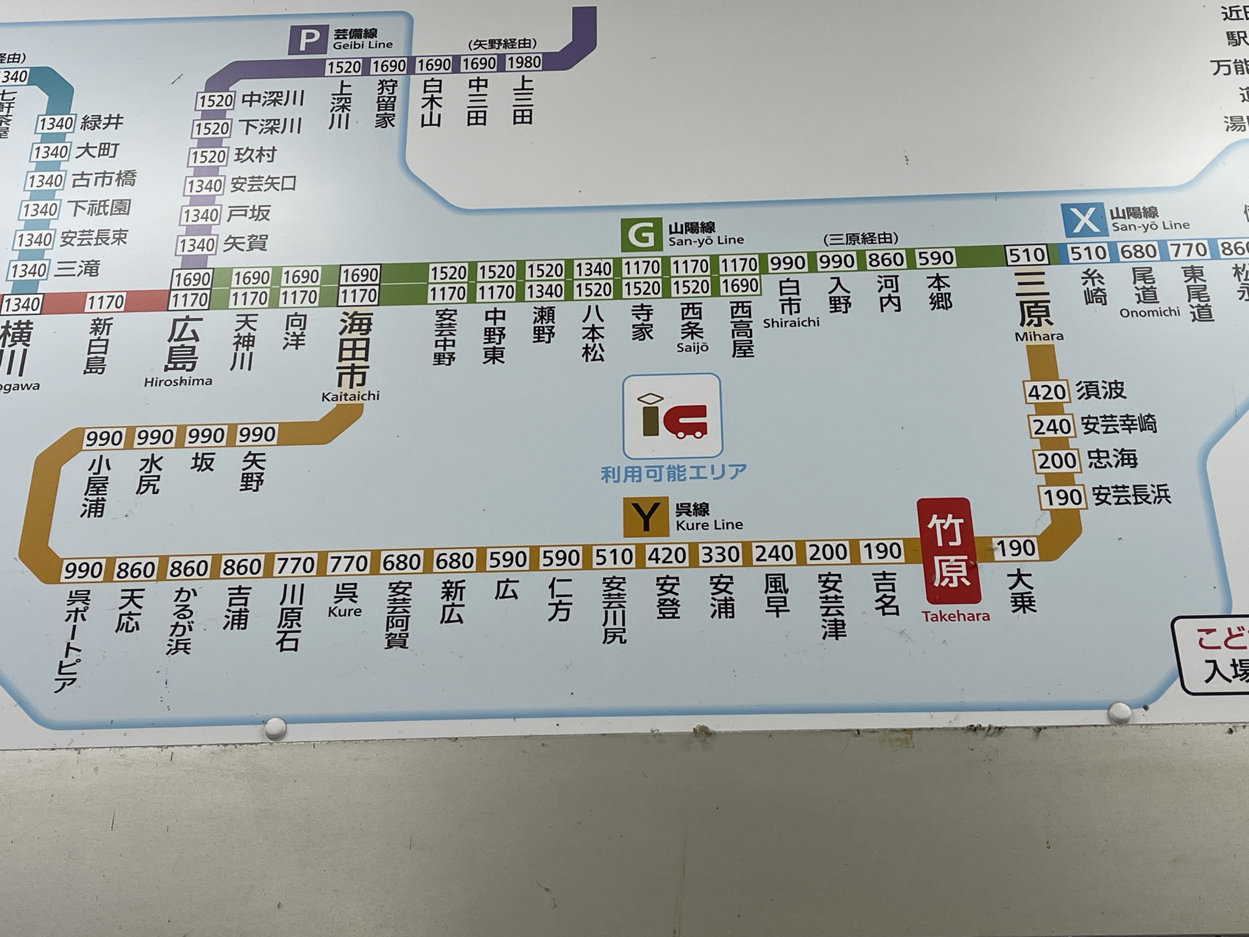 타케하라역에서 히로시마로 가는 방법은 2가지가 있는데요.