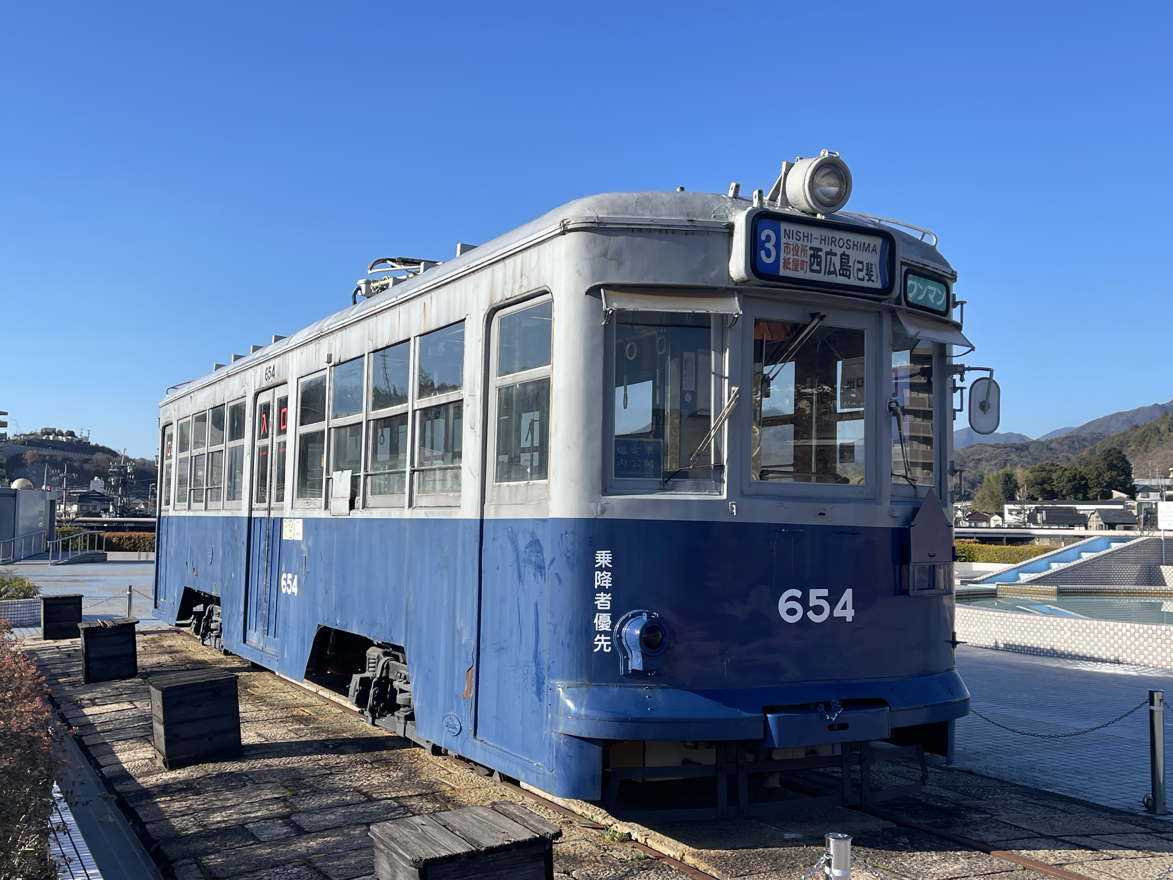 실물 기차는 딱 1대, 그것도 야외 광장에 방치된 듯이 놓인 히로시마 전철 650형 노면전차가 전부네요.
