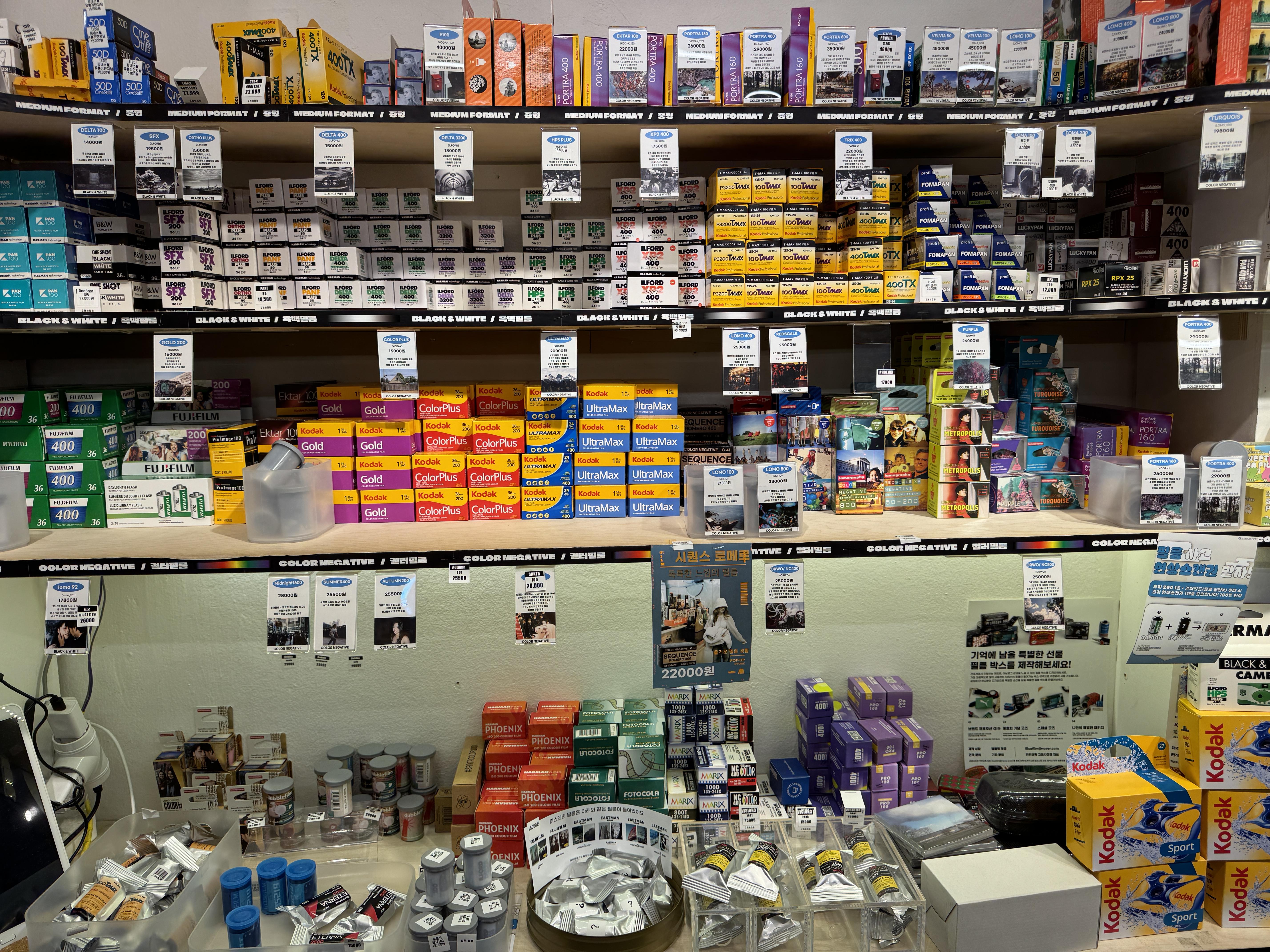 필름 현상관답게 필름도 여럿 판매 중인데