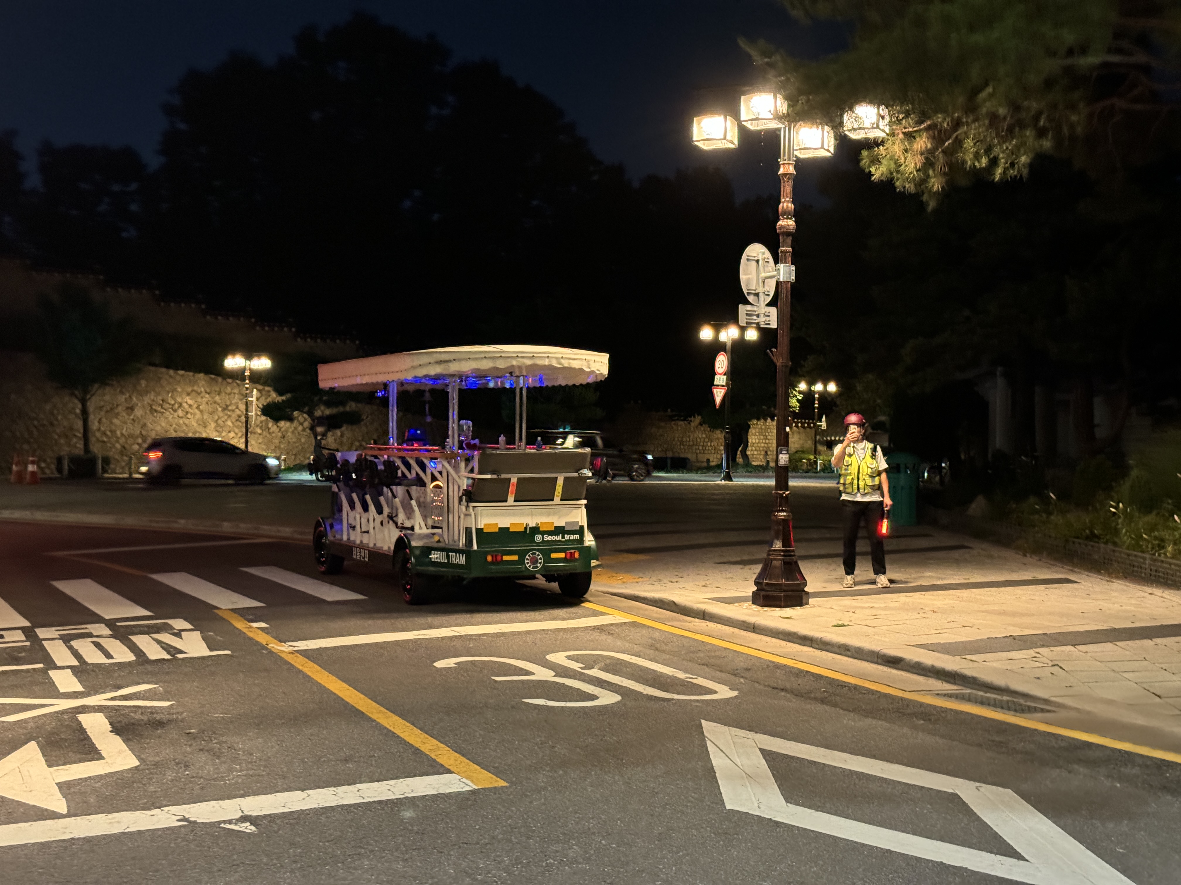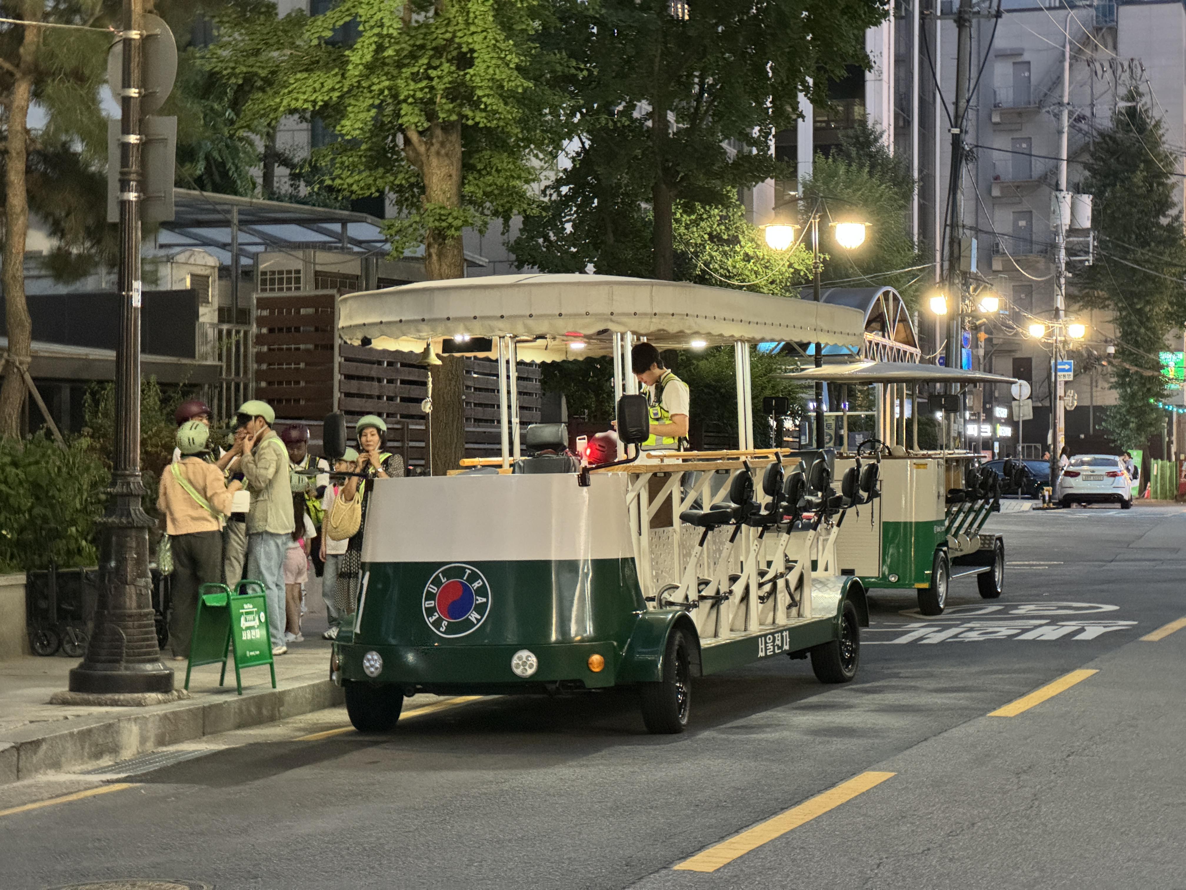 오래전 경성 일대를 운행하던 전차를 닮은 전기자동차를 타며