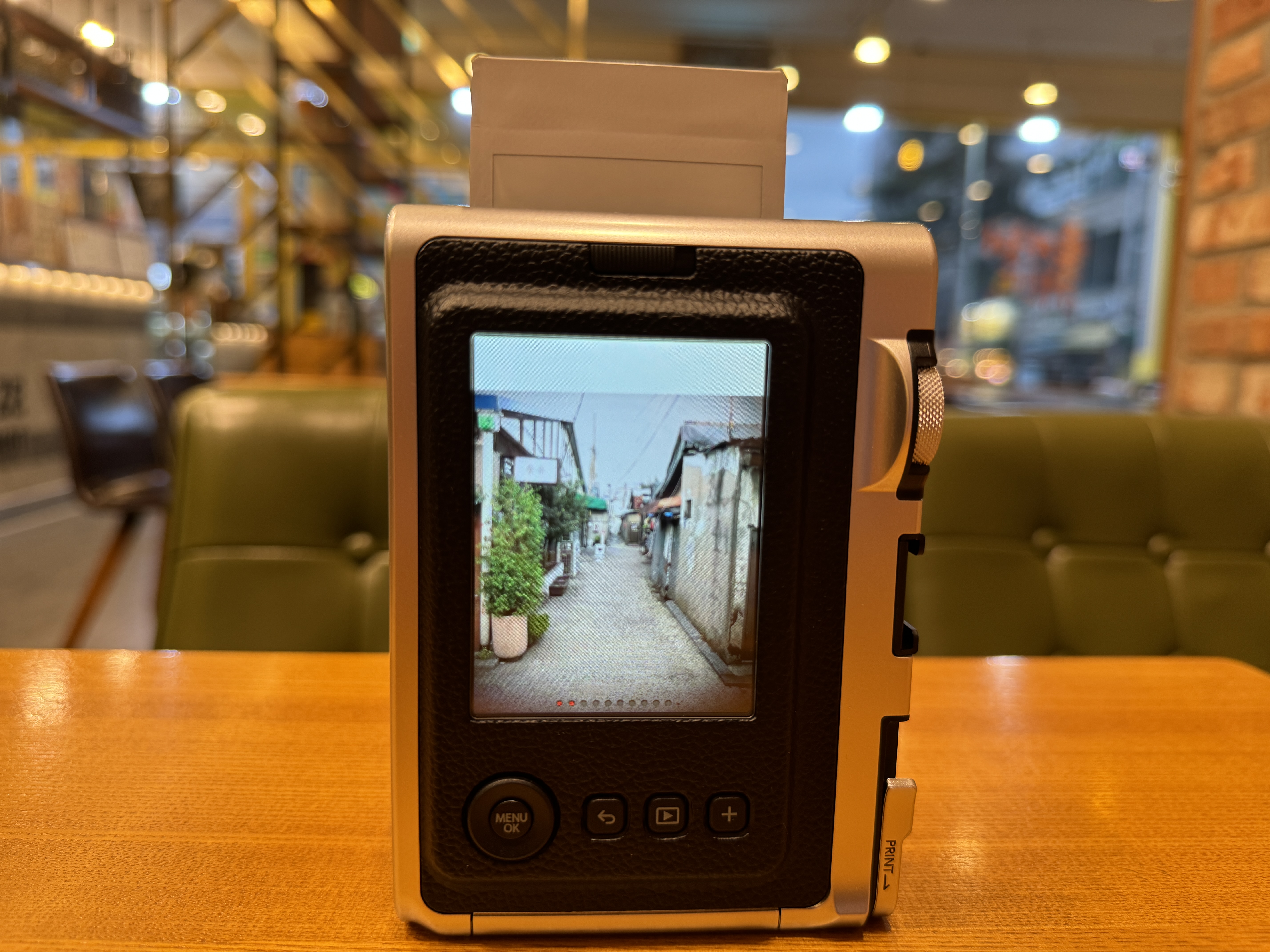 카메라 오른쪽에 있는 PRINT 레버를 당기면 사진이 인화되는데