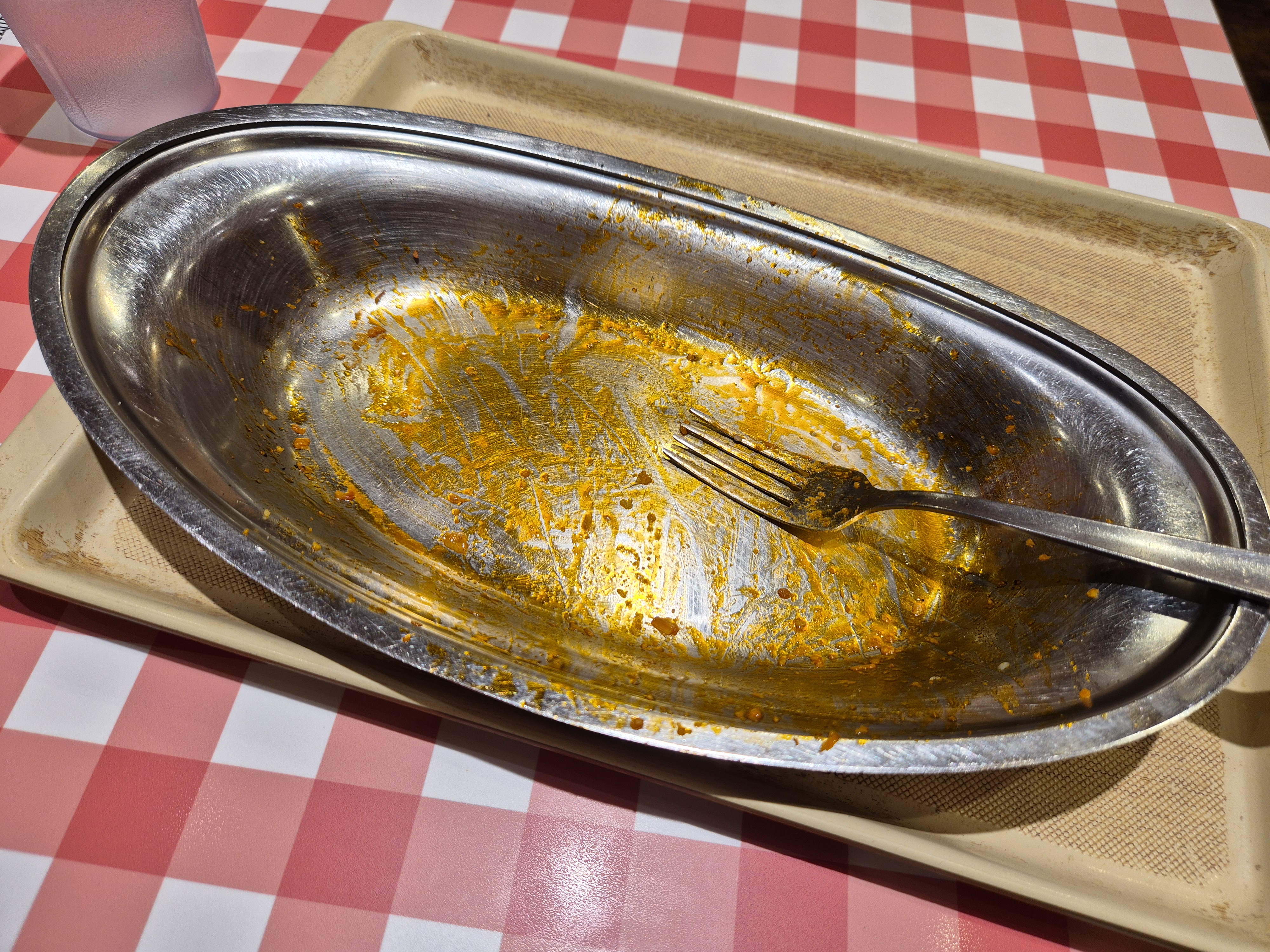 어떻게든 그릇을 싹 비우고 자리에서 일어난 뒤