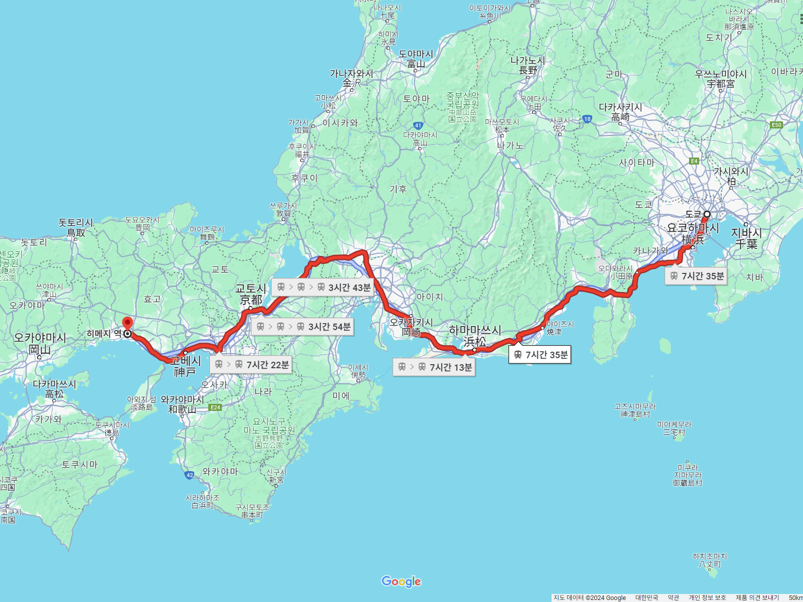 도쿄에서 히메지까지 승차권만 10,010엔에 특급권과 침대권을 합친 가격이 17,280엔