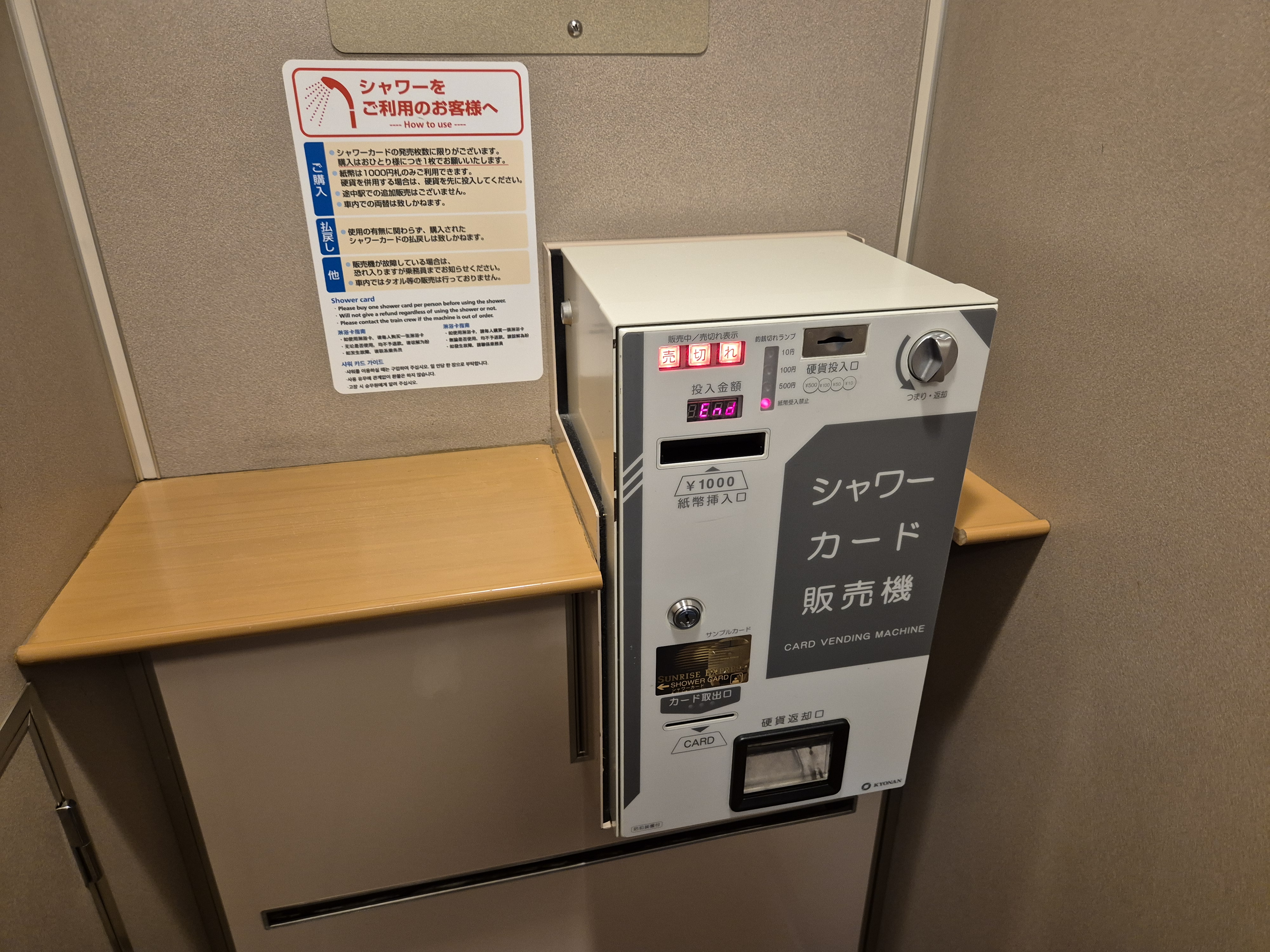 3~4호차/10~11호차 사이에 있는 샤워카드 자판기에서 카드를 사는 전쟁에 참여하지 않아도 되고