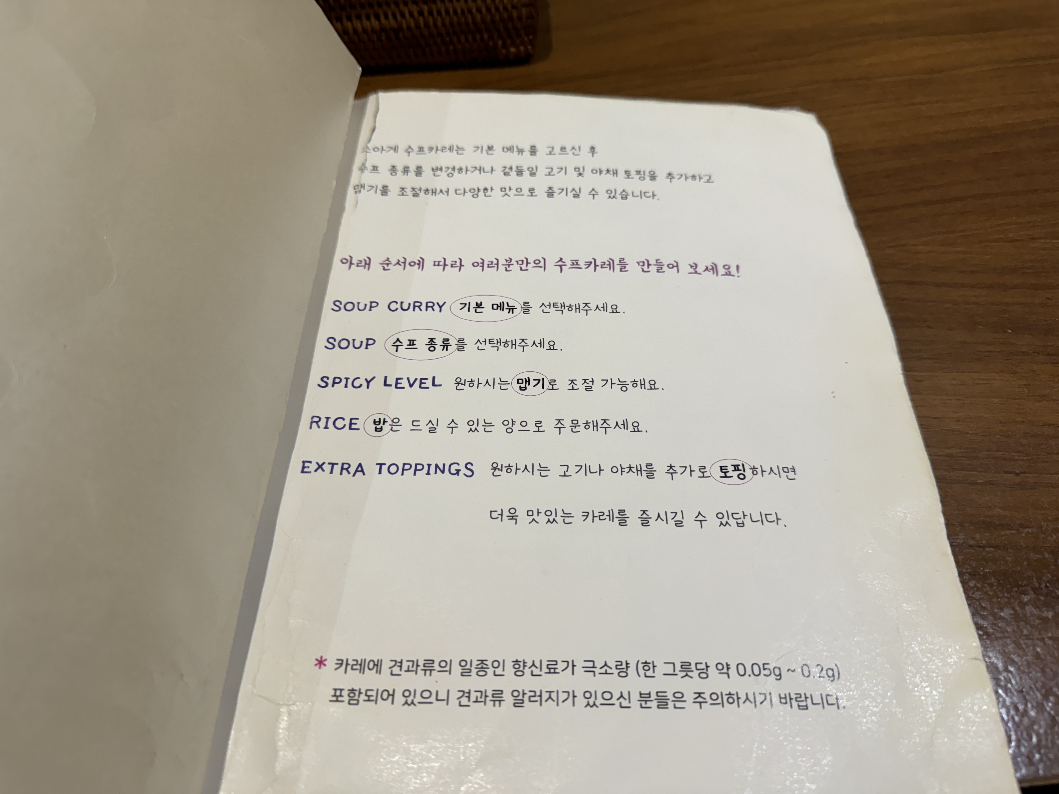홀이 꽉 차 계단에서 기다리는 동안 메뉴를 고르라고 메뉴판을 받았는데