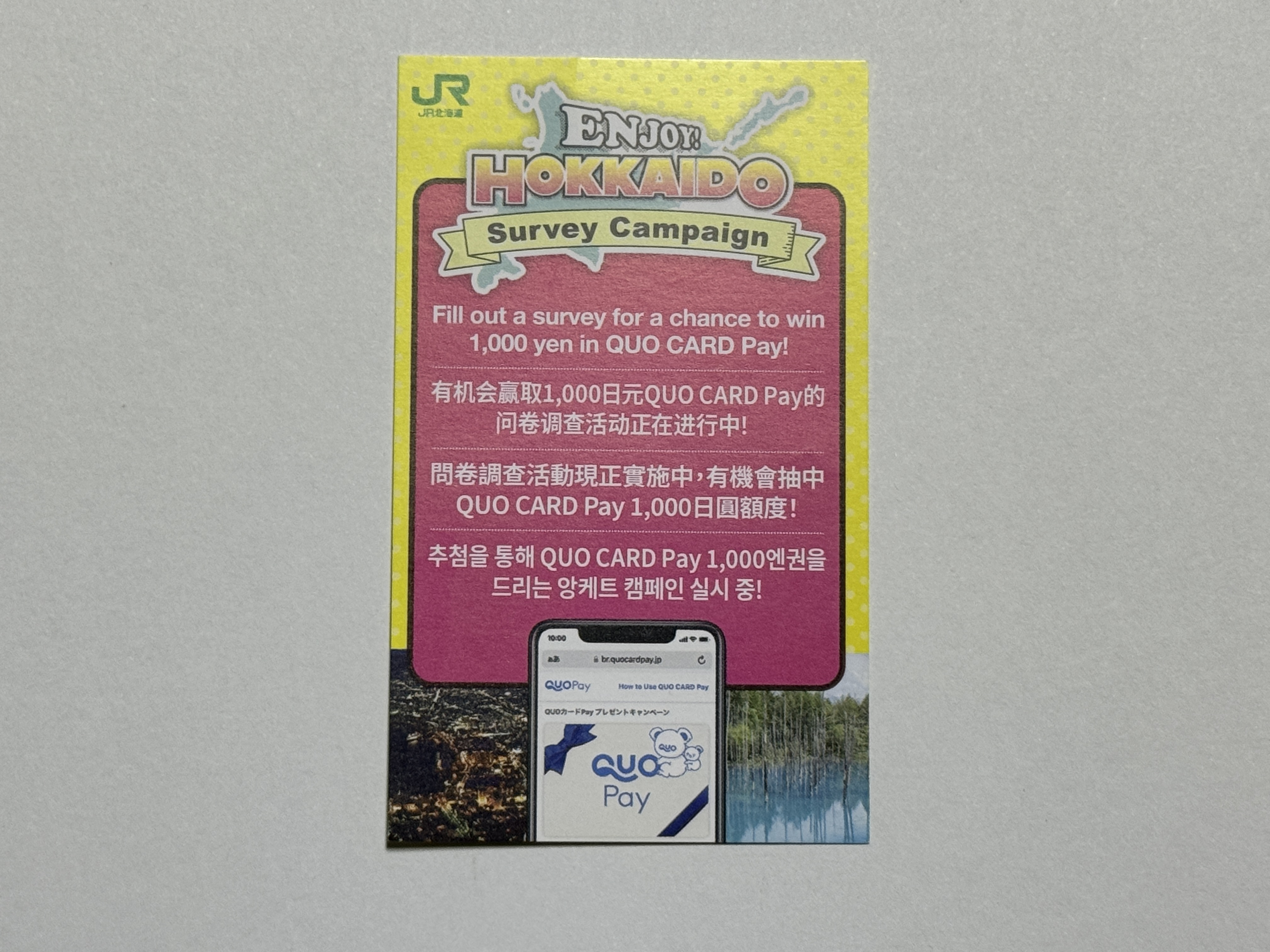추첨이라지만 아무리 봐도 모두에게 다 주는 듯한 QUO Pay 설문조사 캠페인 안내 카드를 받고