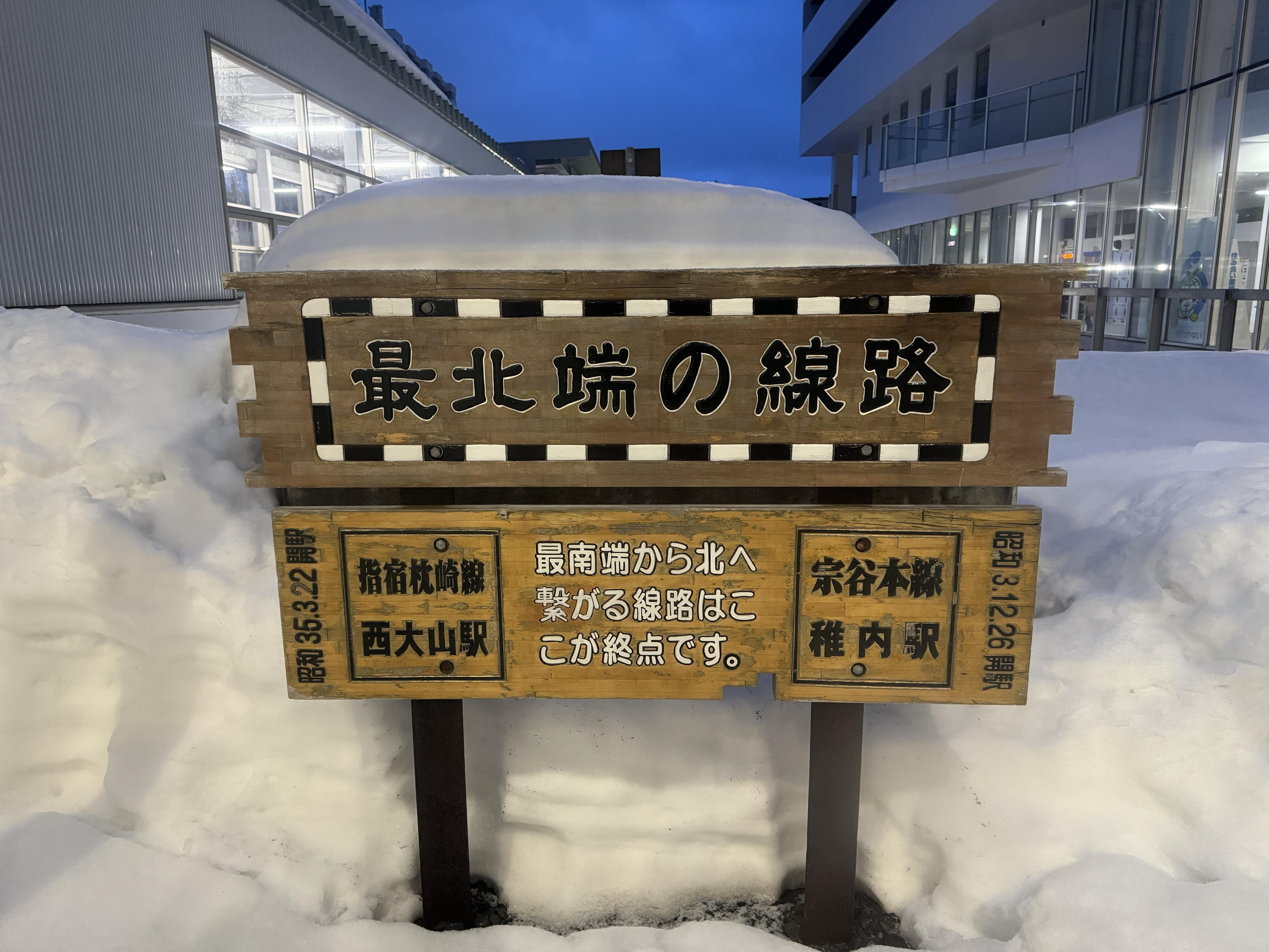 일본 최북단 역을 나타내는 상징물도 찍고