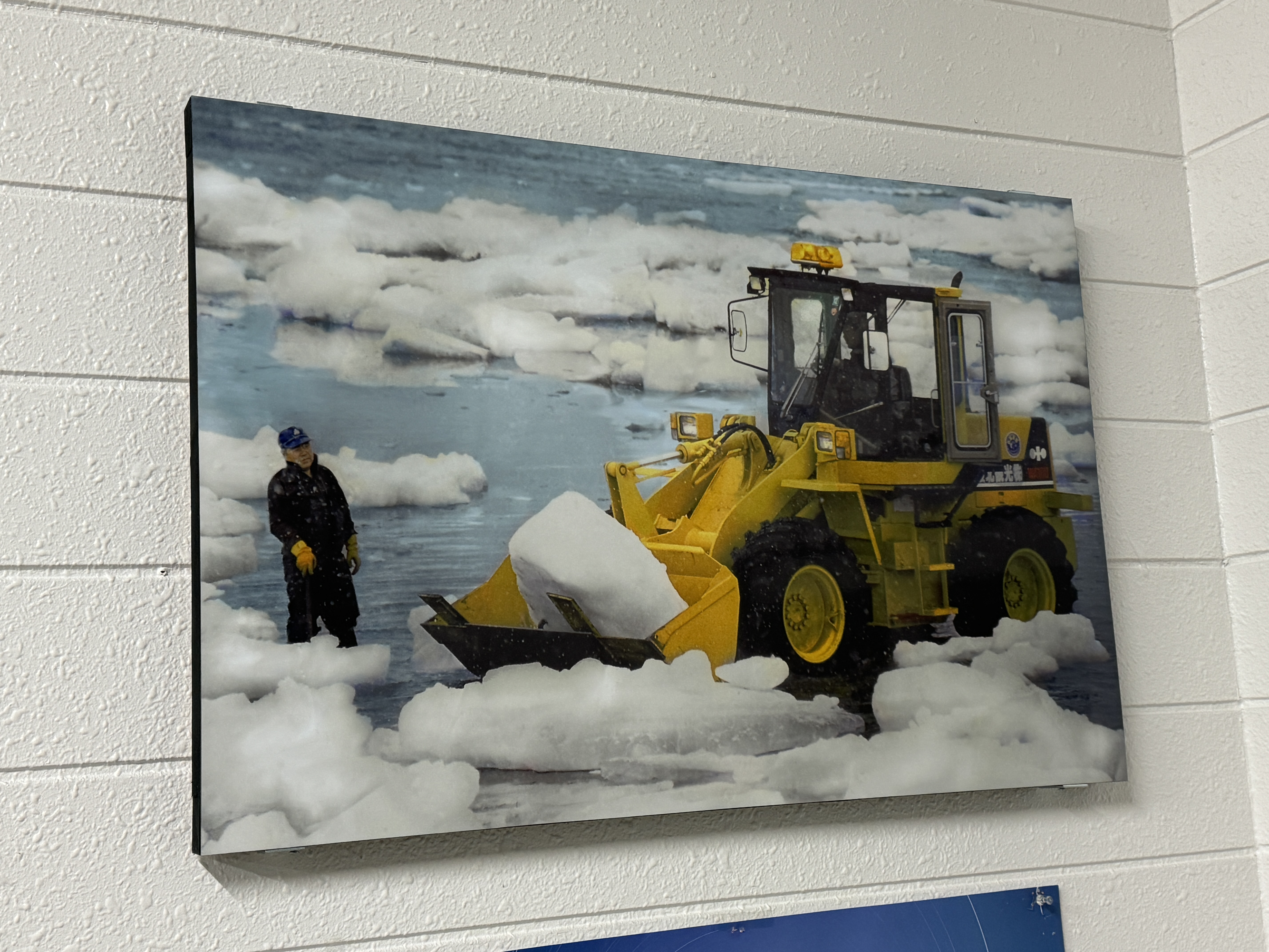 바닷가로 떠내려온 유빙을 퍼내는 불도저 사진을 보고