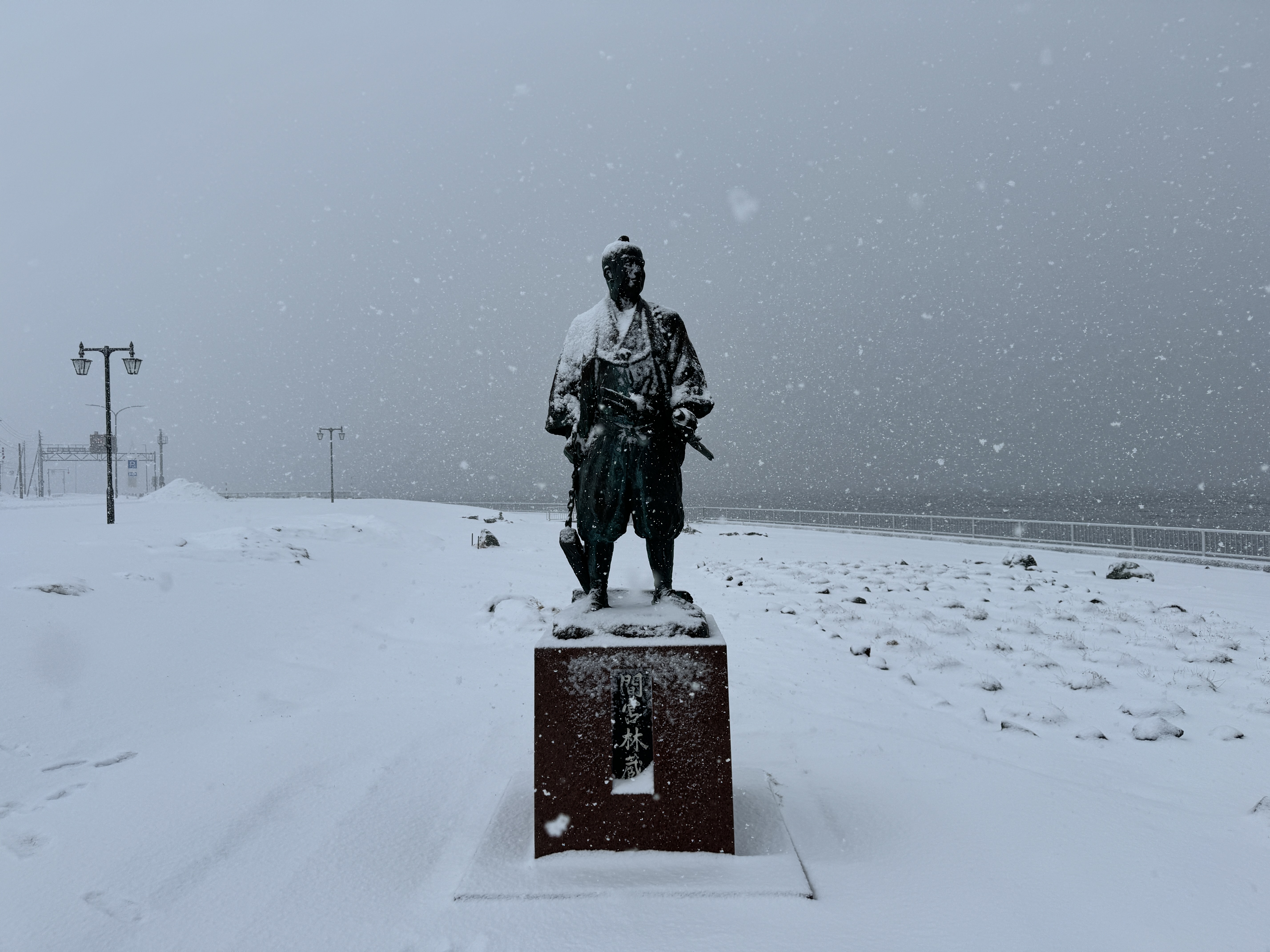 사할린이 육지와 연결되지 않은 섬이라는 것을 밝혀낸 마미야 린죠(間宮林蔵)의 동상을 지나