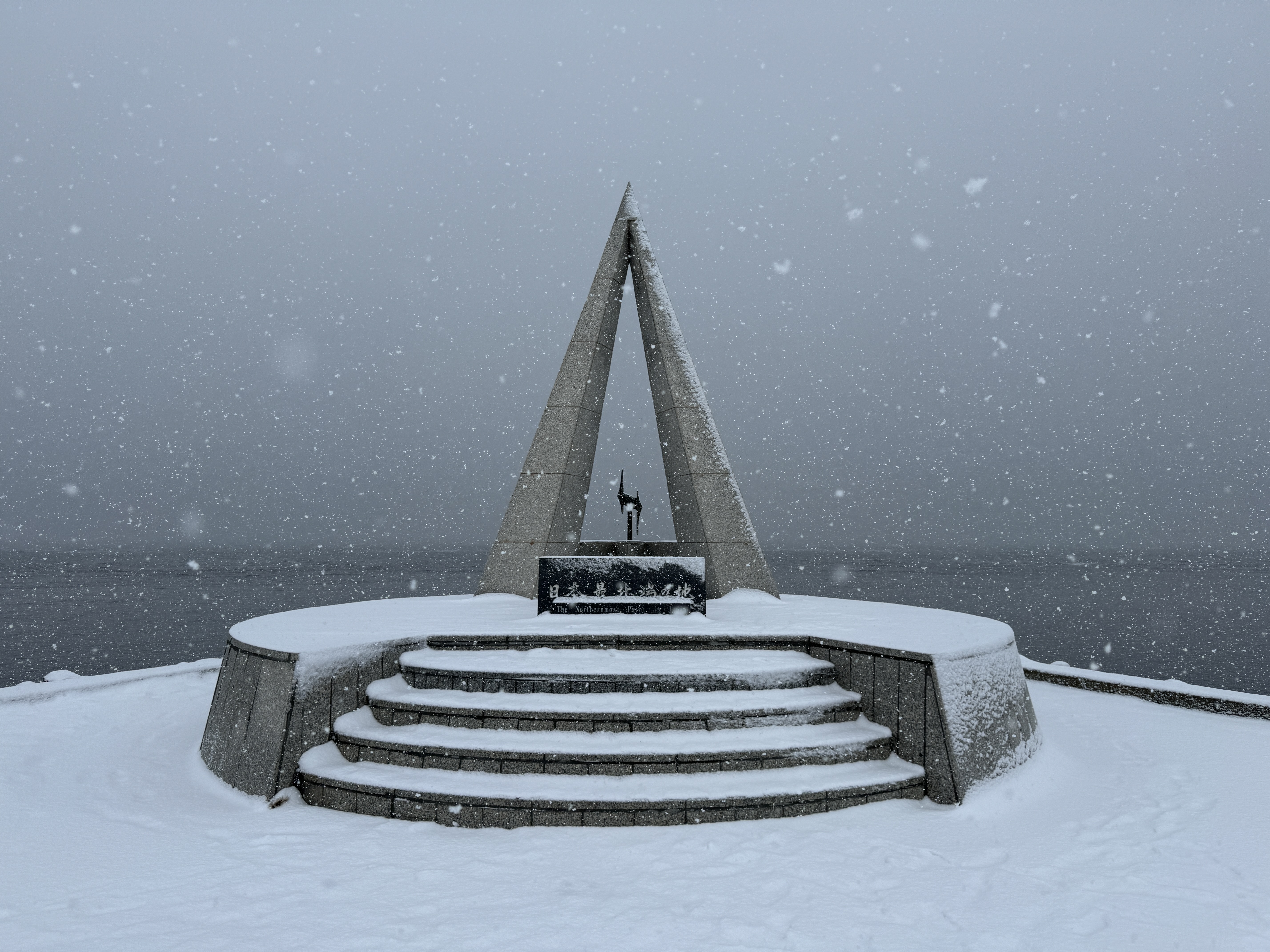 일본 최북단을 나타내는 땅의 비를 찍고