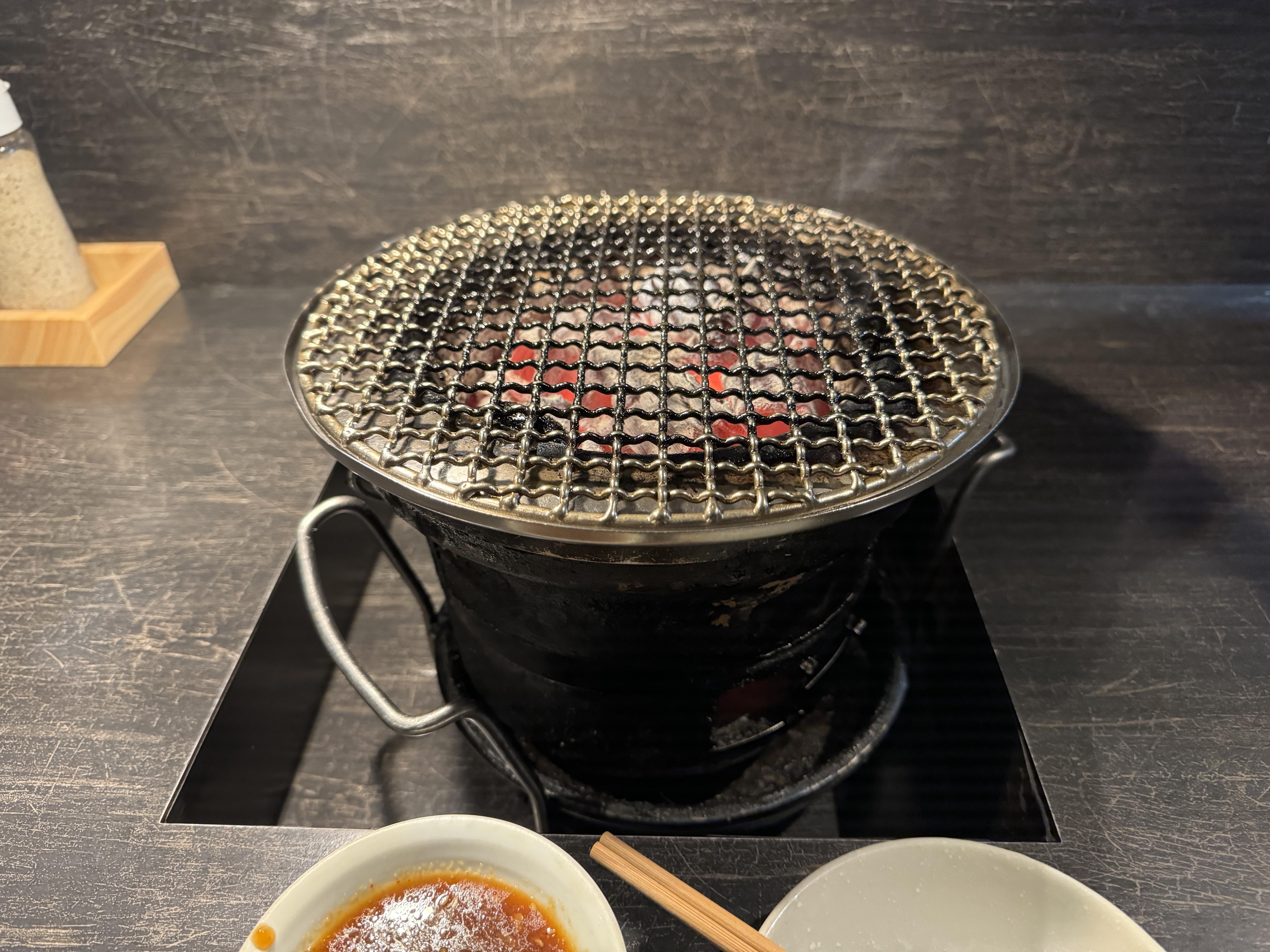 불판 앞에 자리를 잡고