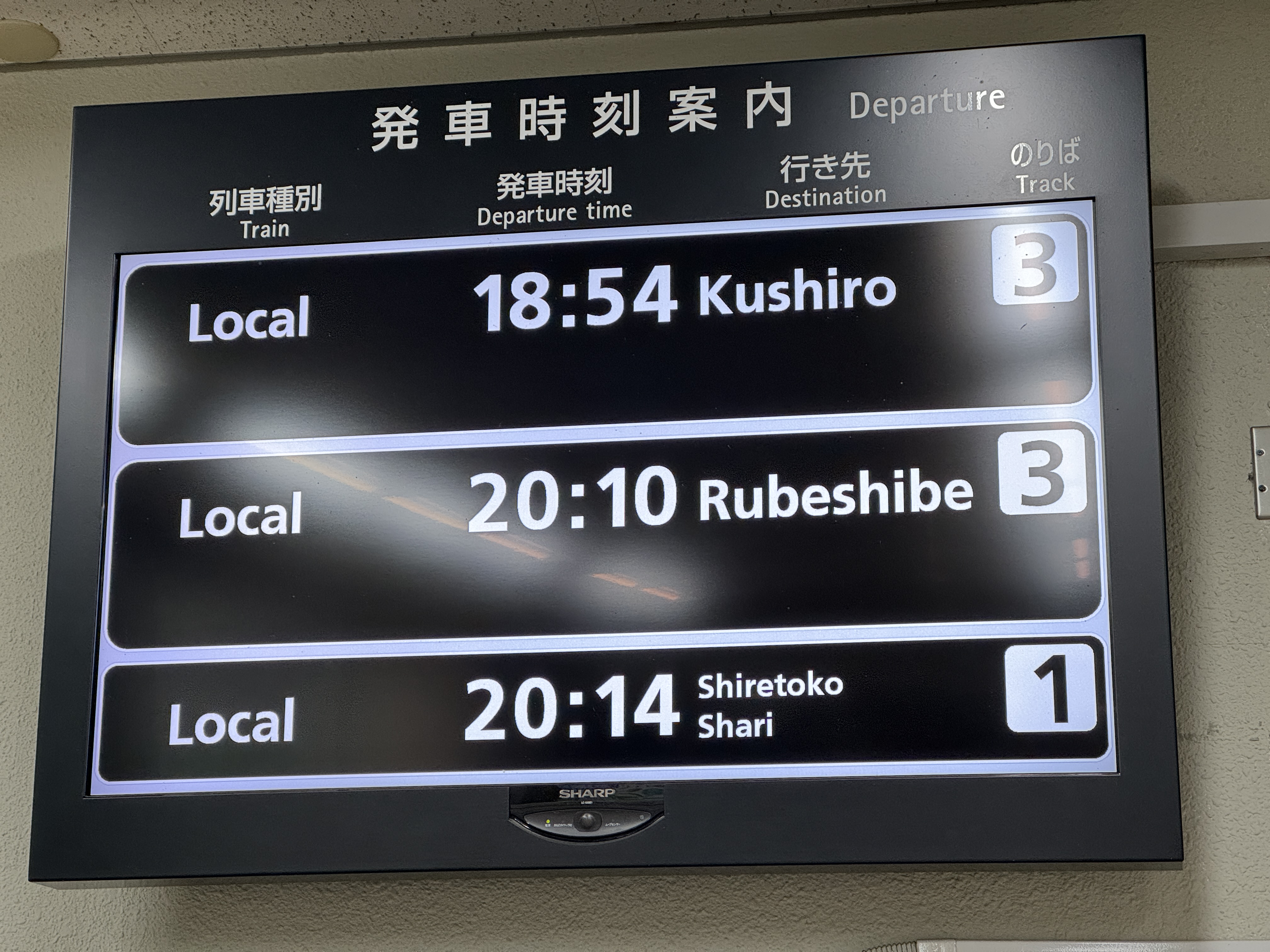 쿠시로행 열차는 18시 54분이 막차일 정도로 상당히 이른데
