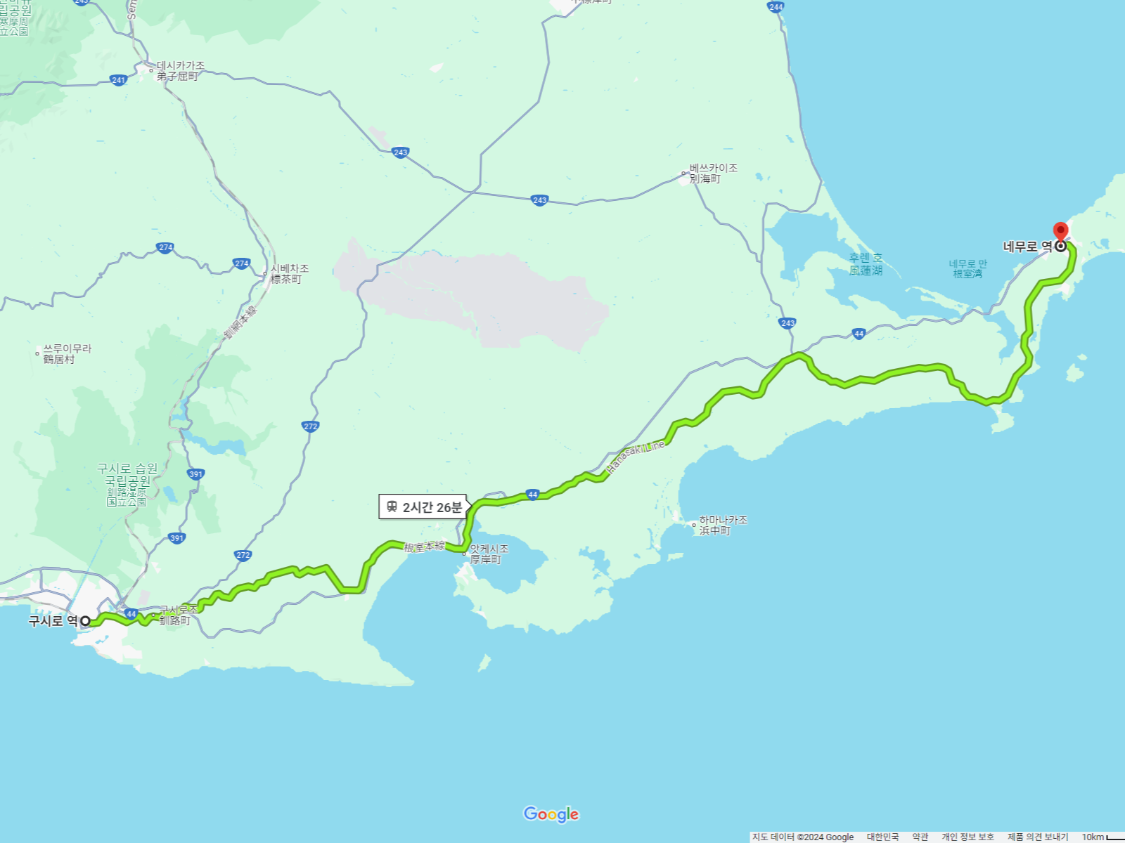 종점 네무로역에 도착했습니다.