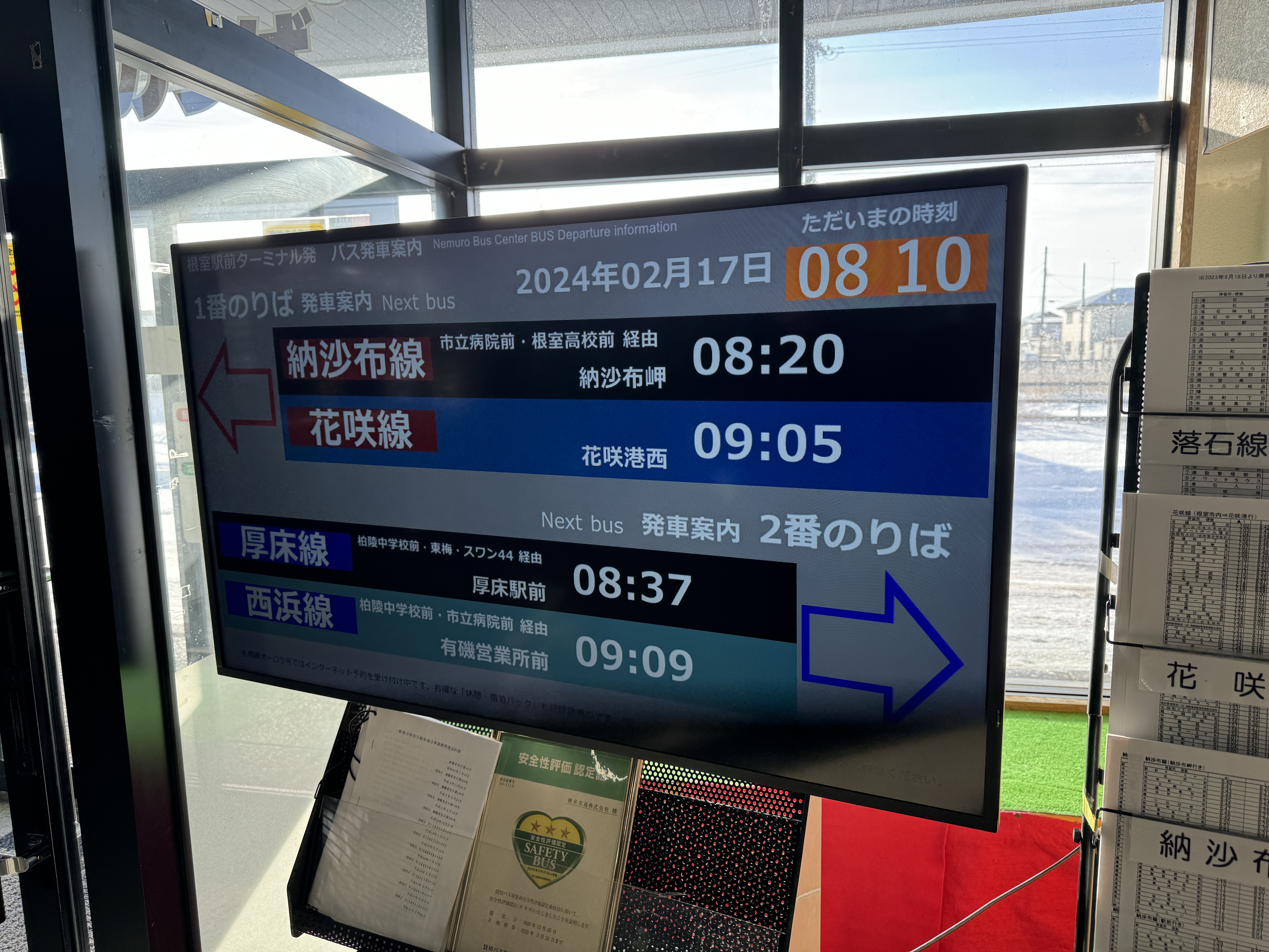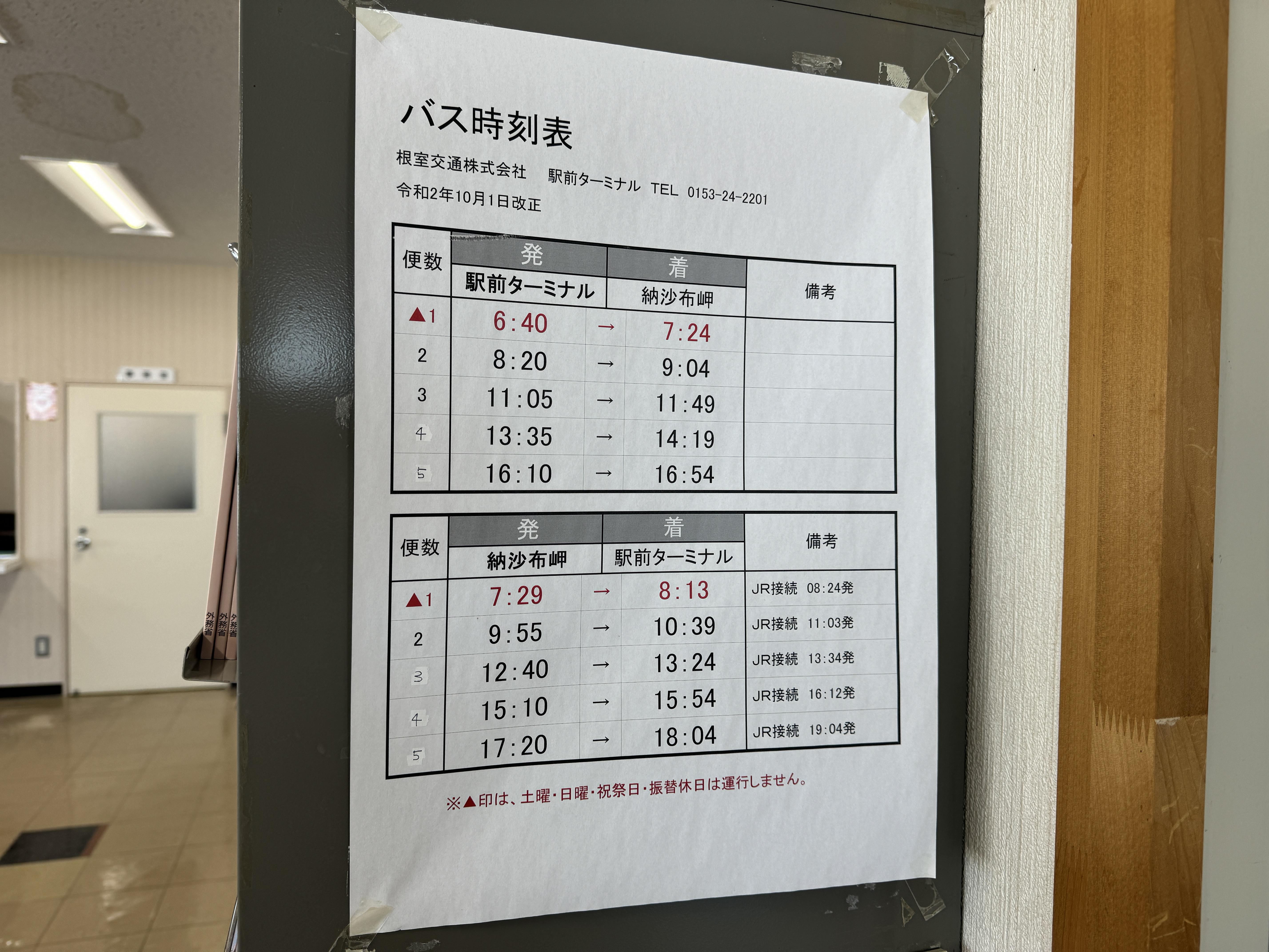 여기서 일본 최동단 노삿푸미사키로 가는 시내버스 노삿푸선(納沙布線)을 탈 수 있습니다.