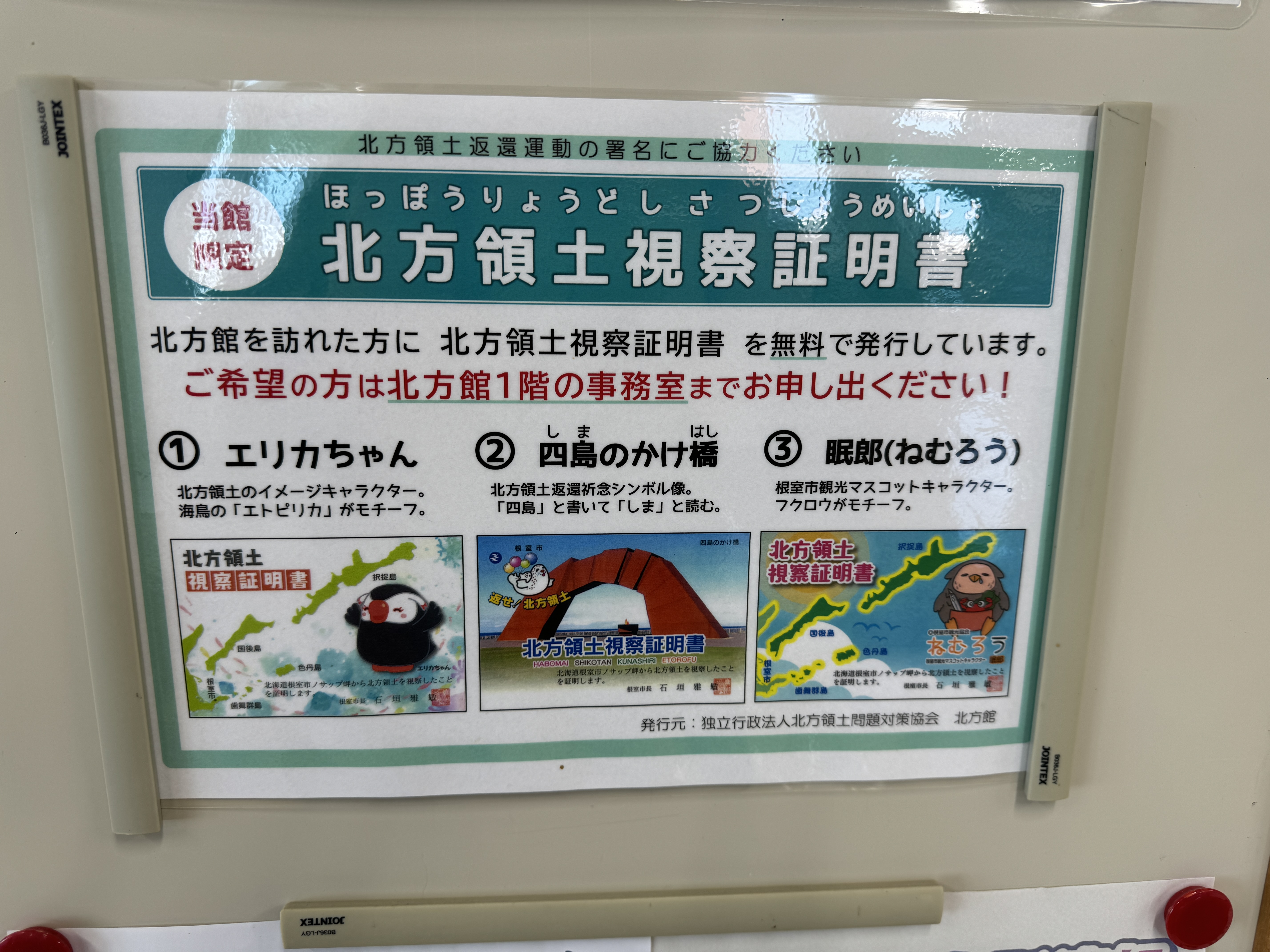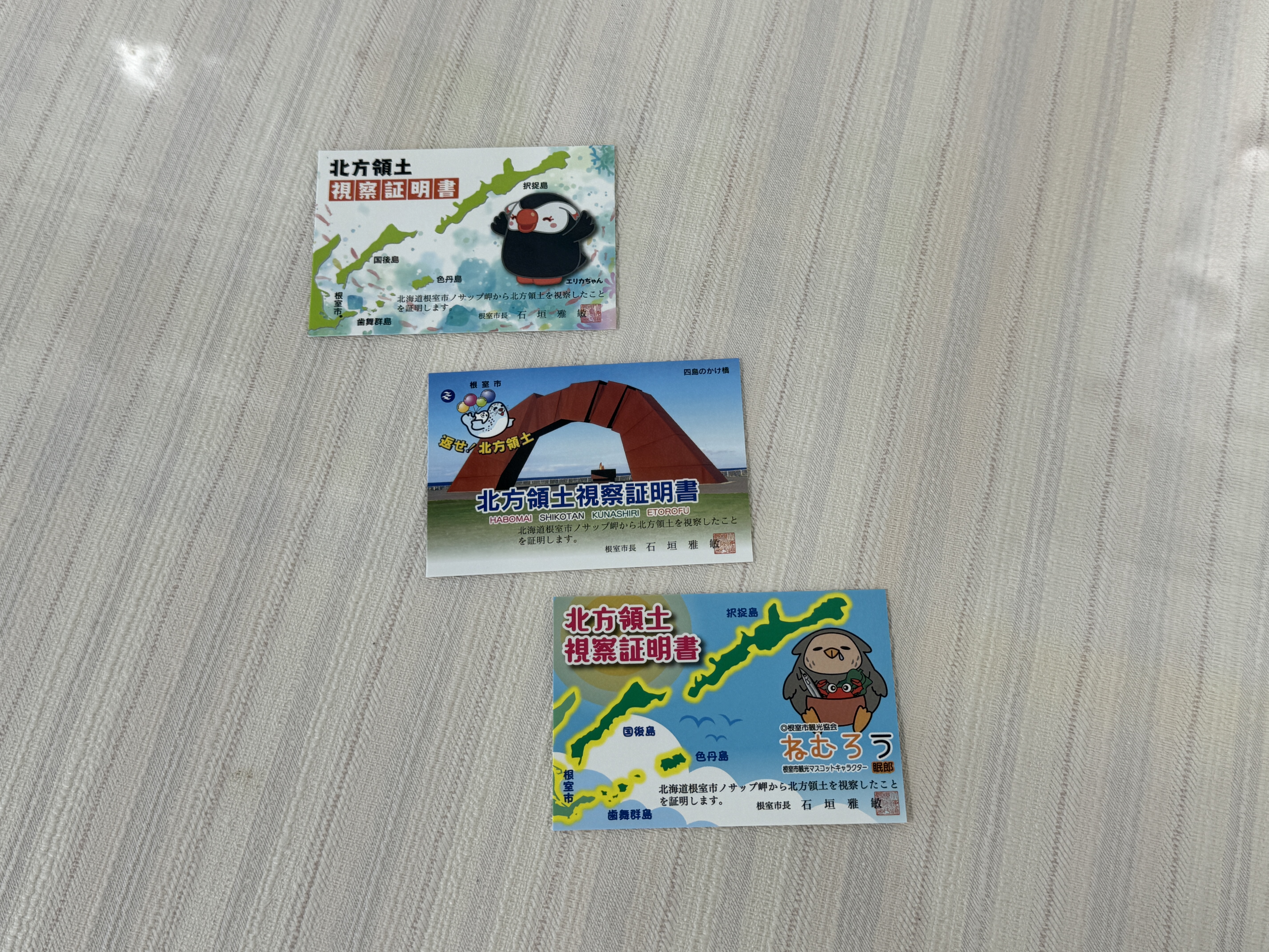 북방영토 시찰 증명서라는 다른 증명서입니다.