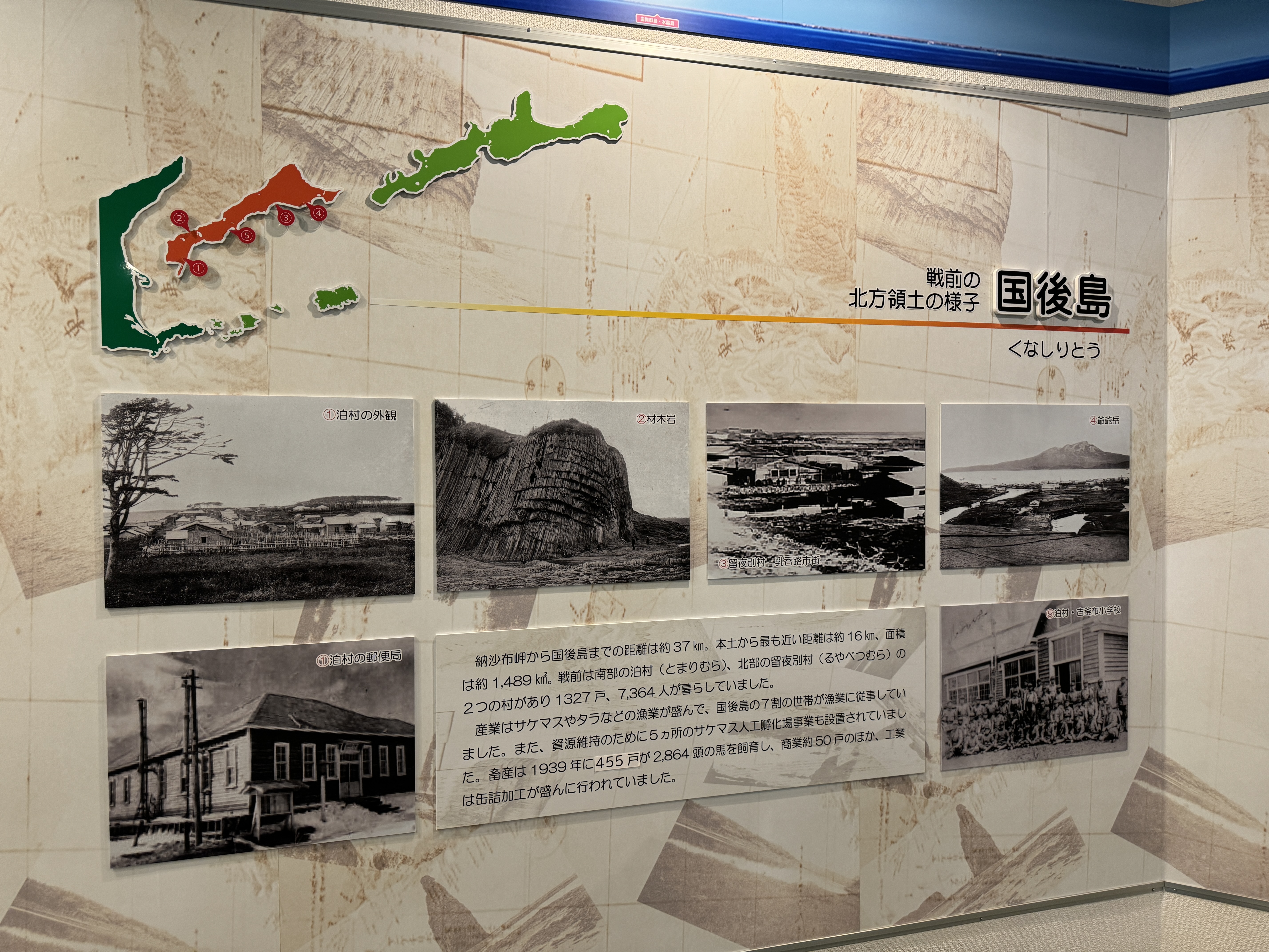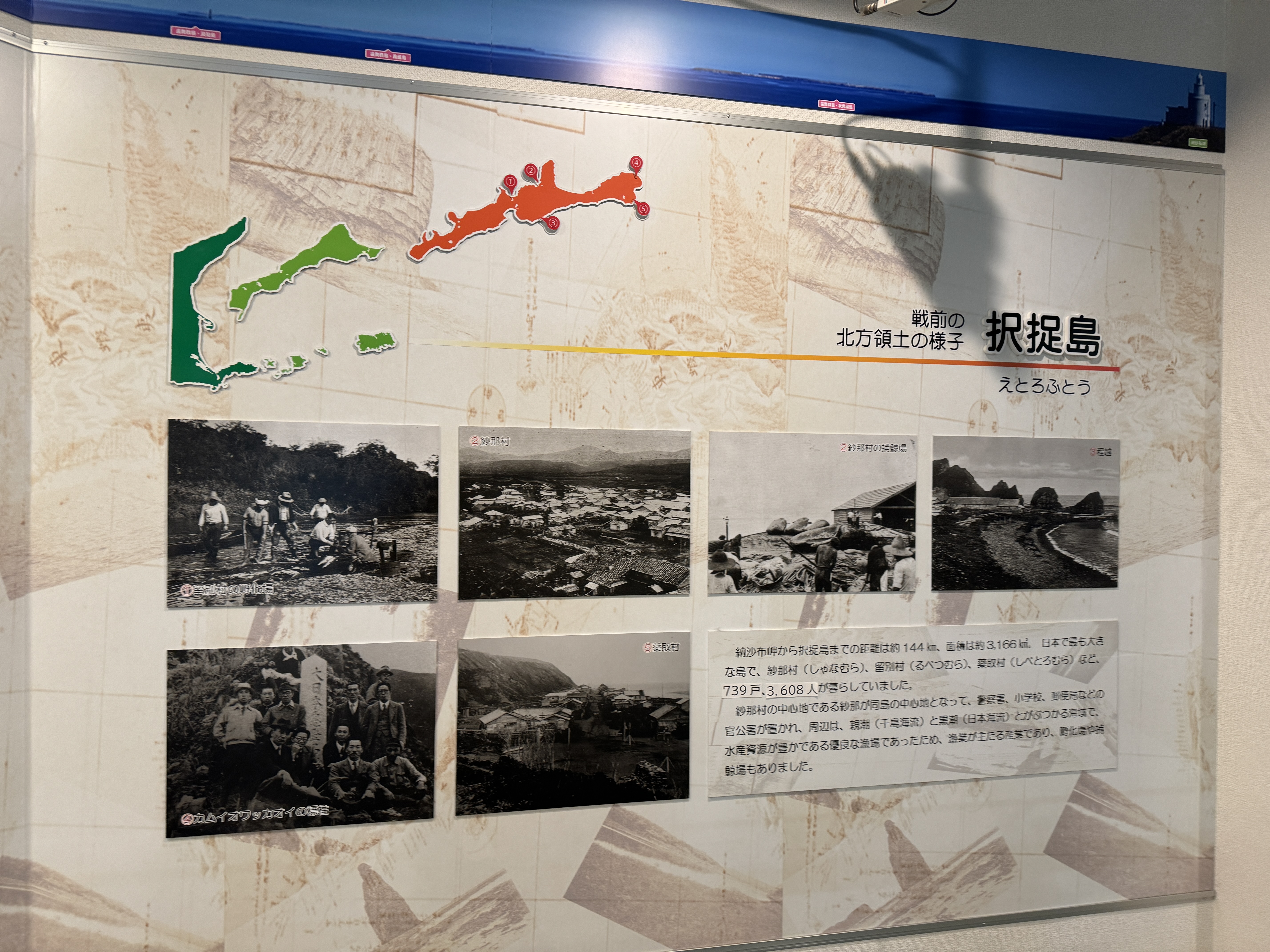 이투루프 섬 위로 쭉 이어져 캄차카 반도에 이르는 쿠릴 열도의 수많은 섬을 표현한 디오라마를 보고