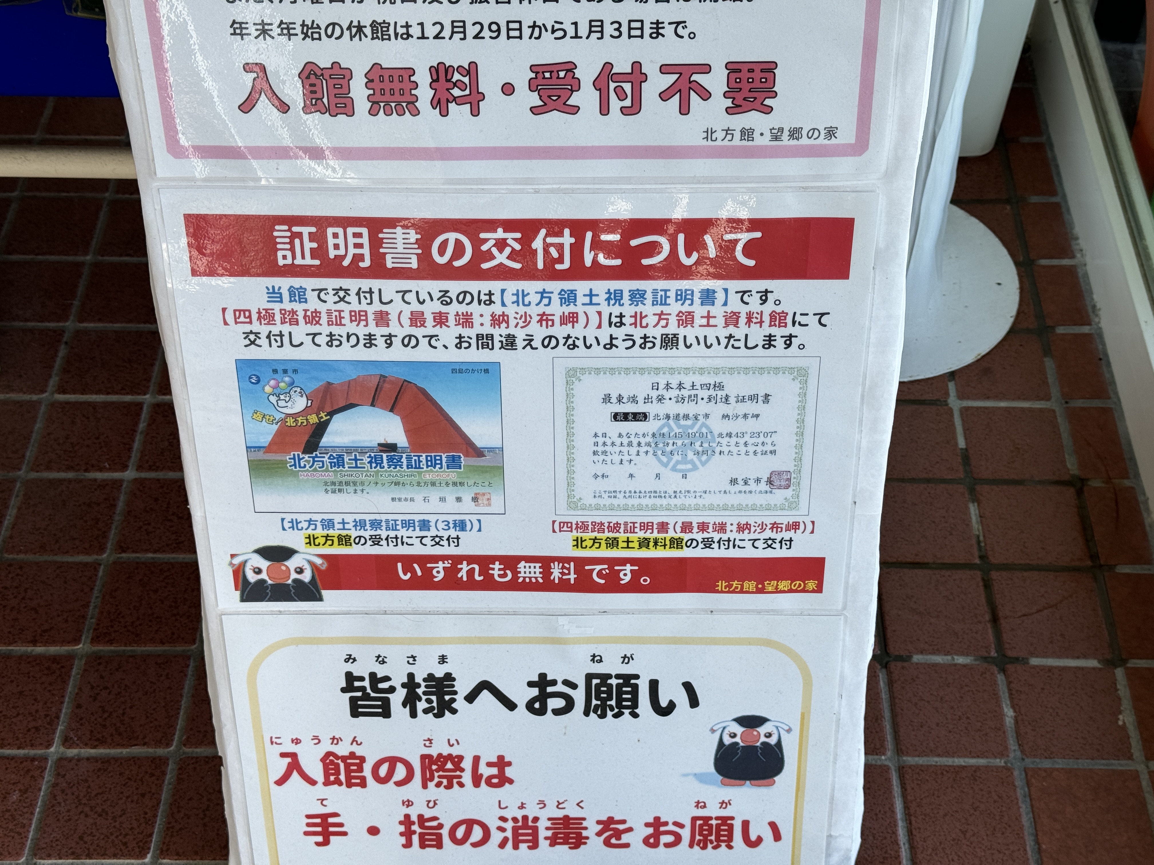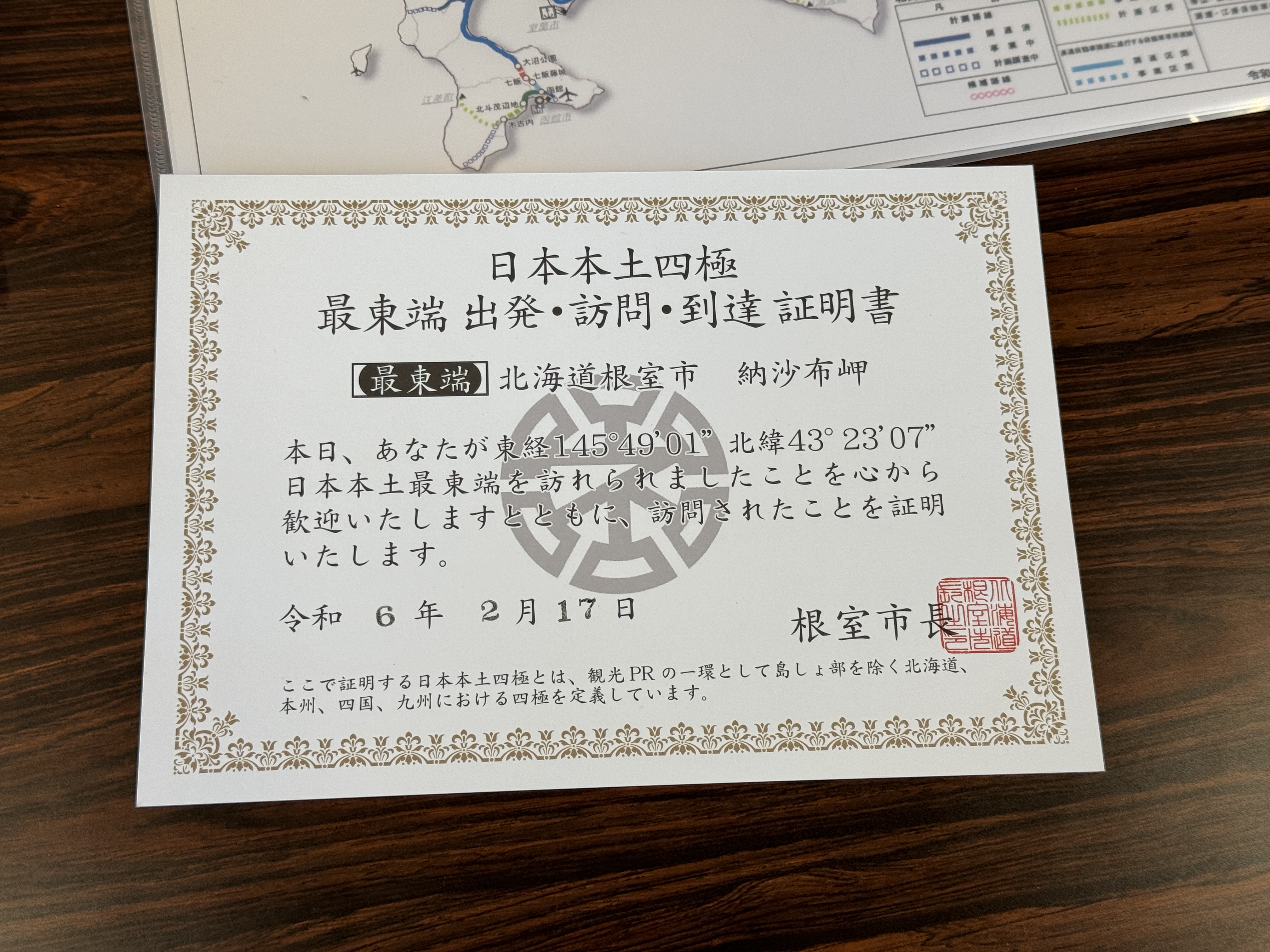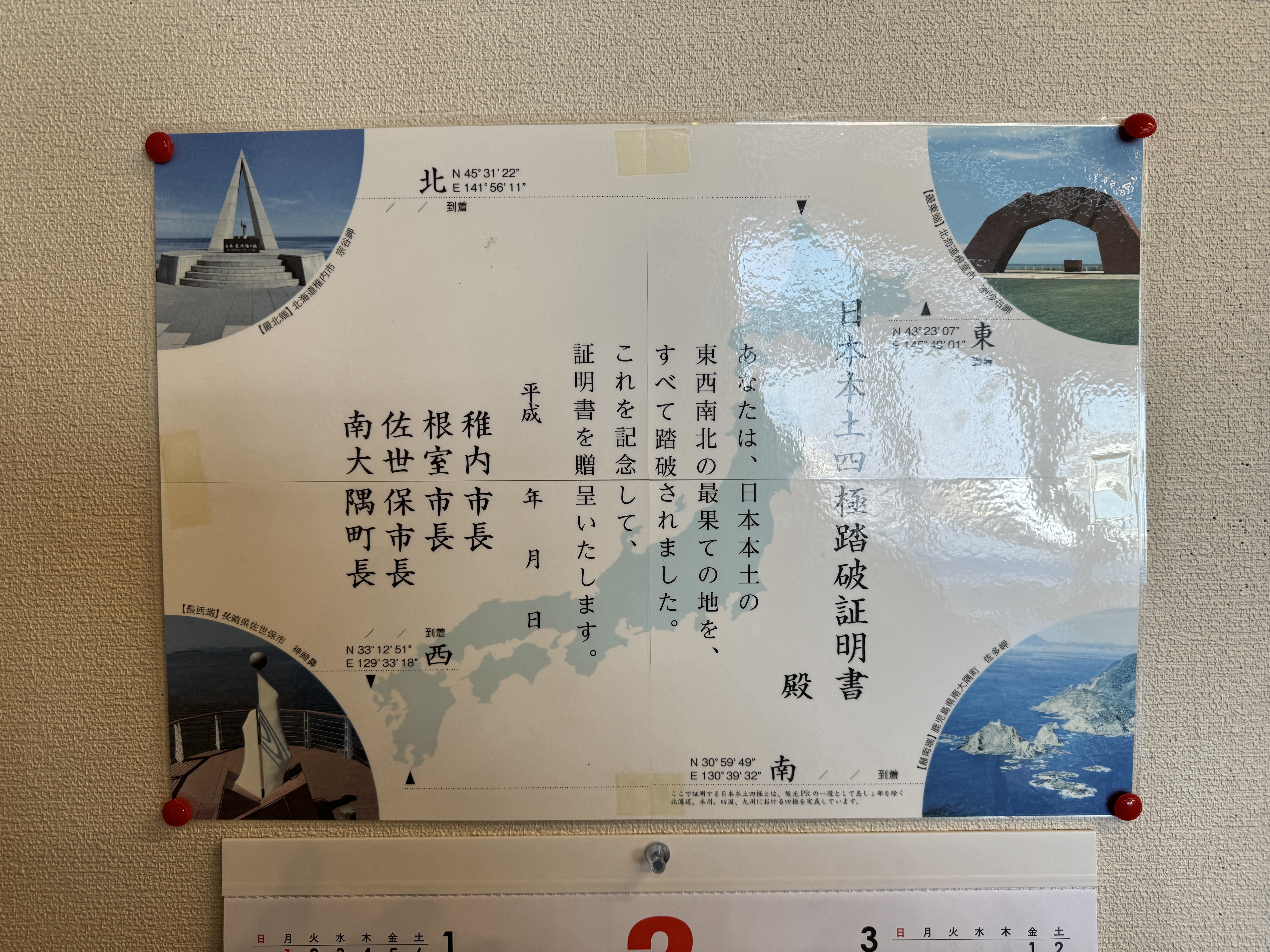 여기서 주는 증명서는 오른쪽 일본 본토 사극 최동단 출발, 방문, 도달 증명서가 아닌