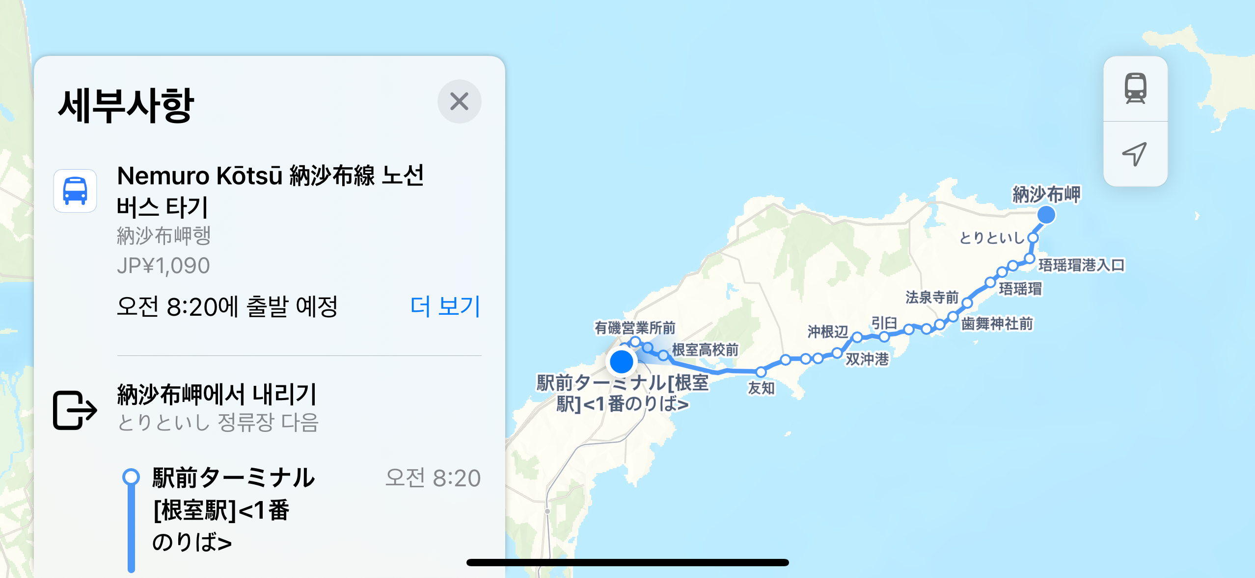 네무로 버스터미널이 나오는데